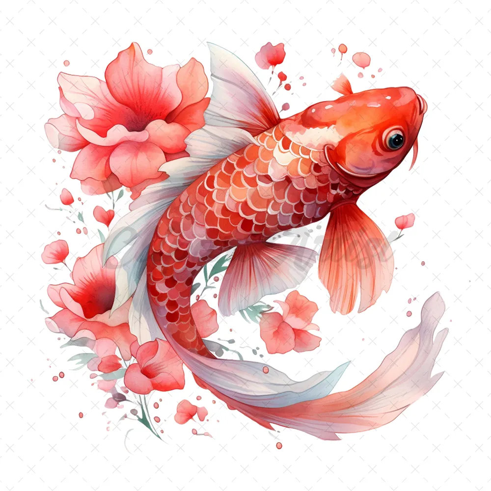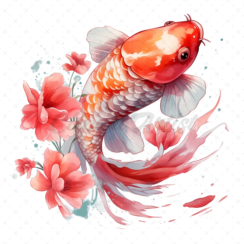 17 High-Quality Floral Koi Fish Clipart – Fish digital JPG instant download for commercial use – Digital download