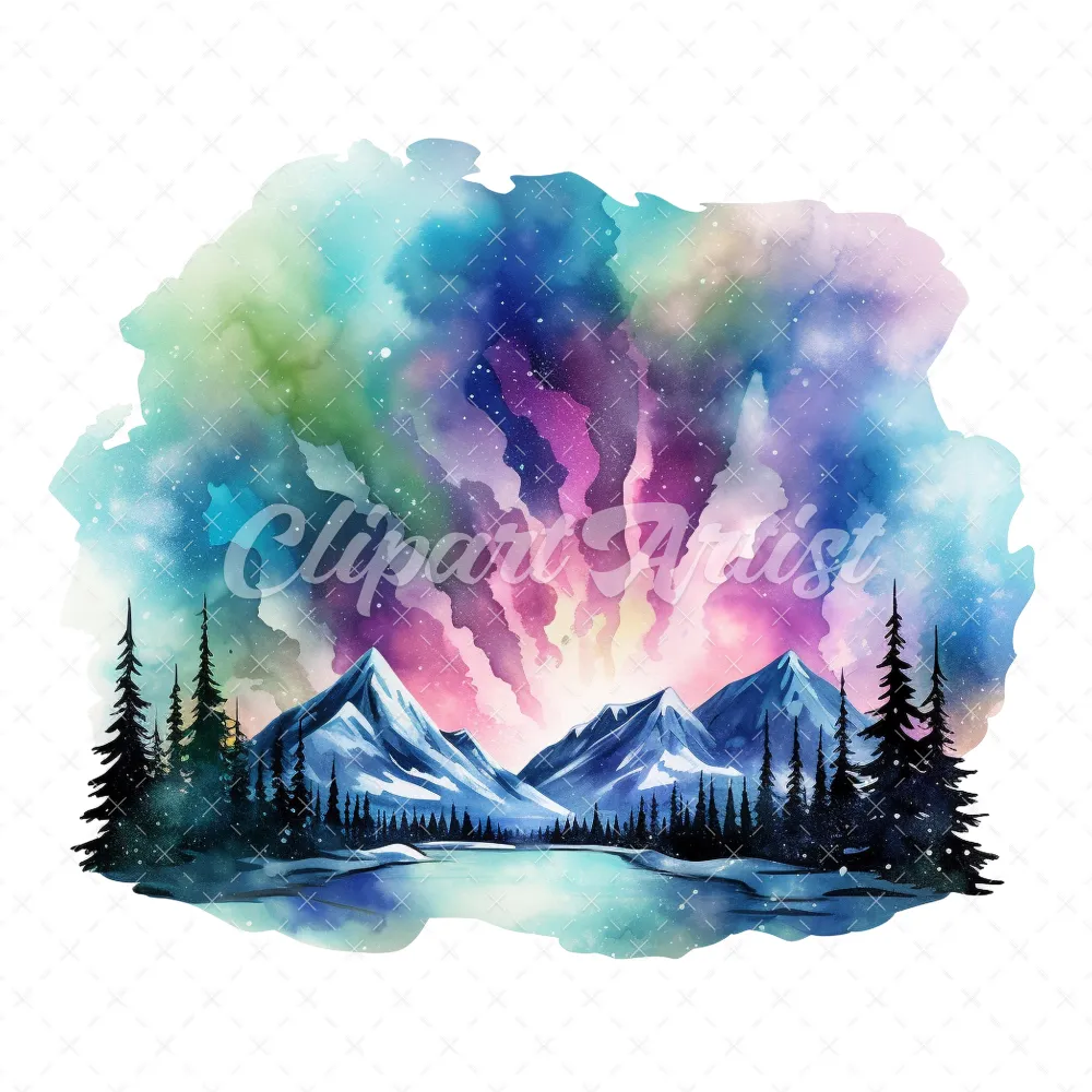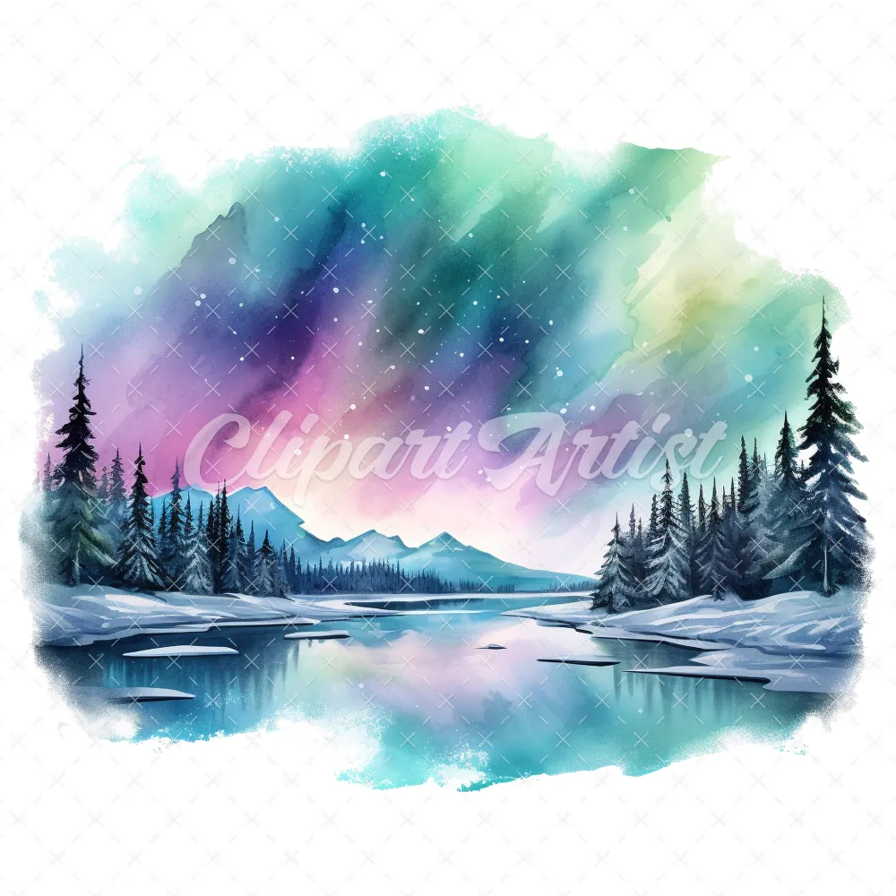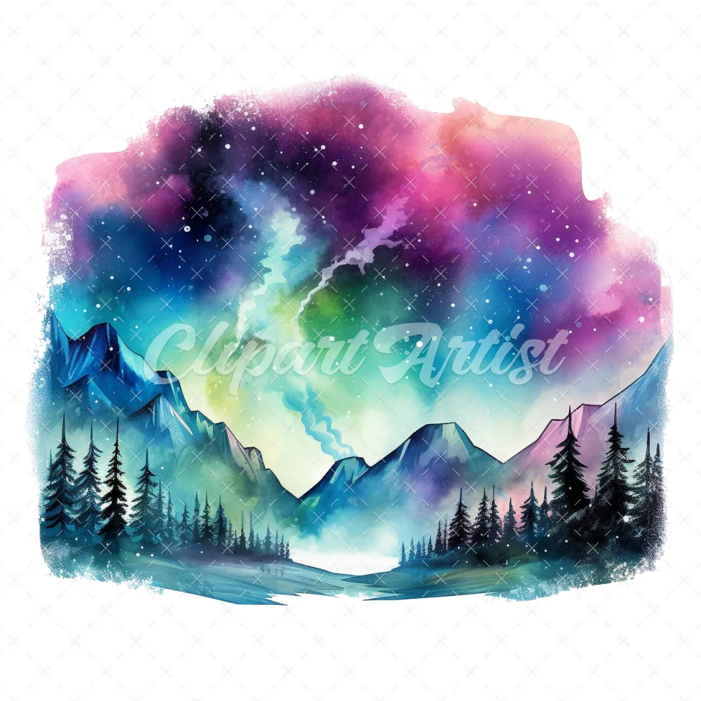 18 High-Quality Aurora Borealis Clipart – Aurora borealis digital watercolor JPG instant download for commercial use – Digital download