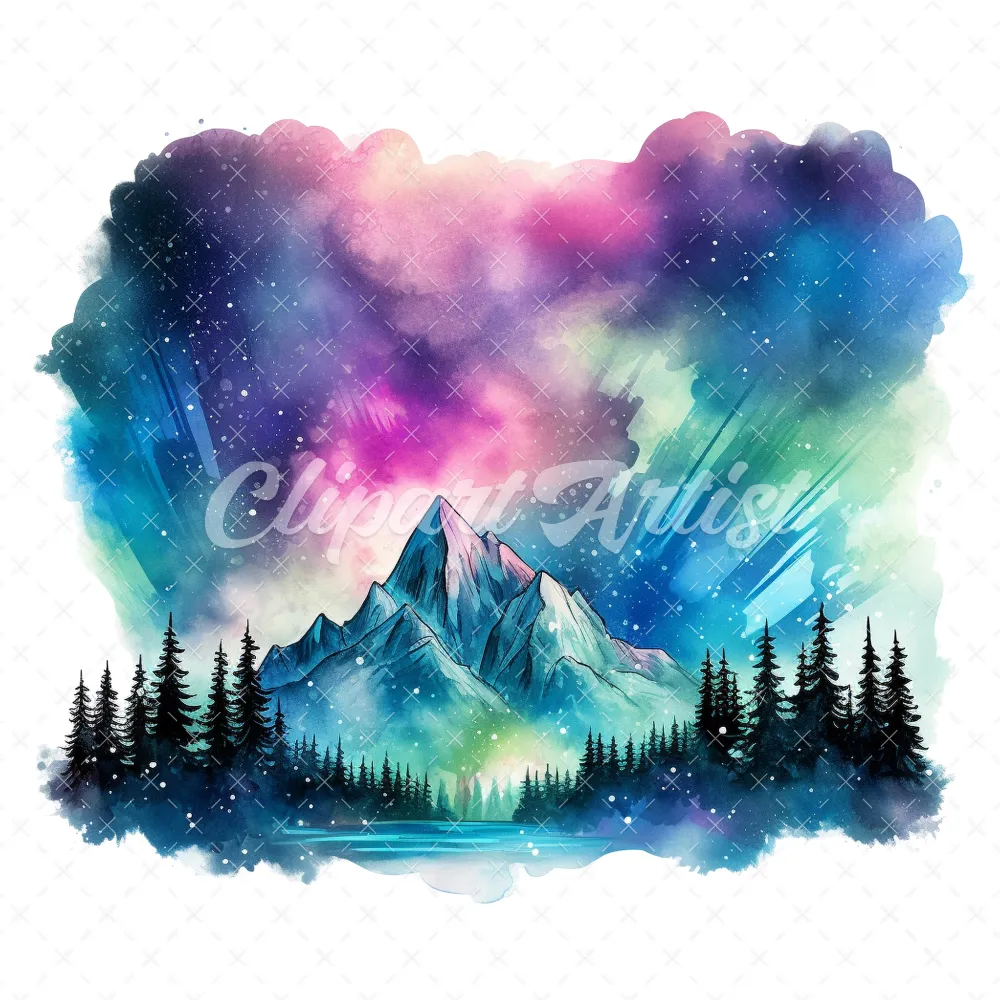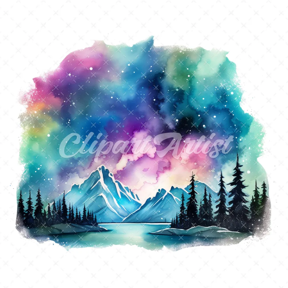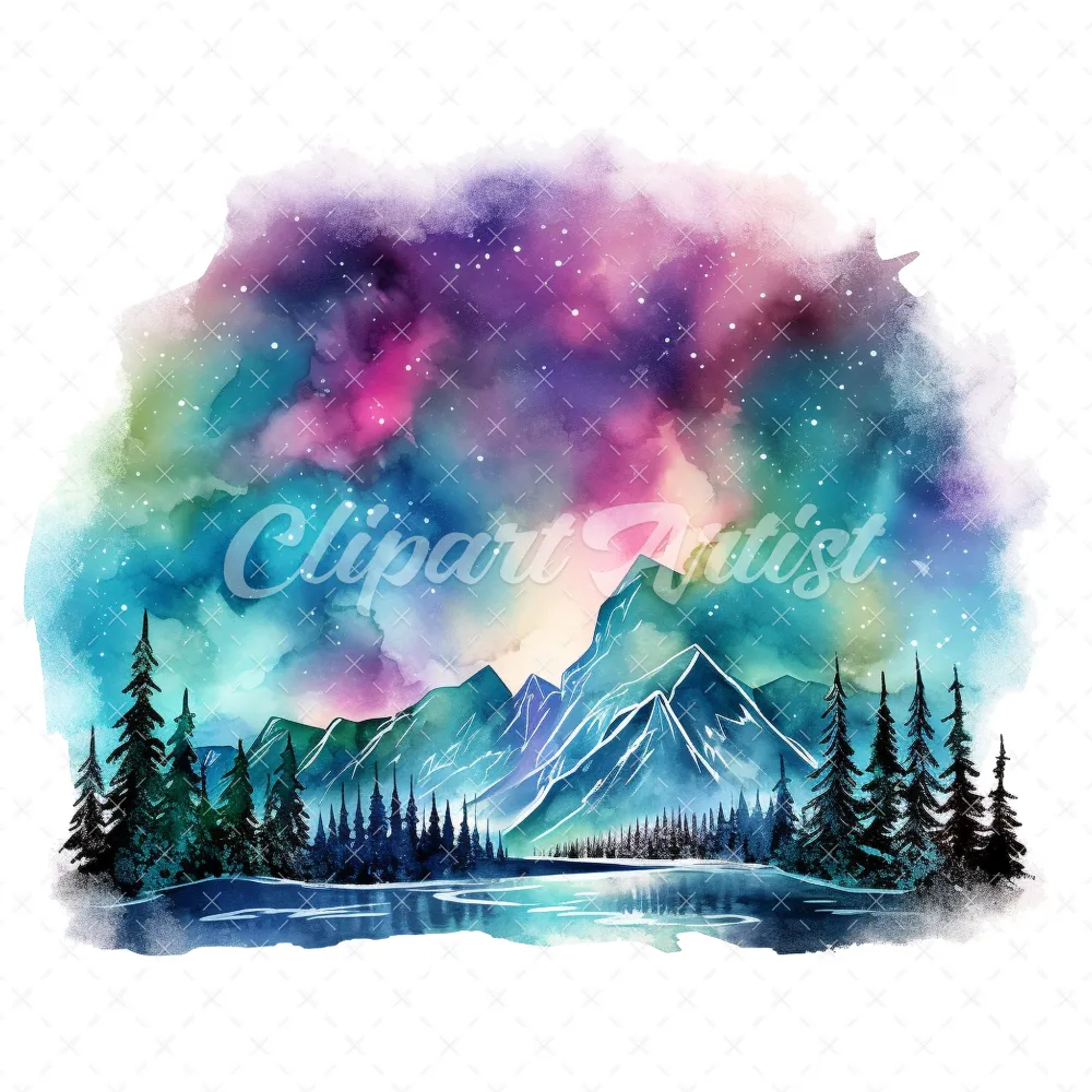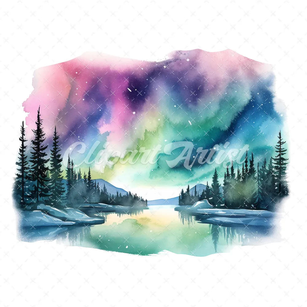 18 High-Quality Aurora Borealis Clipart – Aurora borealis digital watercolor JPG instant download for commercial use – Digital download