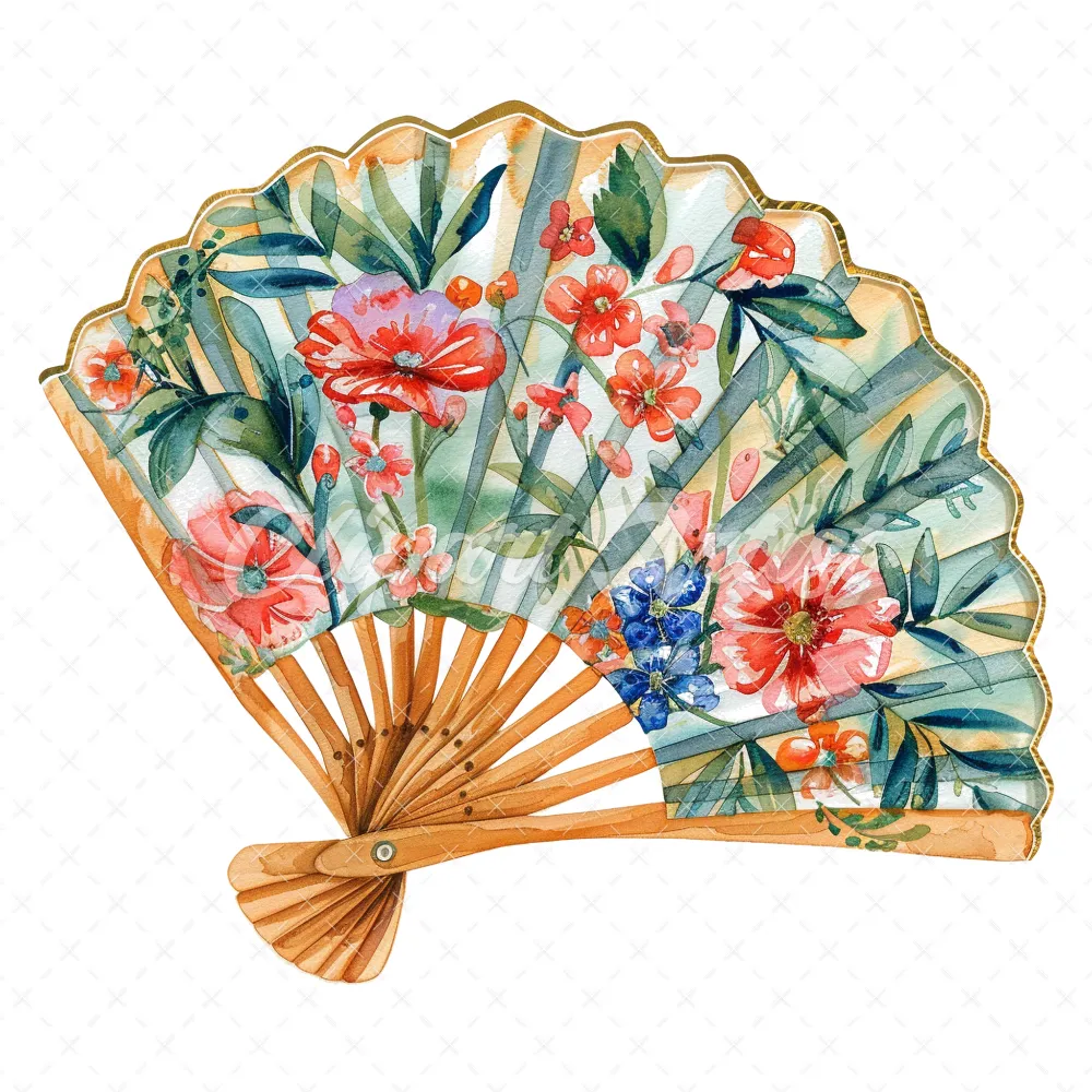 18 High-Quality Floral Hand Fan Clipart – Floral hand fan digital watercolor JPG instant download for commercial use – Digital download