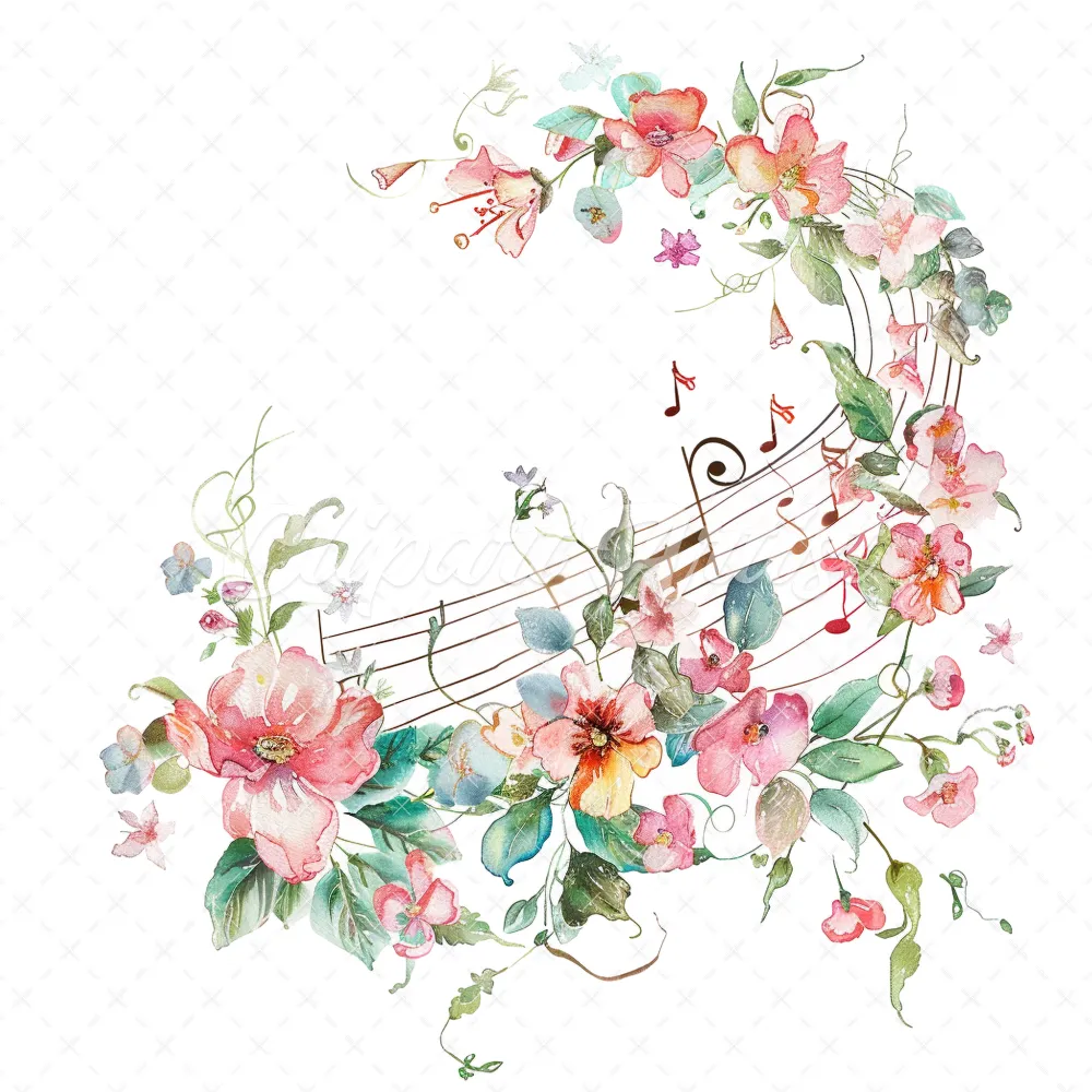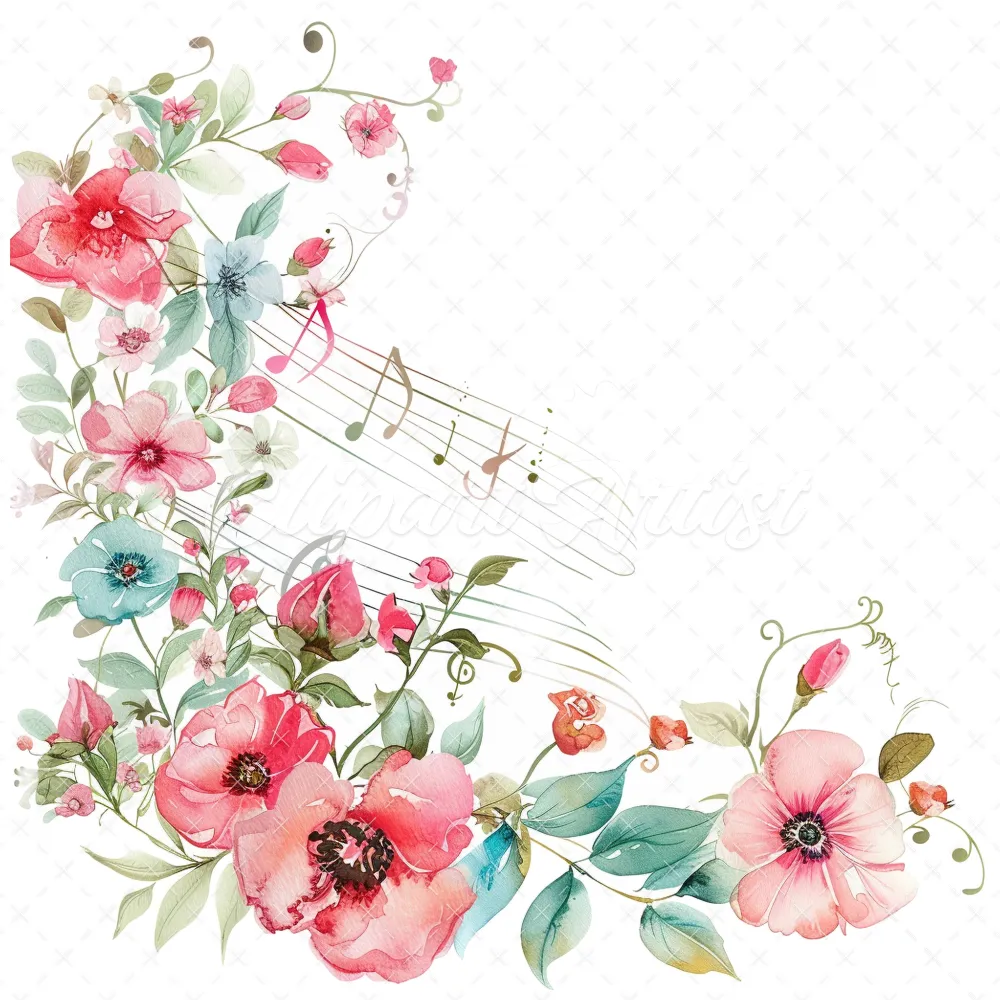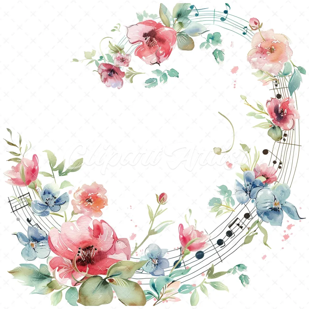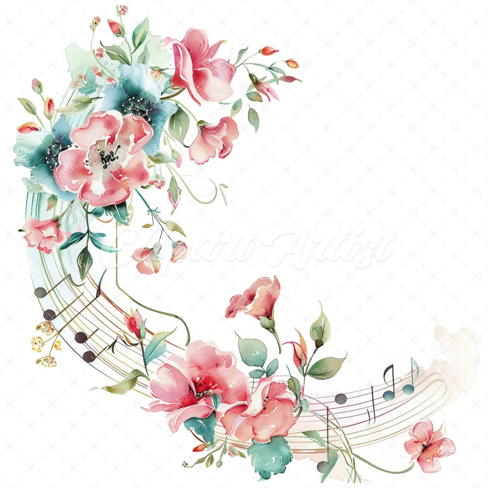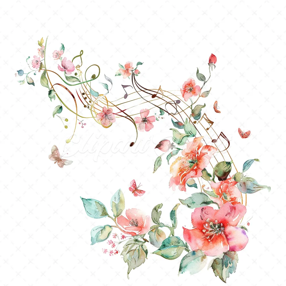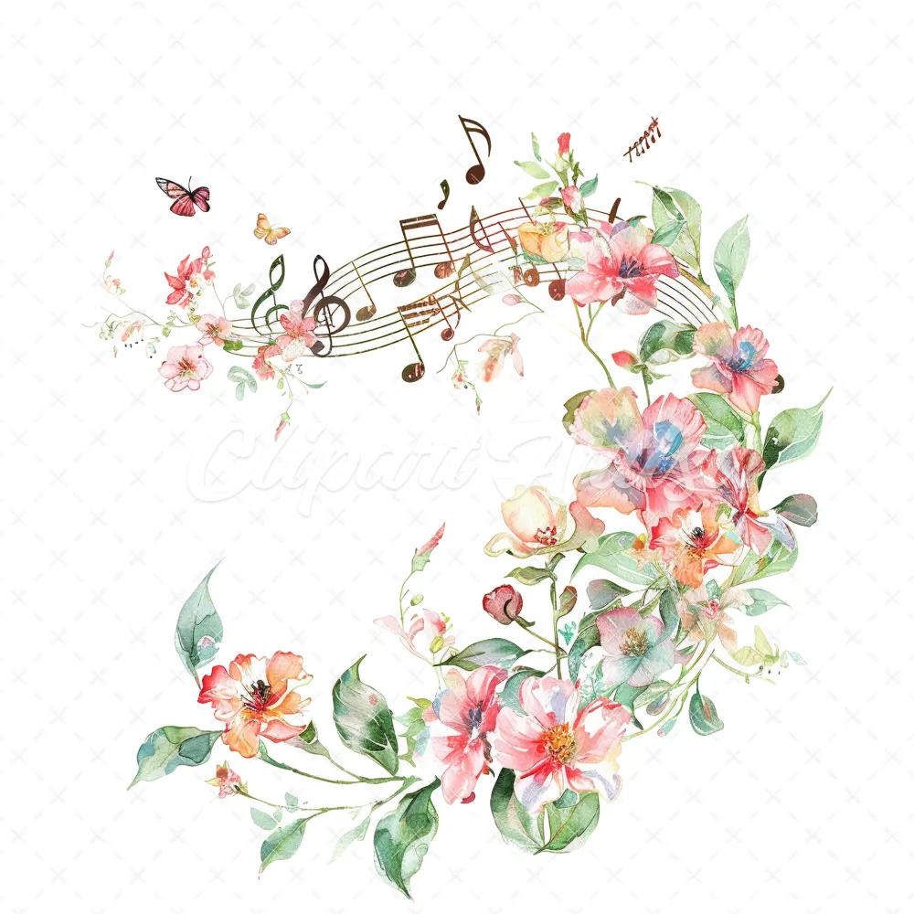 18 High-Quality Floral Music Notes Clipart – Music notes digital watercolor JPG instant download for commercial use – Digital download