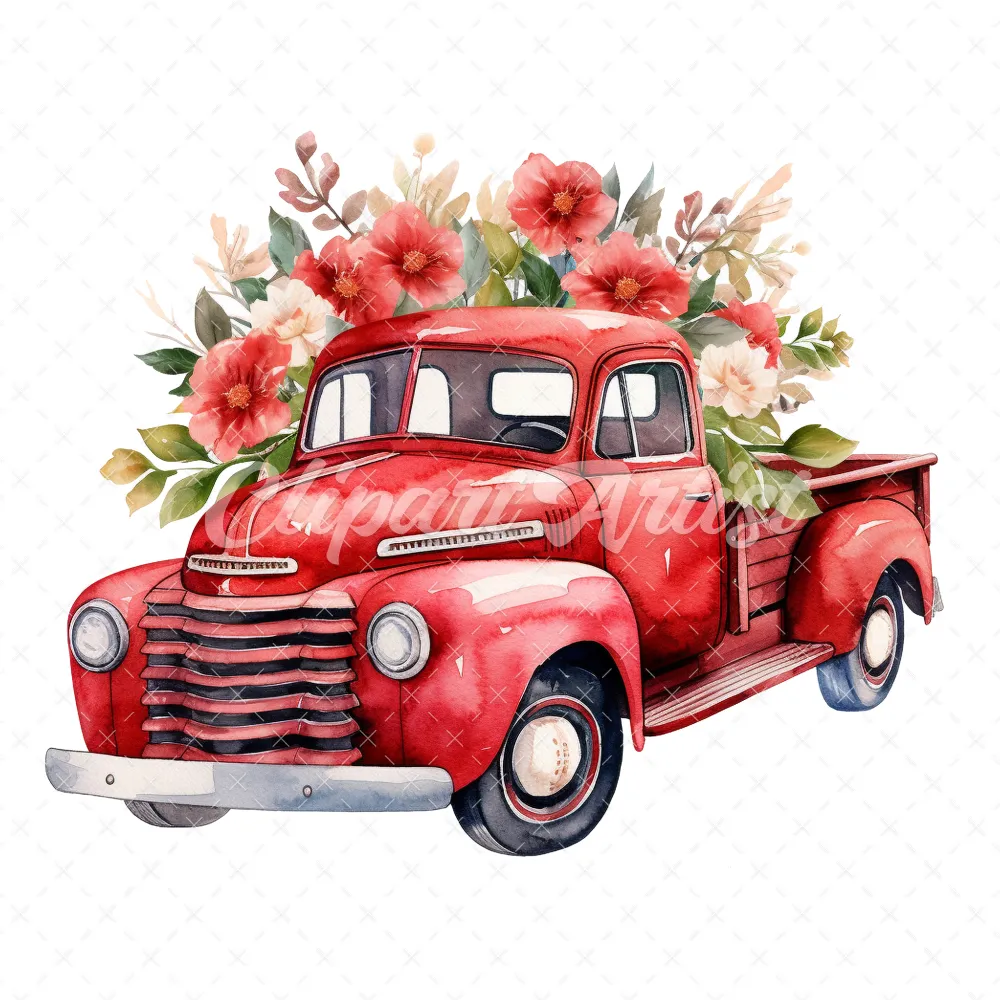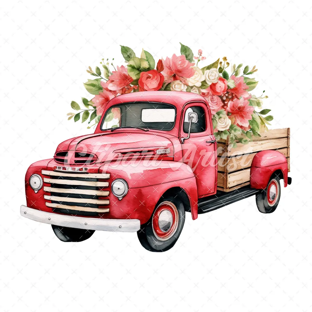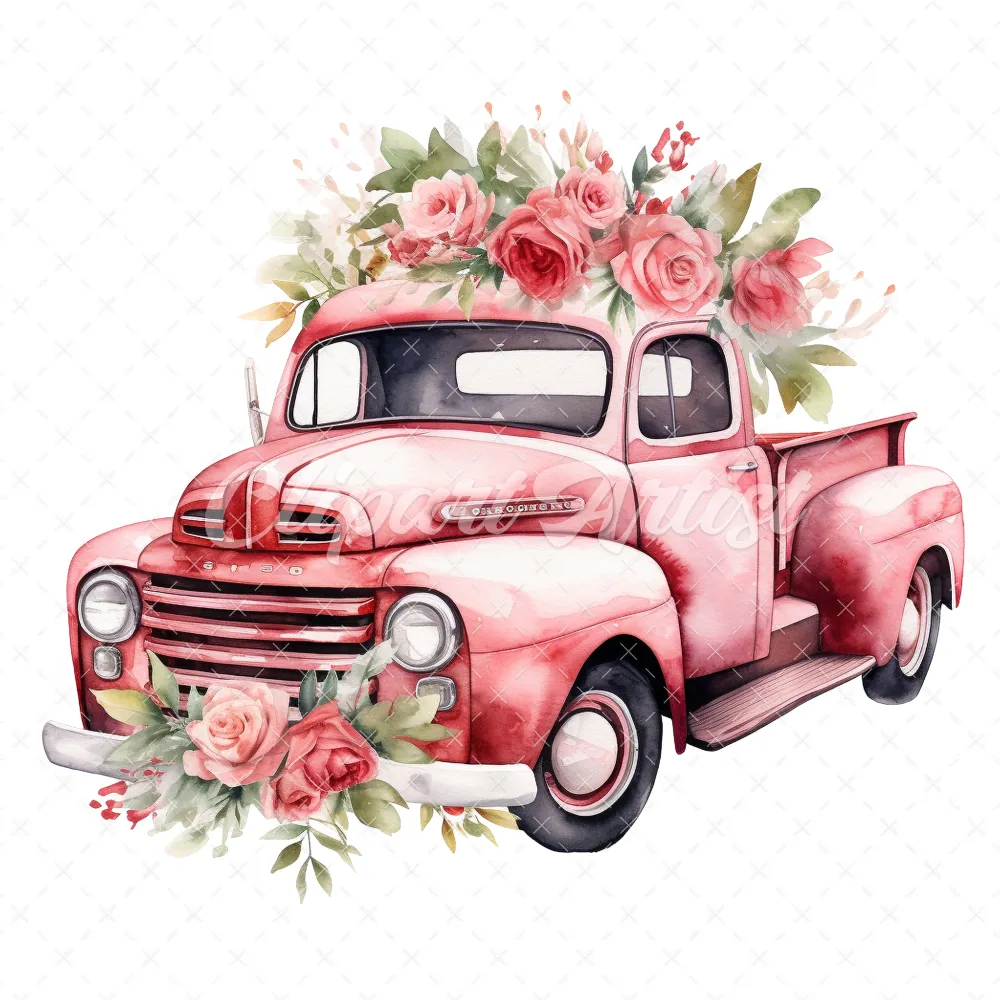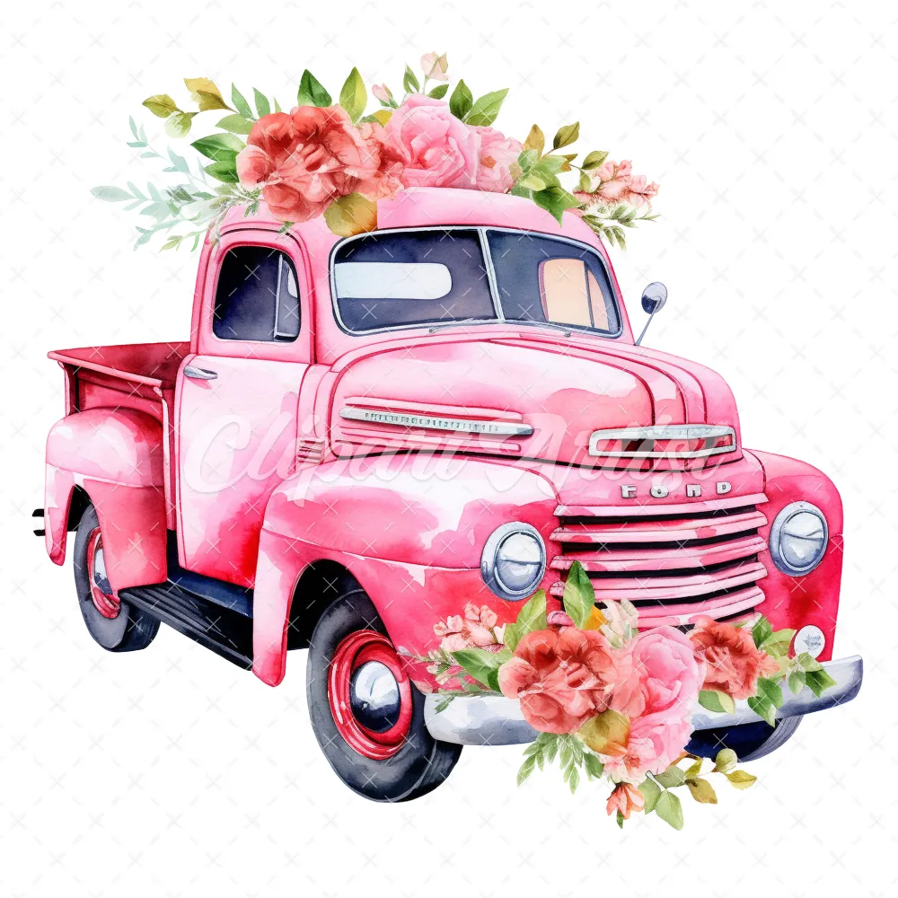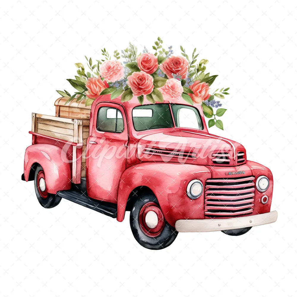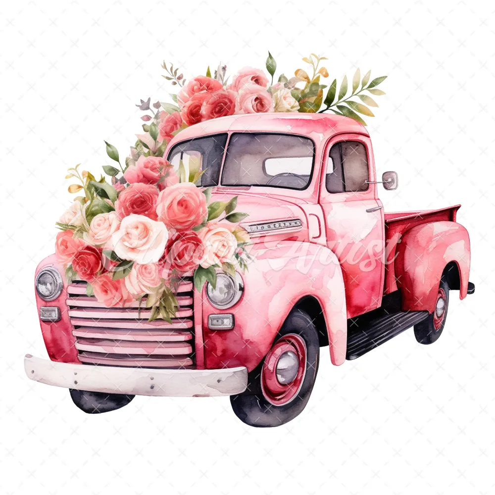 18 High-Quality Roses Pickup Trucks Clipart – Roses trucks digital watercolor JPG instant download for commercial use – Digital download