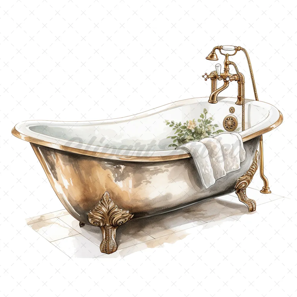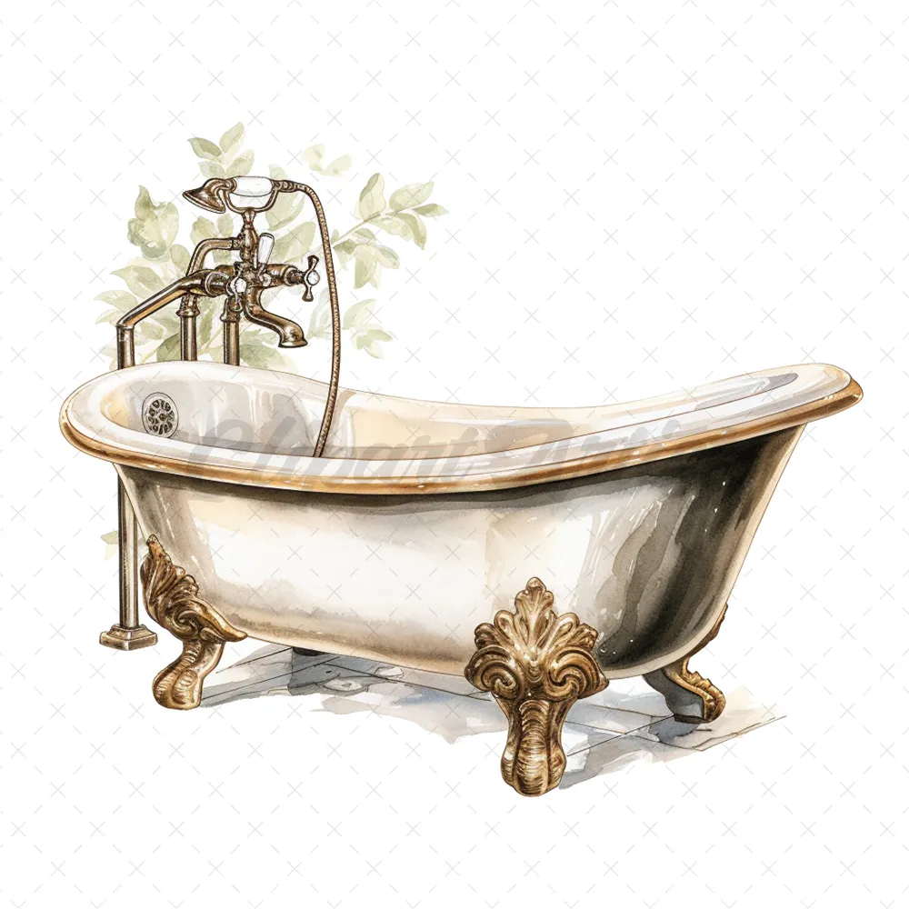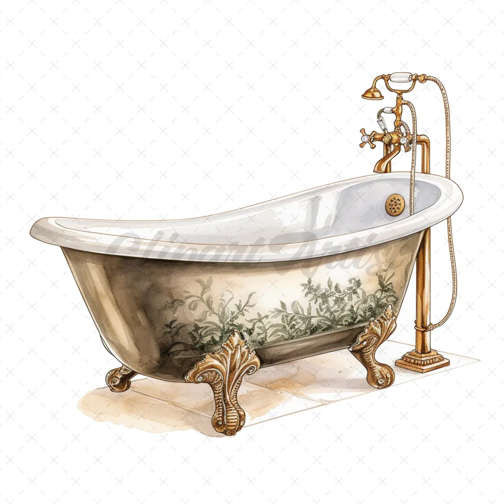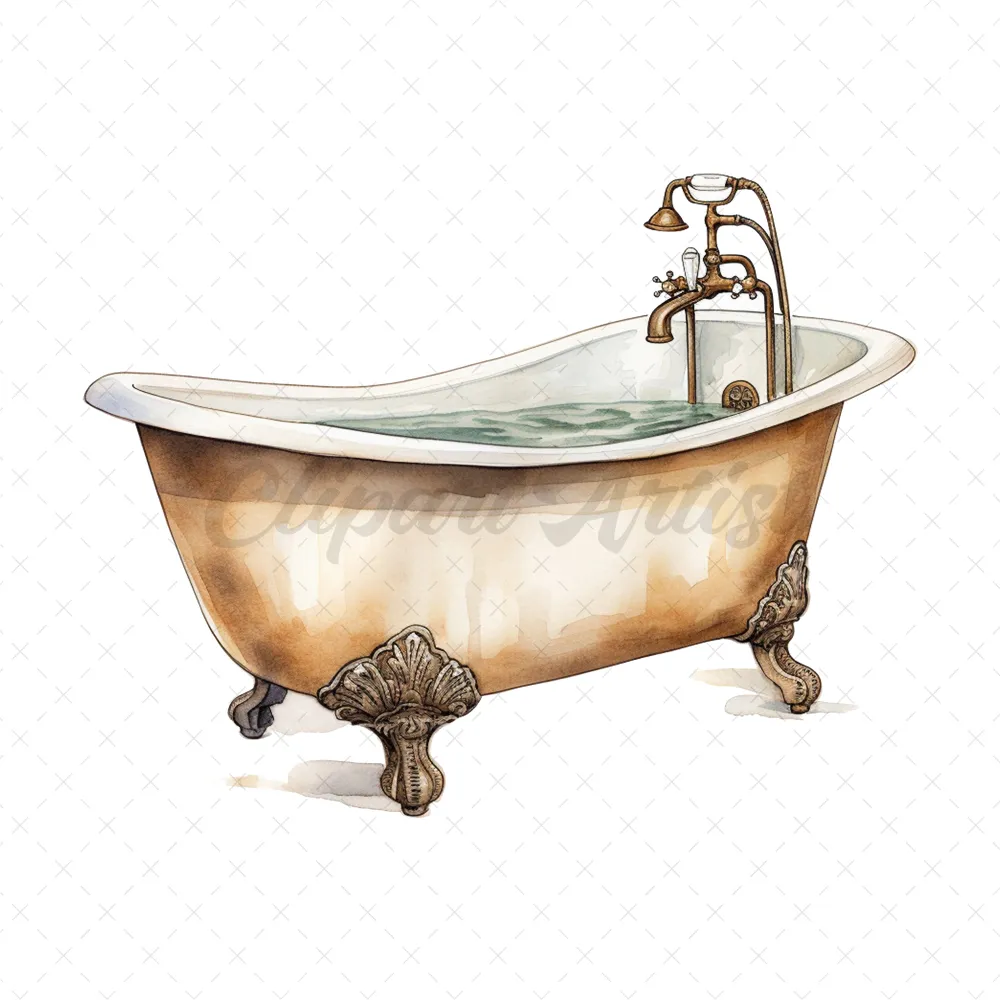 19 High-Quality Antique Bath Tub Clipart – Bath tub digital watercolor JPG instant download for commercial use – Digital download