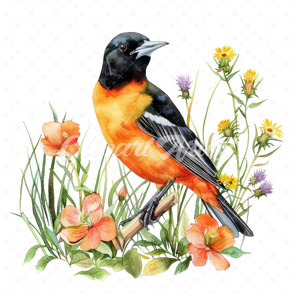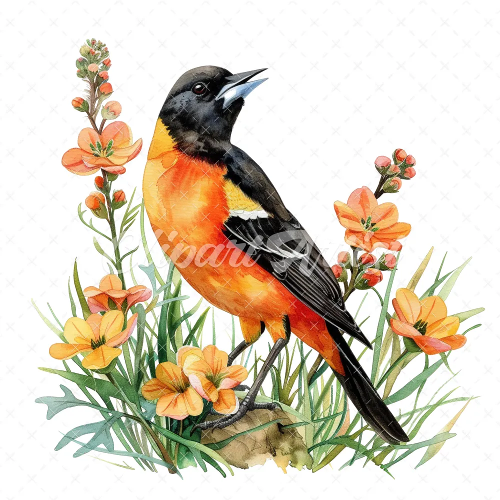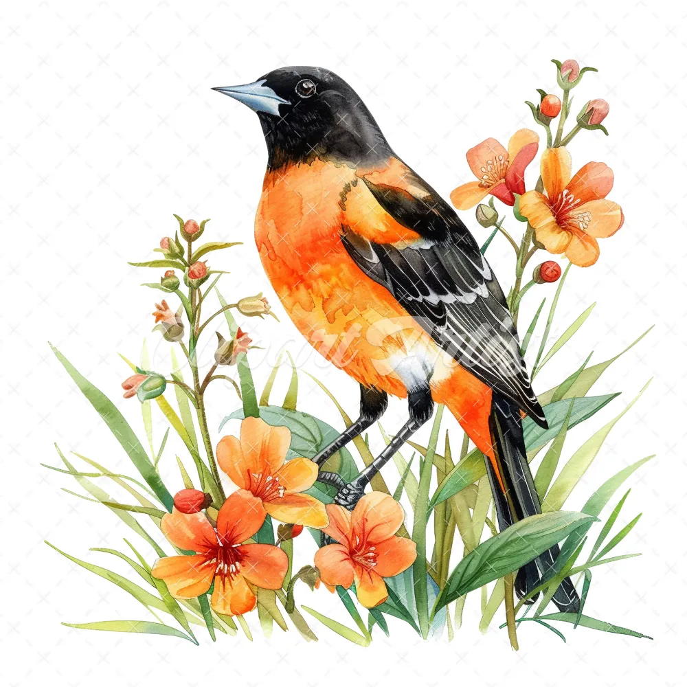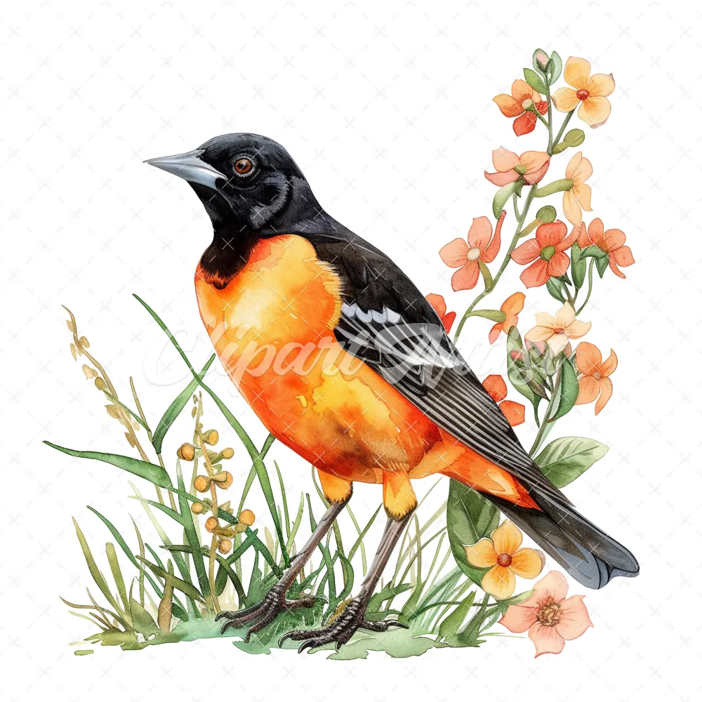 19 High-Quality Baltimore Oriole Clipart – Baltimore oriole digital watercolor JPG instant download for commercial use – Digital download