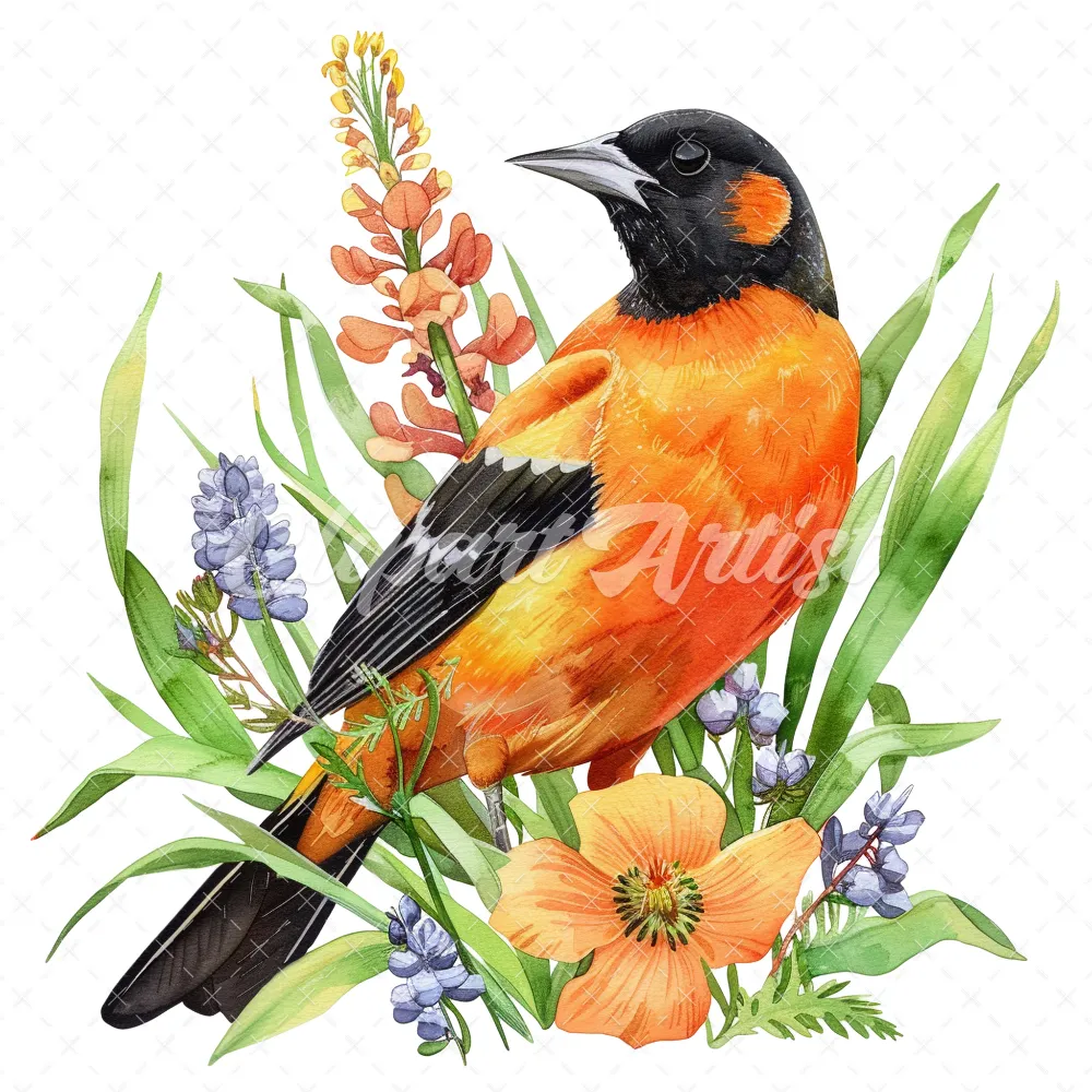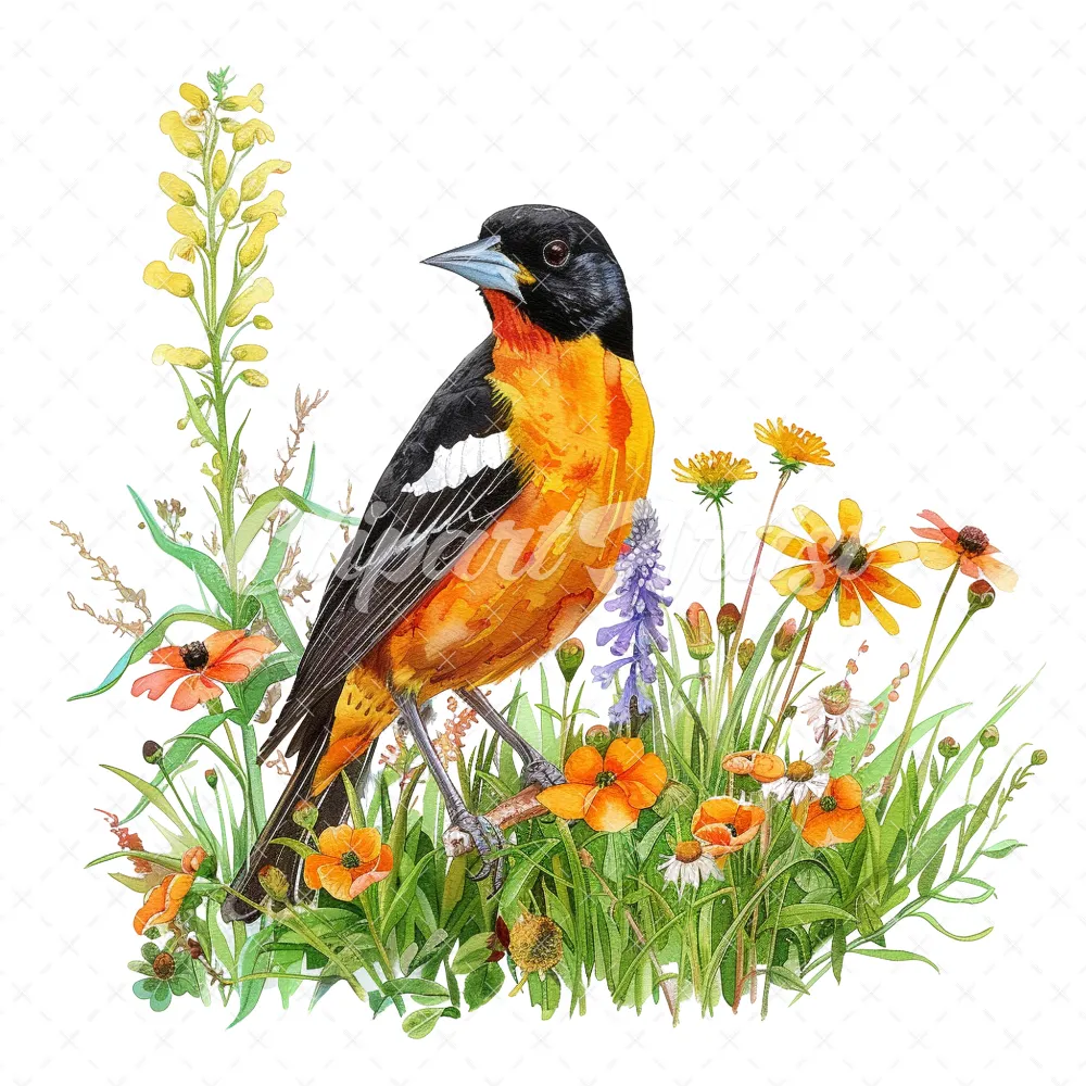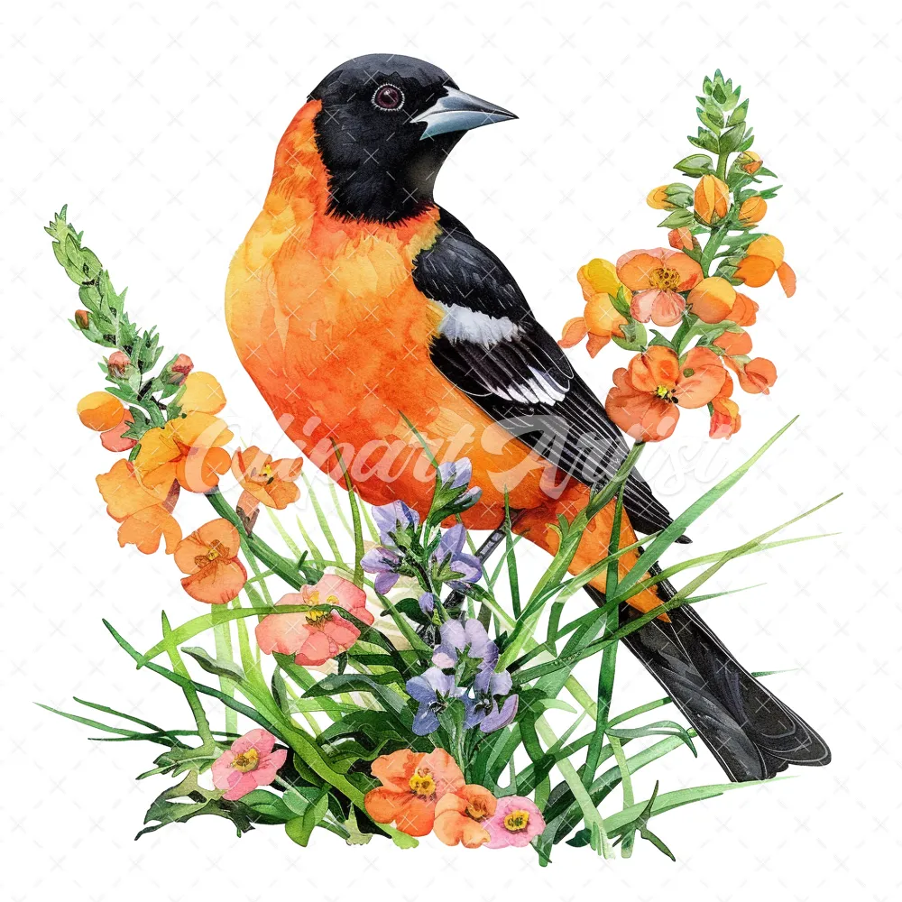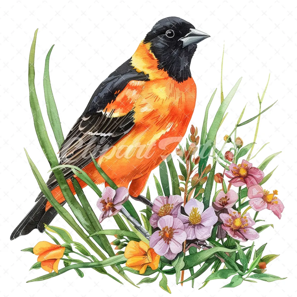 19 High-Quality Baltimore Oriole Clipart – Baltimore oriole digital watercolor JPG instant download for commercial use – Digital download