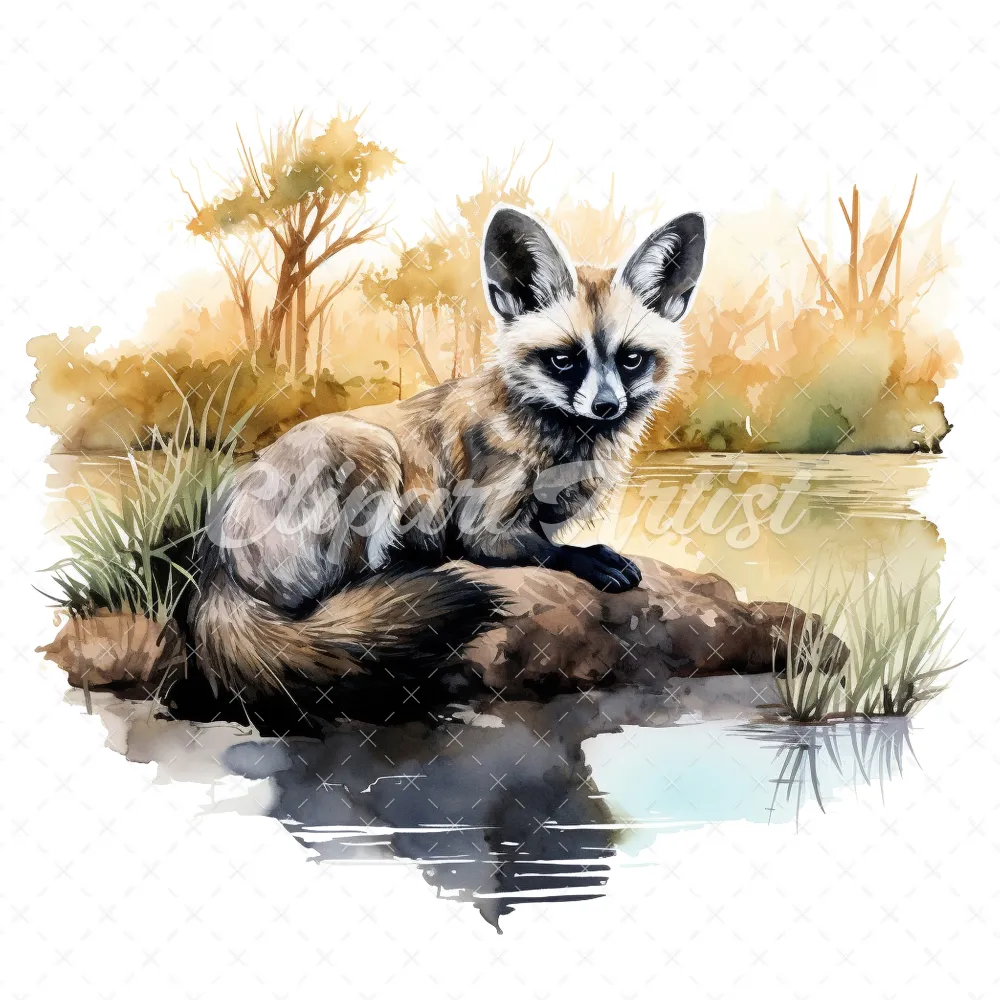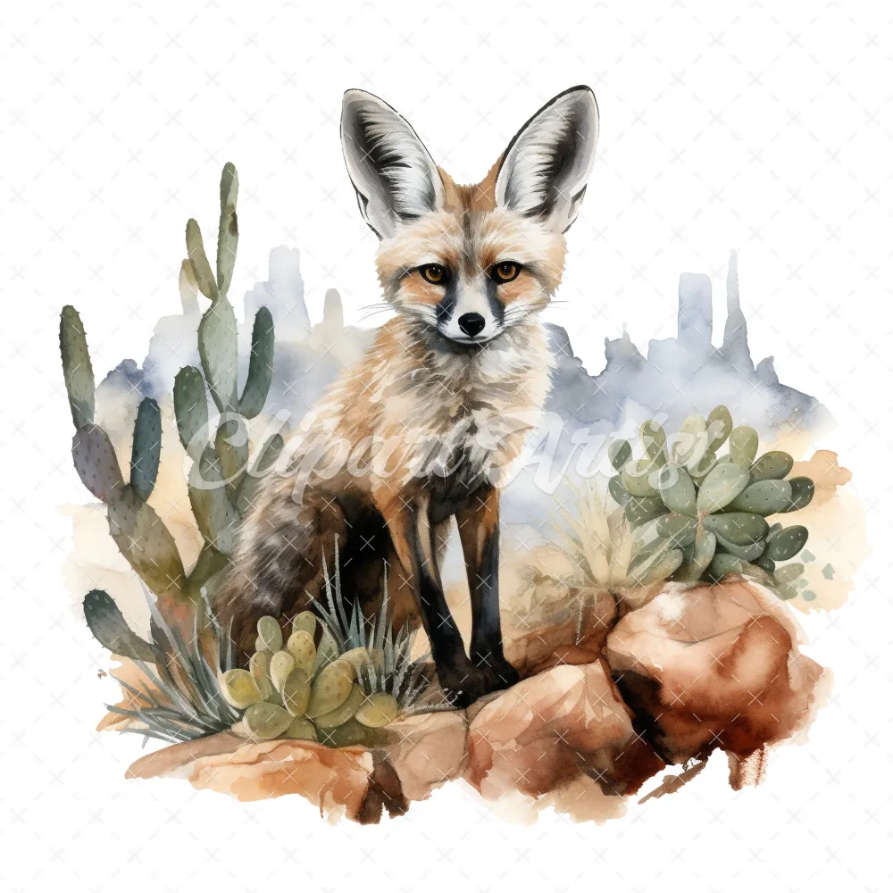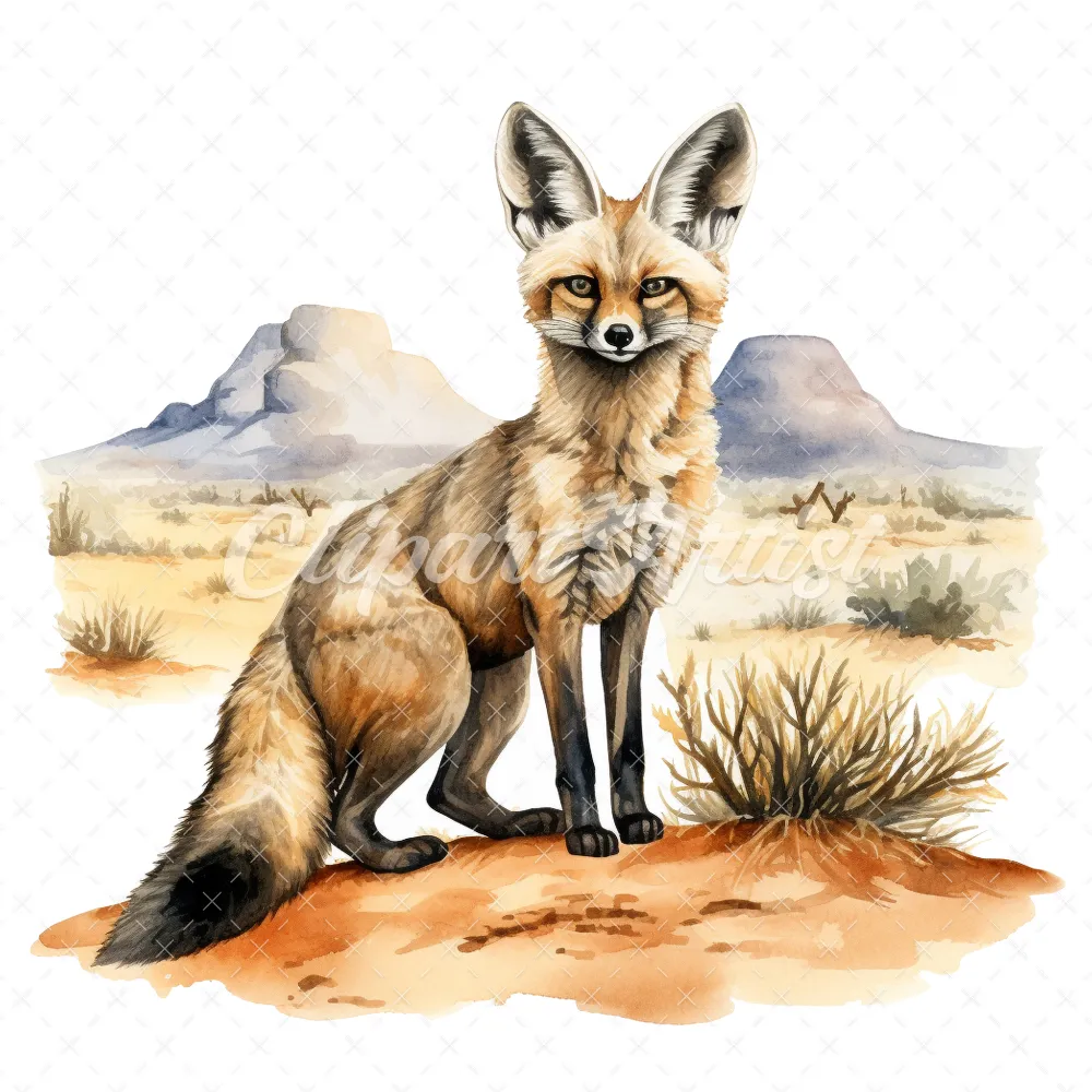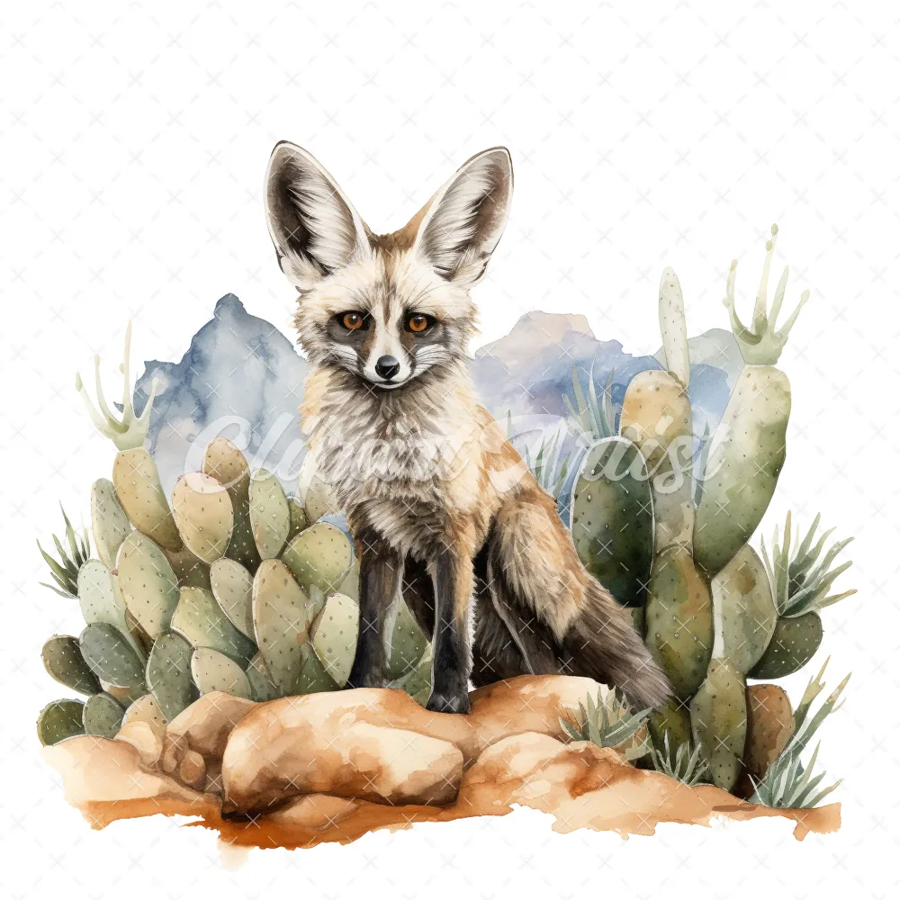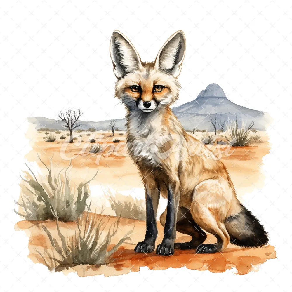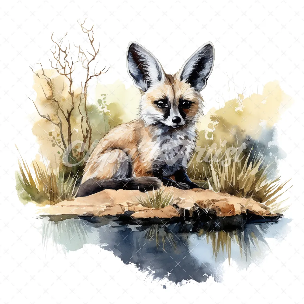 19 High-Quality Bat Eared Fox Clipart – Bat eared fox digital watercolor JPG instant download for commercial use – Digital download