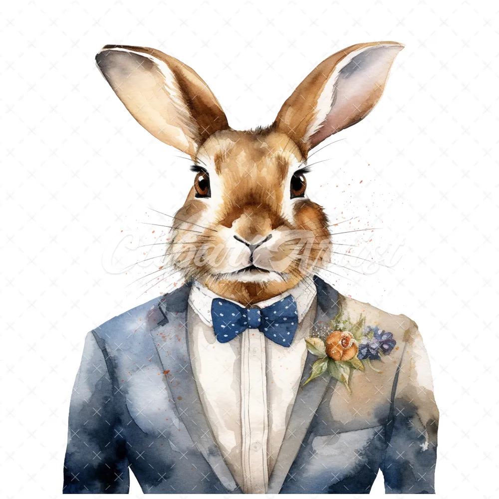 19 High-Quality Bunny in Suit Clipart – Bunny in suit digital watercolor JPG instant download for commercial use – Digital download