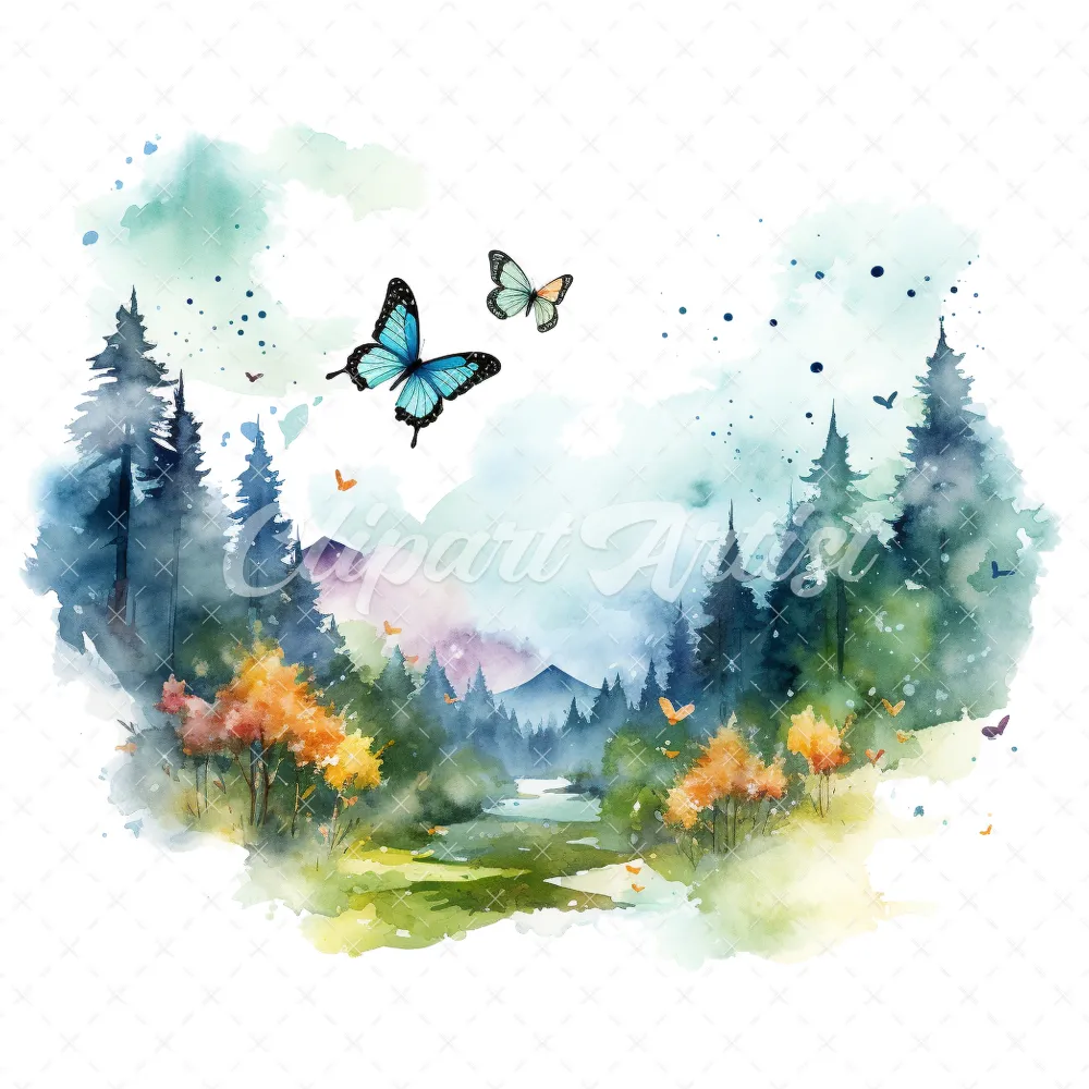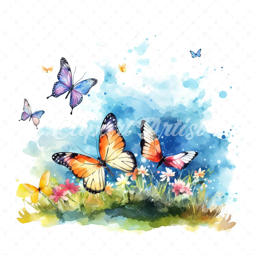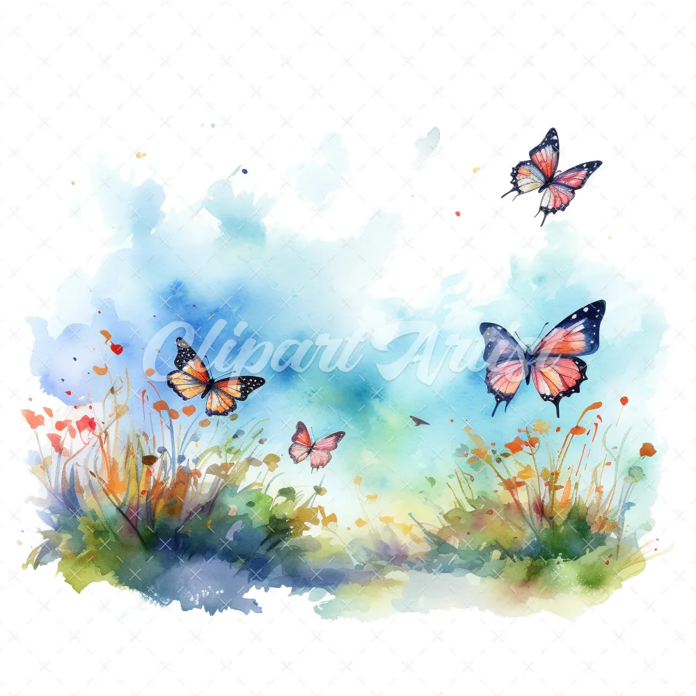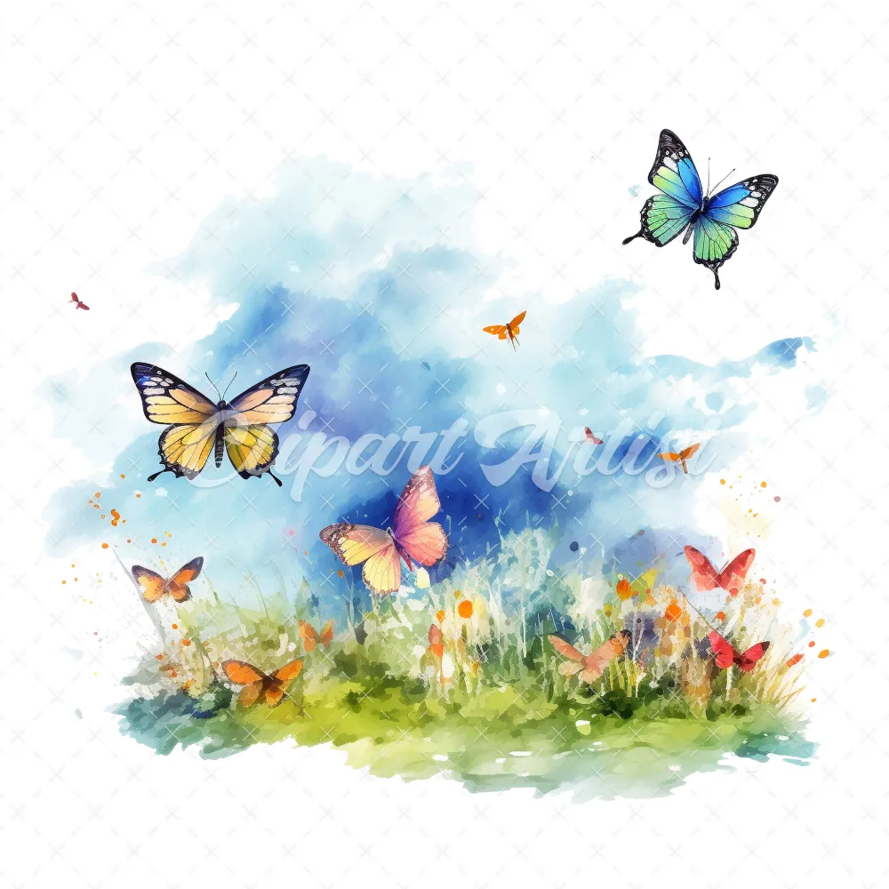 19 High-Quality Butterflies in Sky Clipart – Butterflies sky digital watercolor JPG instant download for commercial use – Digital download