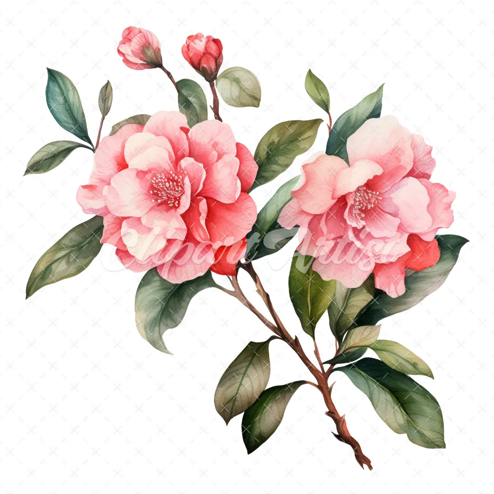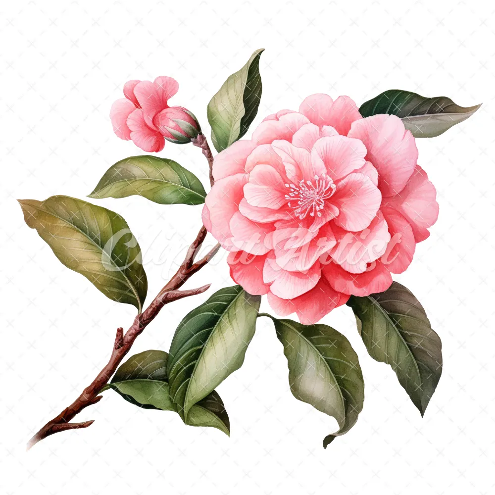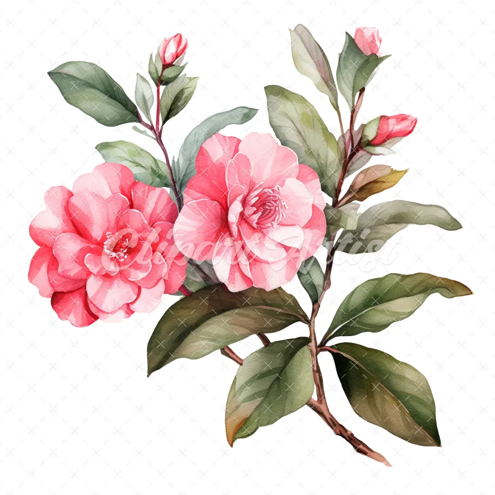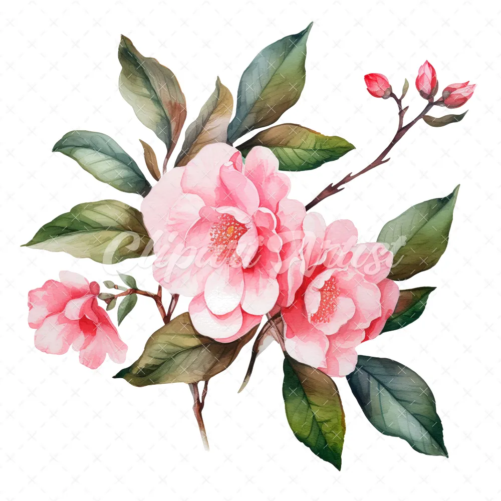 19 High-Quality Camellia Clipart – Camellia flower digital watercolor JPG instant download for commercial use – Digital download