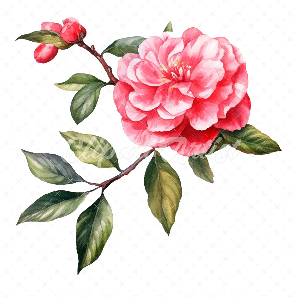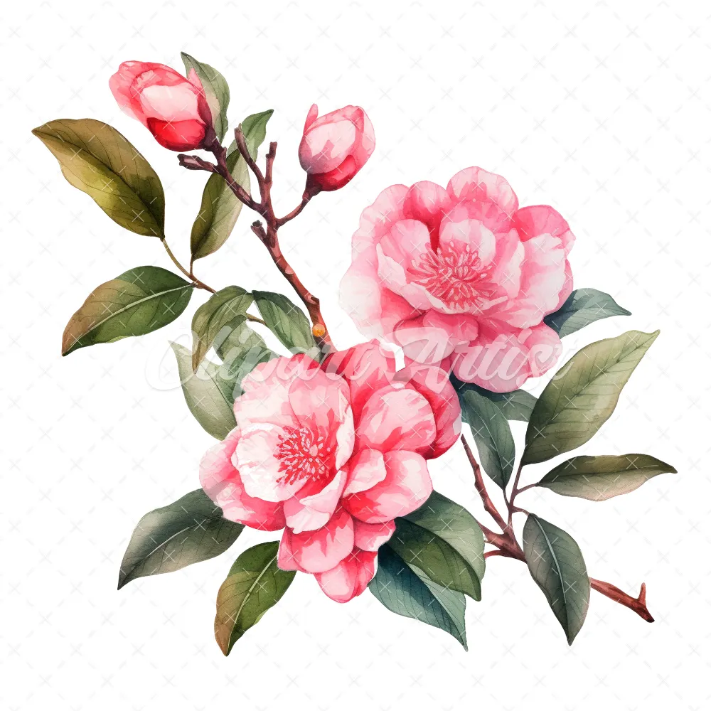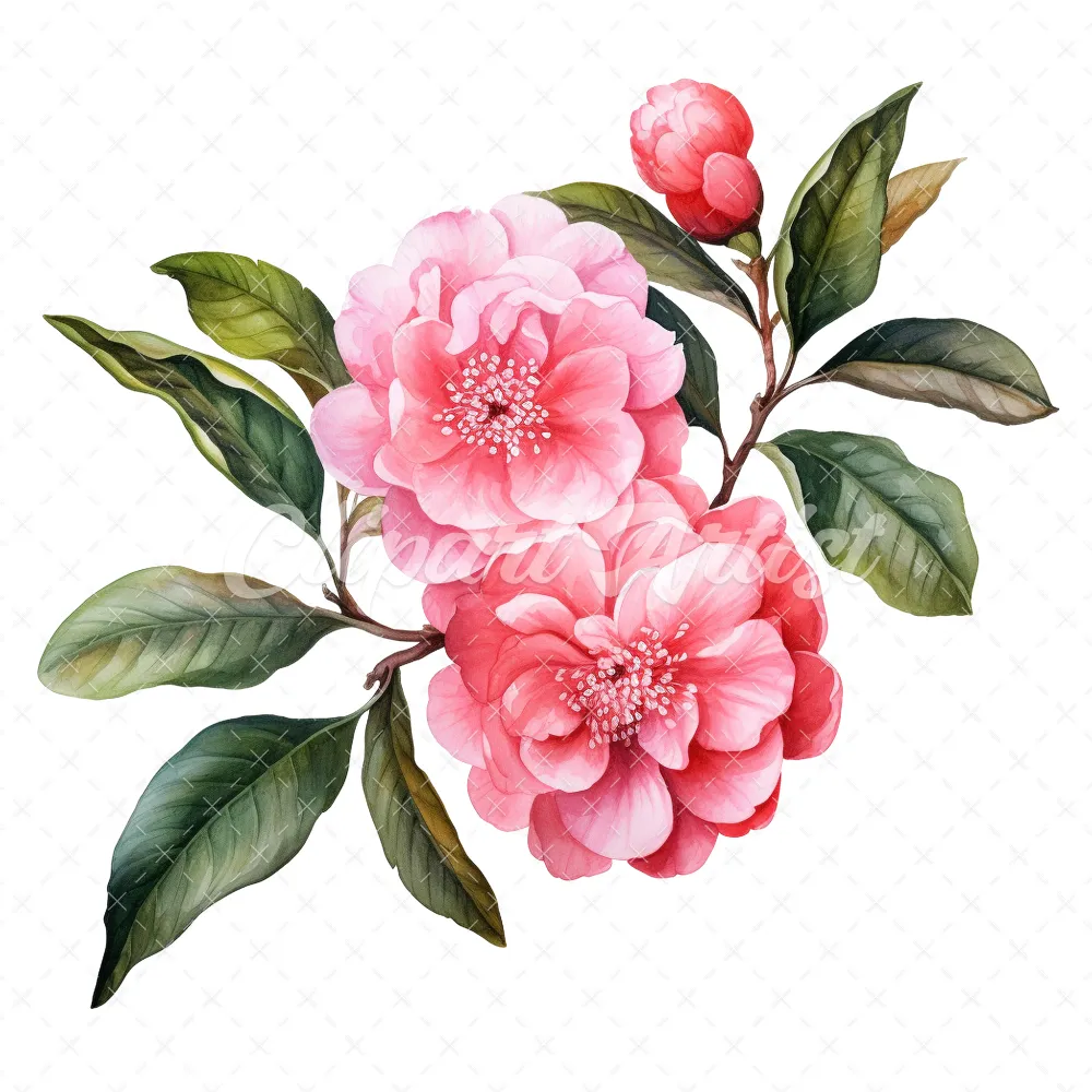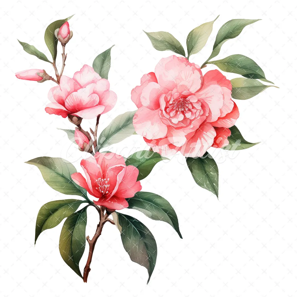 19 High-Quality Camellia Clipart – Camellia flower digital watercolor JPG instant download for commercial use – Digital download