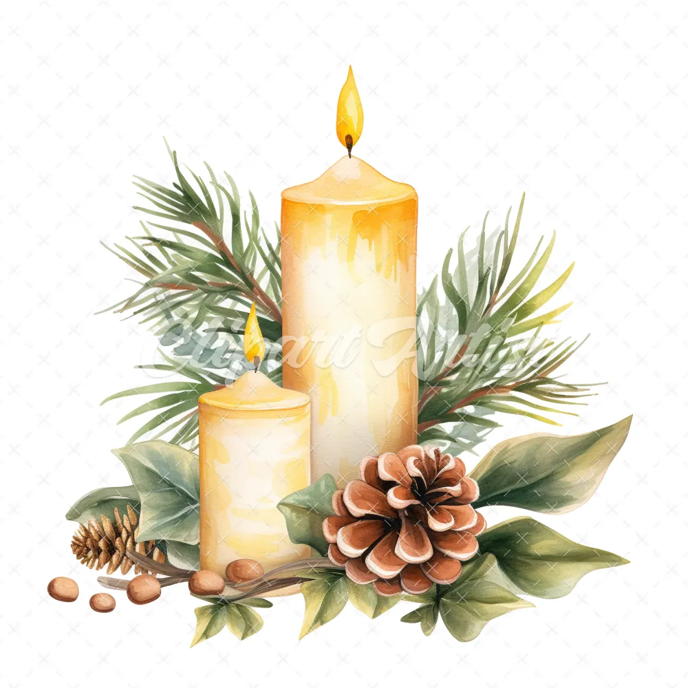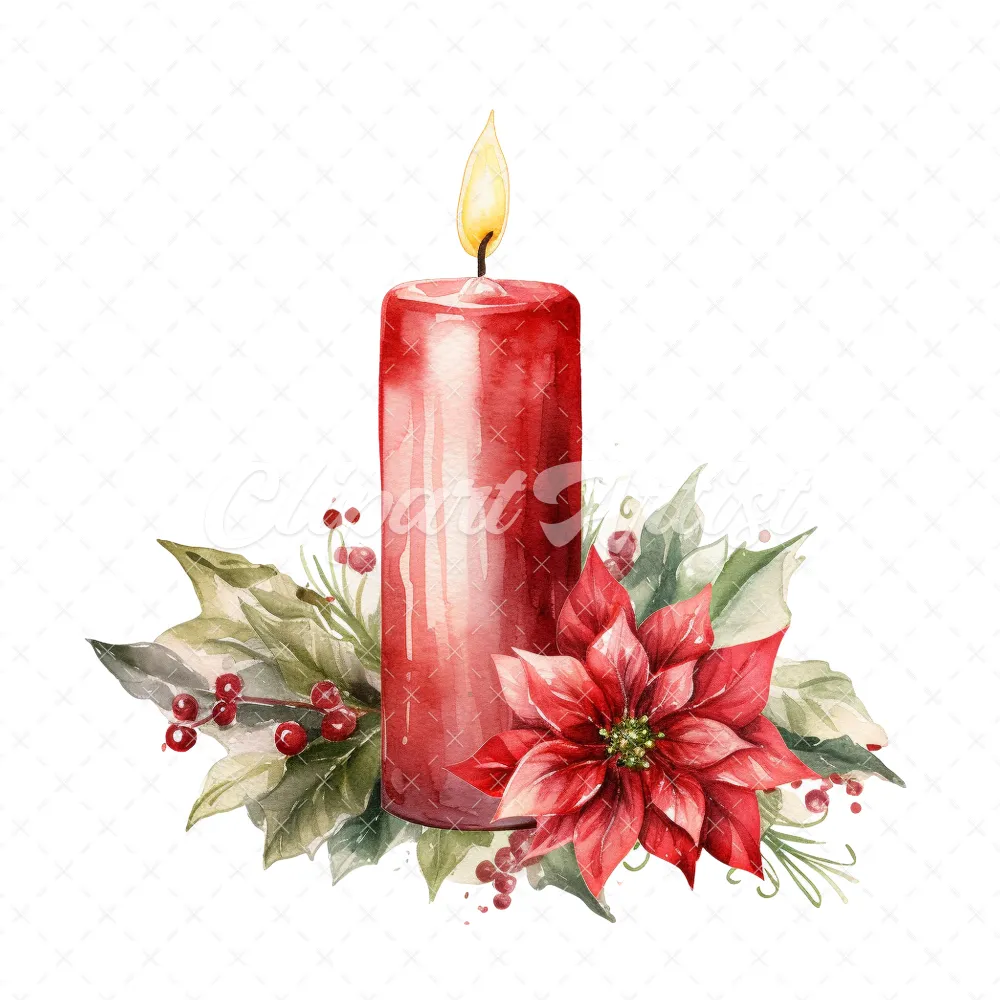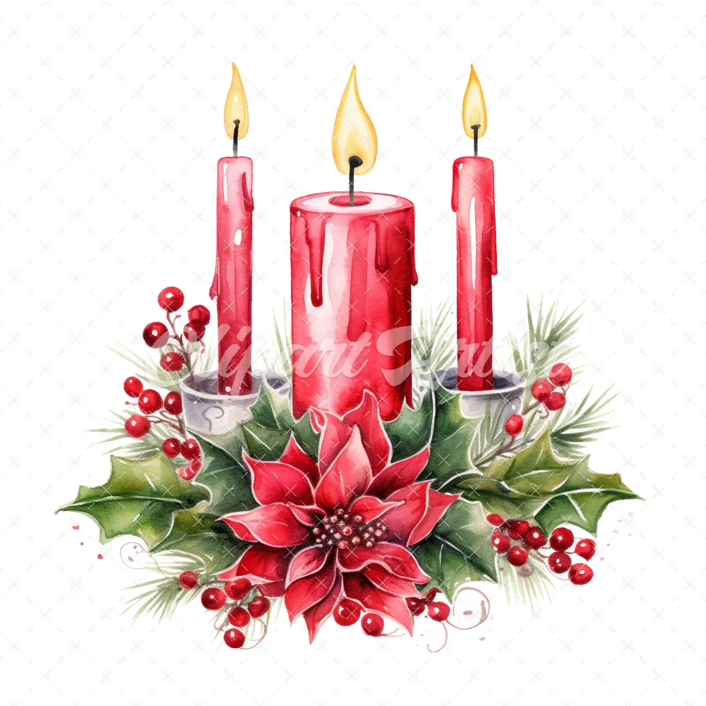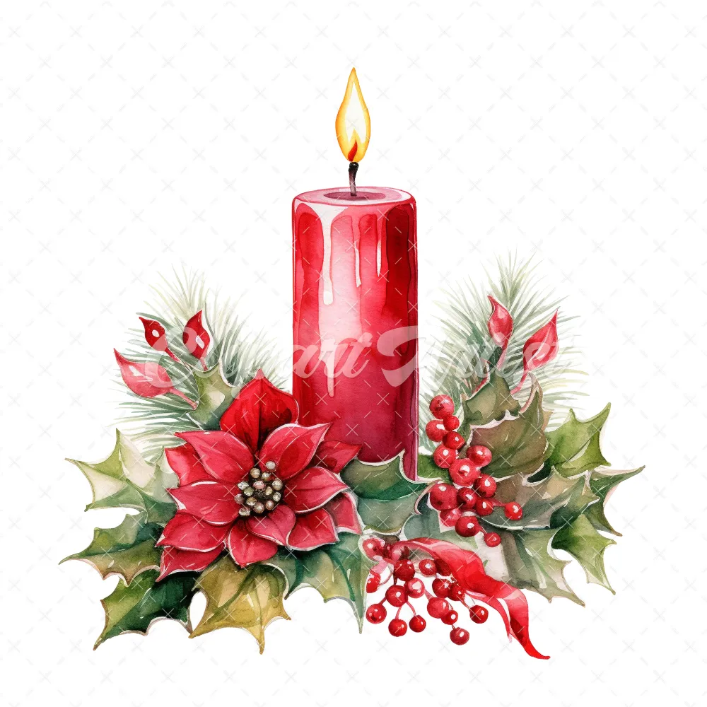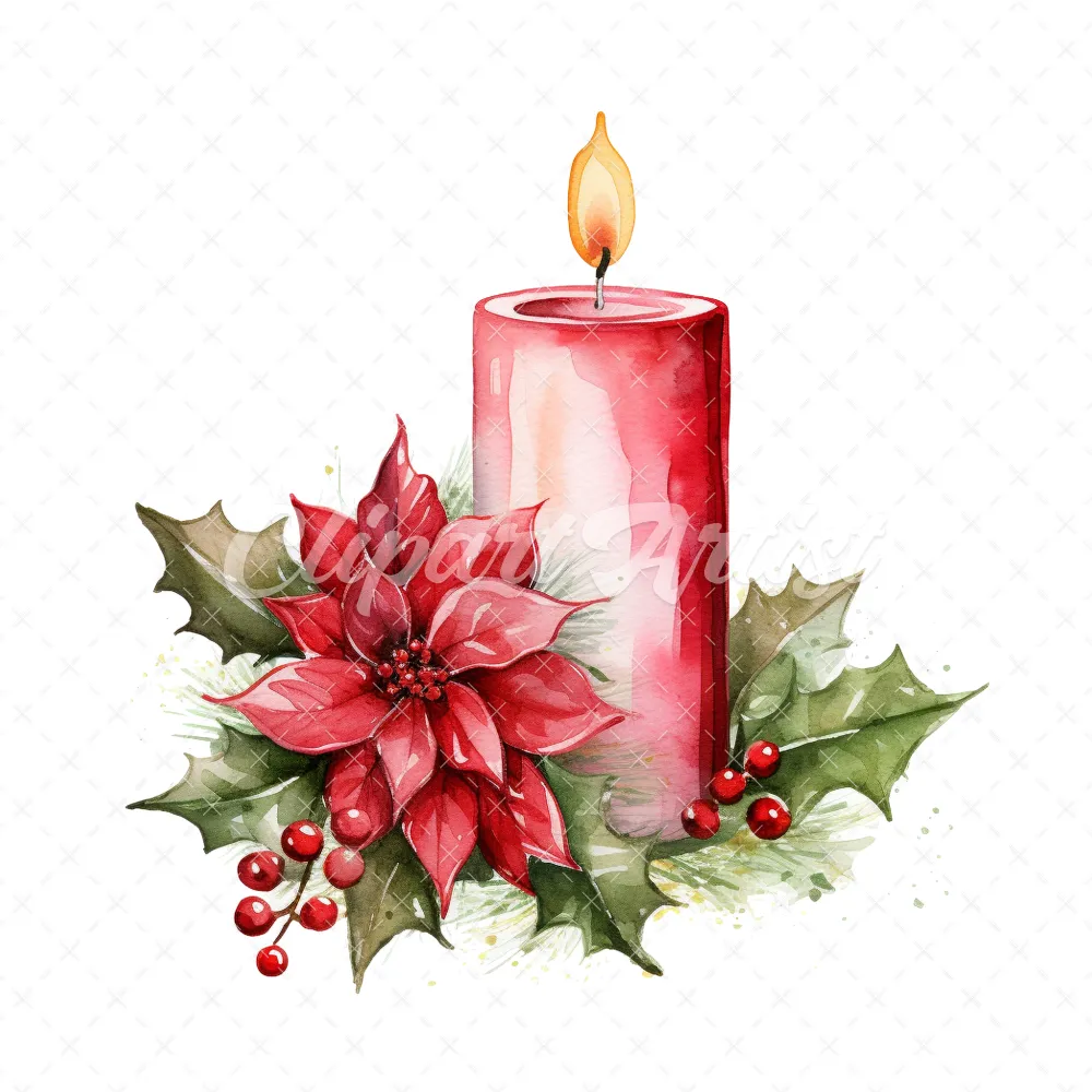 19 High-Quality Christmas Candles Clipart – Christmas candles digital watercolor JPG instant download for commercial use – Digital download