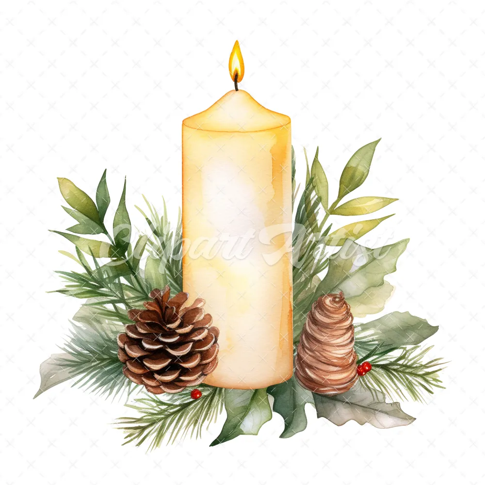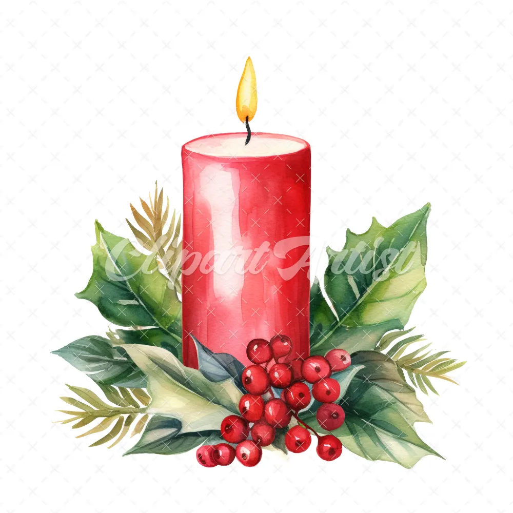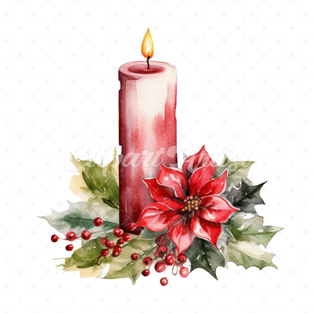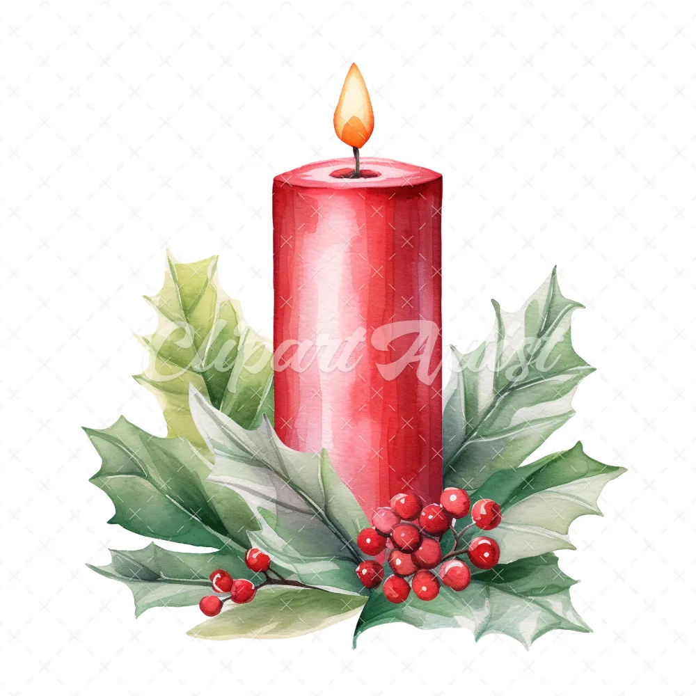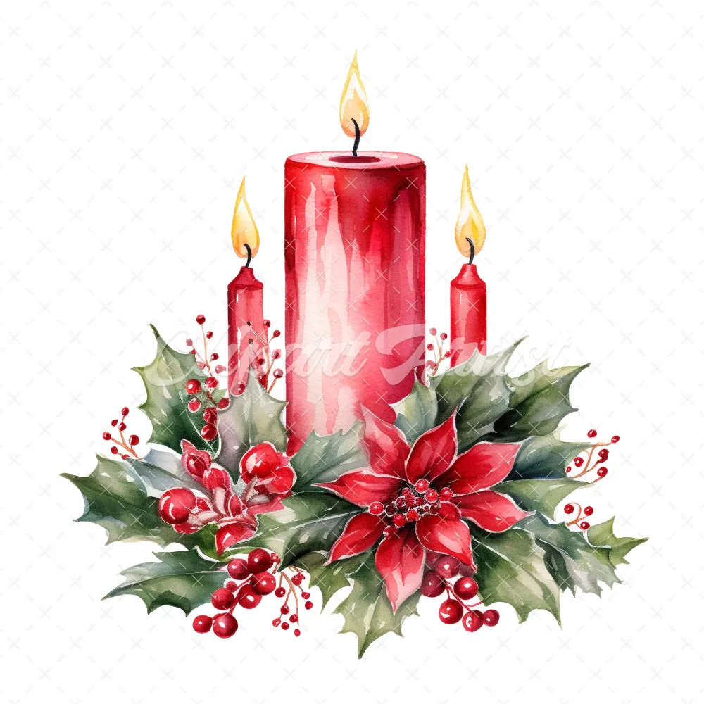 19 High-Quality Christmas Candles Clipart – Christmas candles digital watercolor JPG instant download for commercial use – Digital download