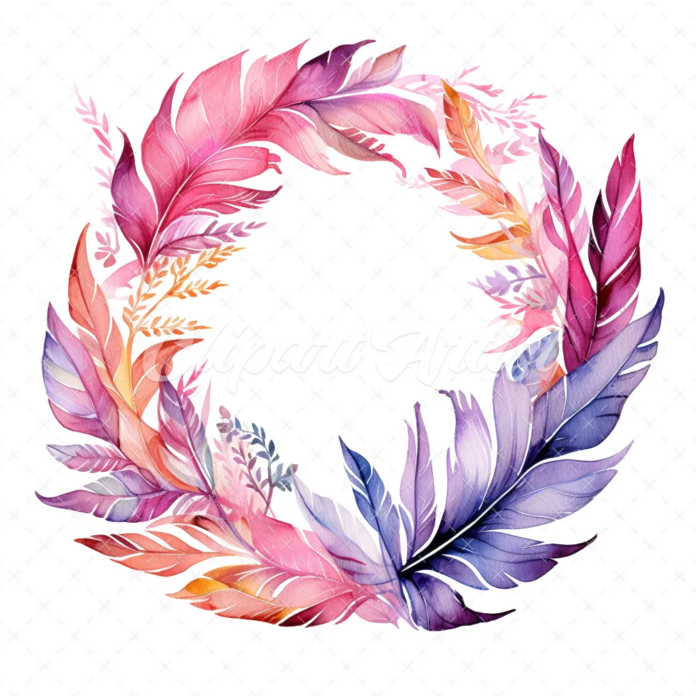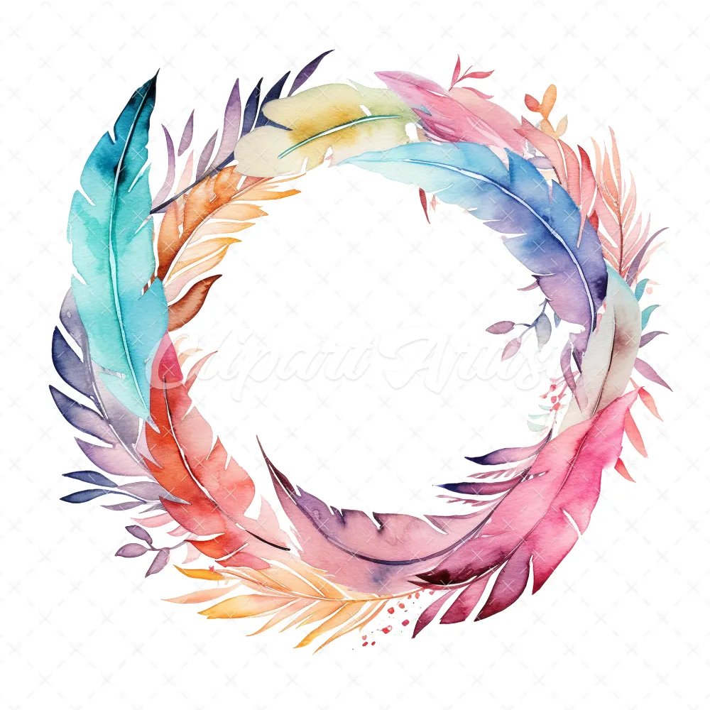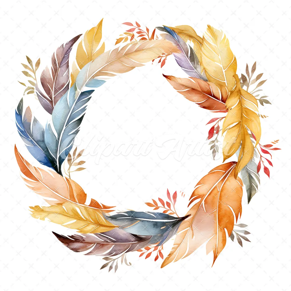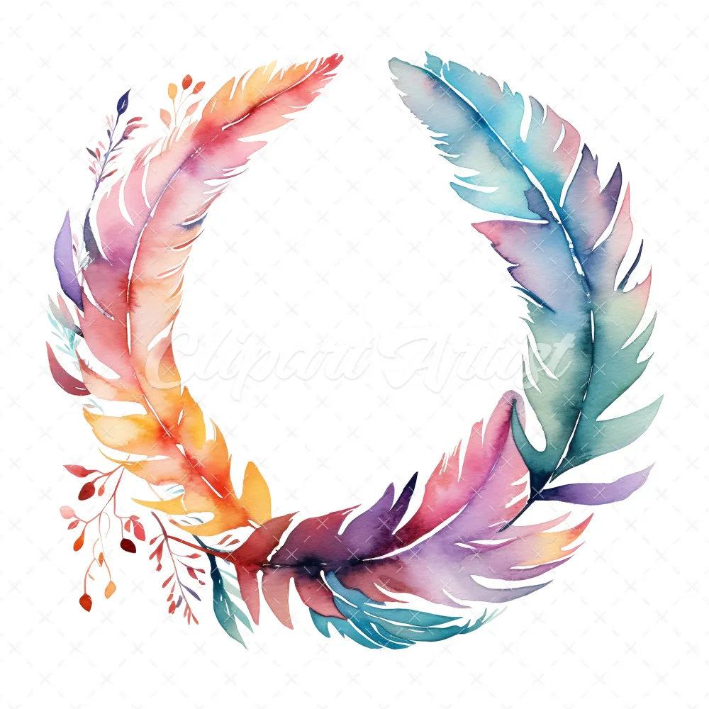 19 High-Quality Feathers Wreath Clipart – Feathers wreath digital watercolor JPG instant download for commercial use – Digital download