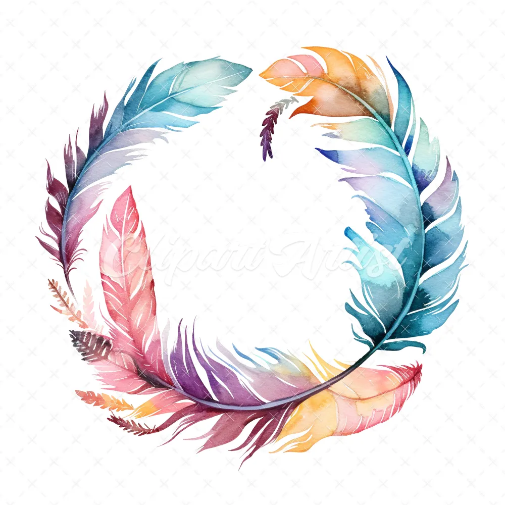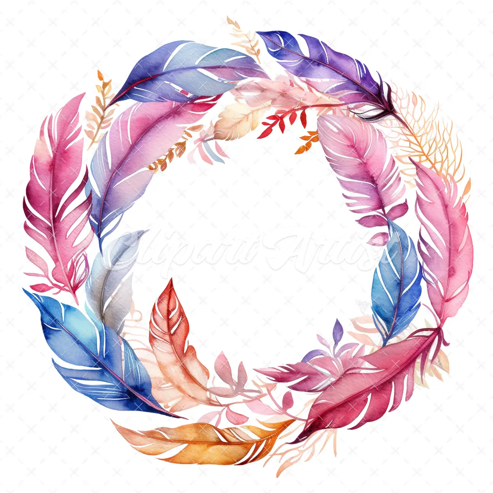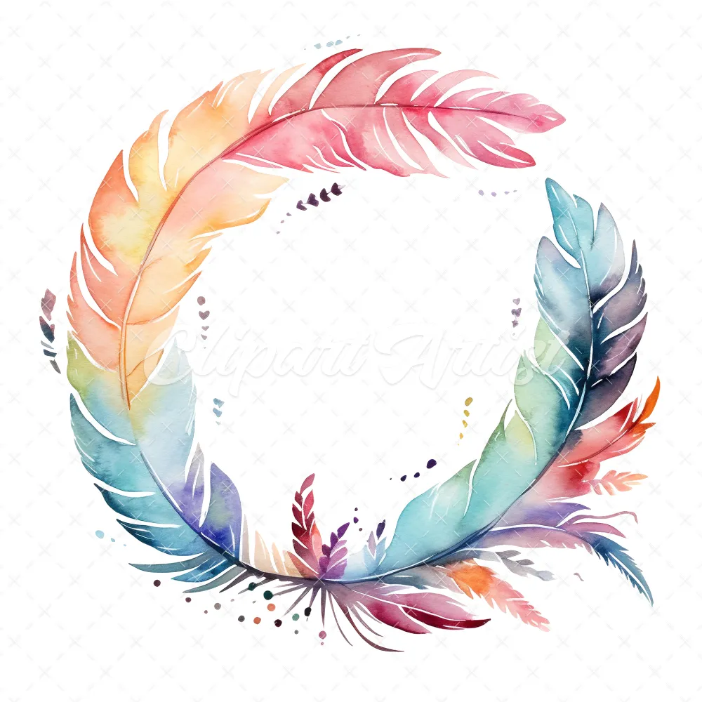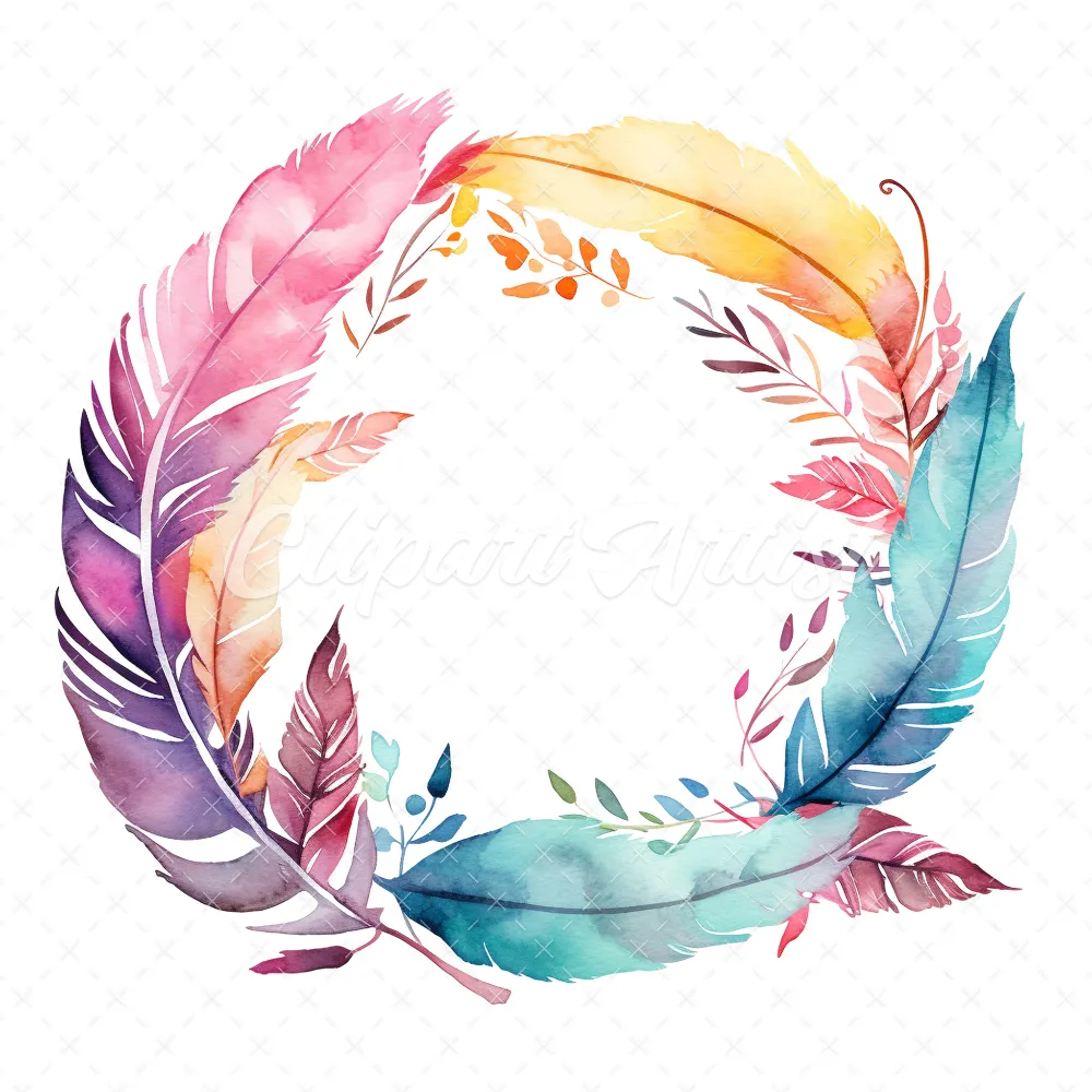 19 High-Quality Feathers Wreath Clipart – Feathers wreath digital watercolor JPG instant download for commercial use – Digital download