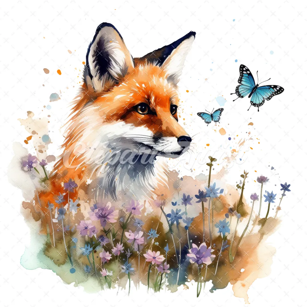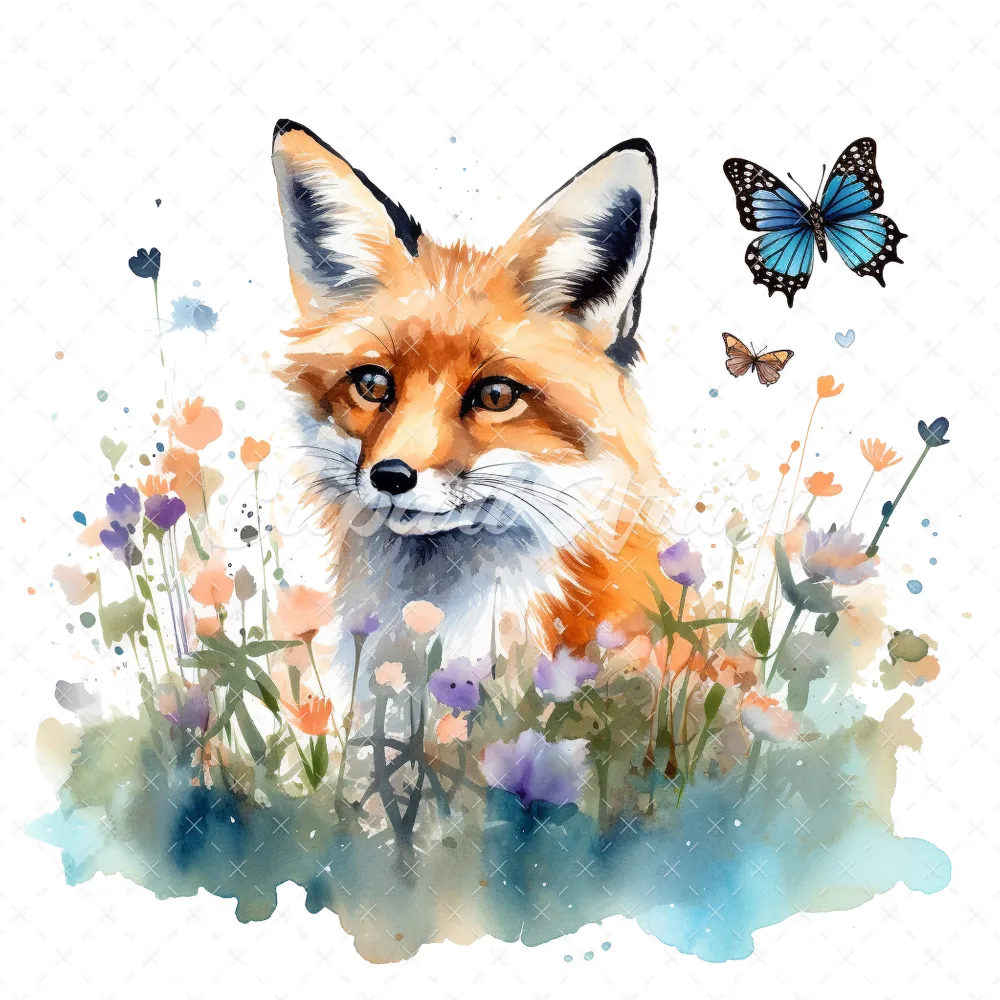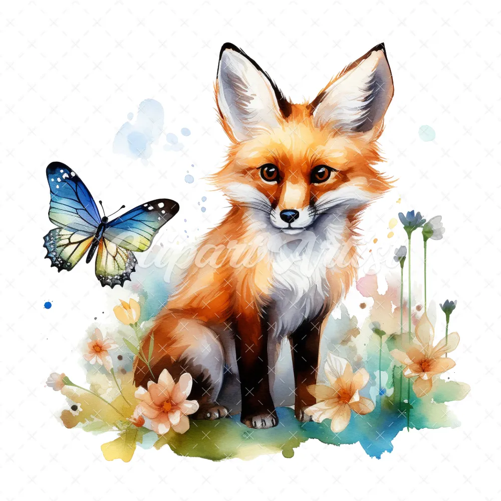 19 High-Quality Fox and Butterfly Clipart – Fox and butterfly digital watercolor JPG instant download for commercial use – Digital download