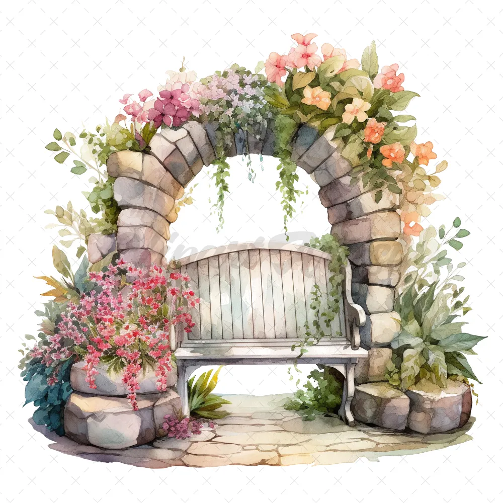 19 High-Quality Garden Stone Benches Clipart – Stone benches digital watercolor JPG instant download for commercial use – Digital download