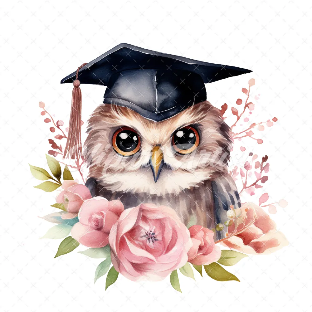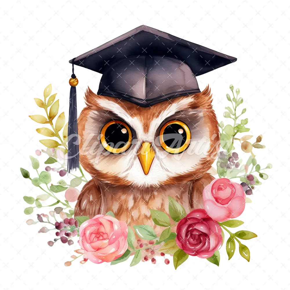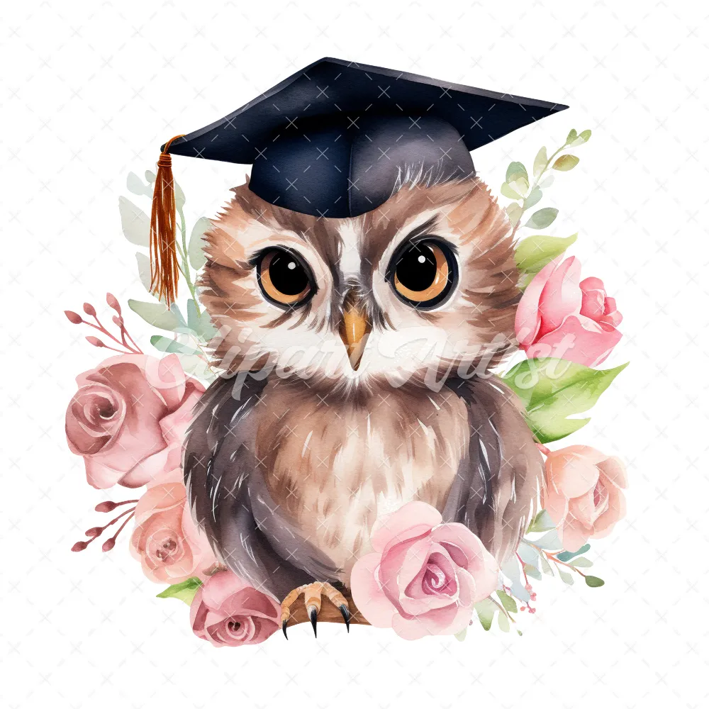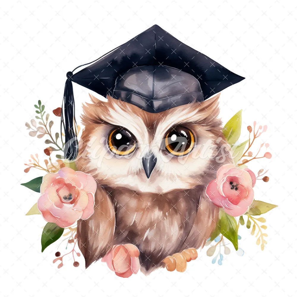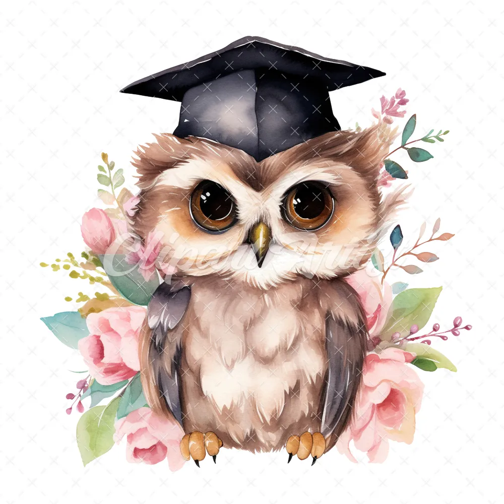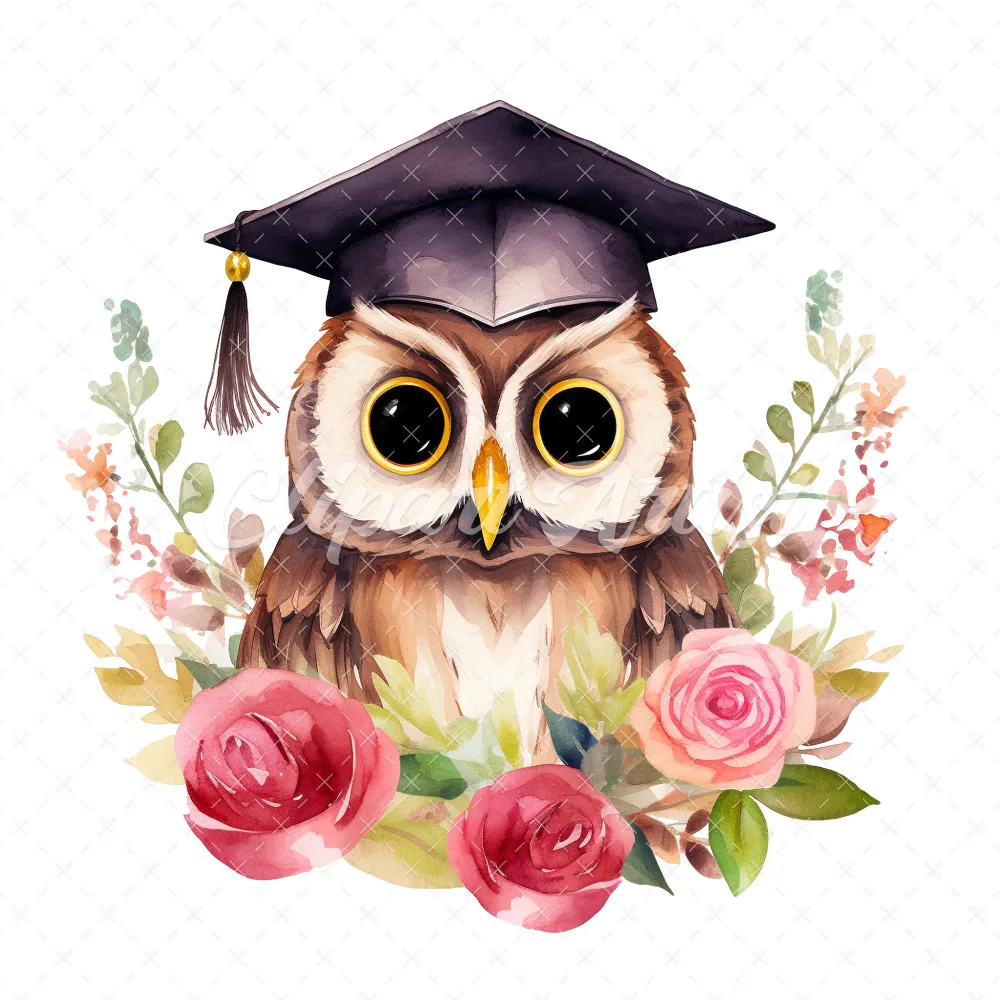 19 High-Quality Graduation Owl Clipart – Graduation owl digital watercolor JPG instant download for commercial use – Digital download