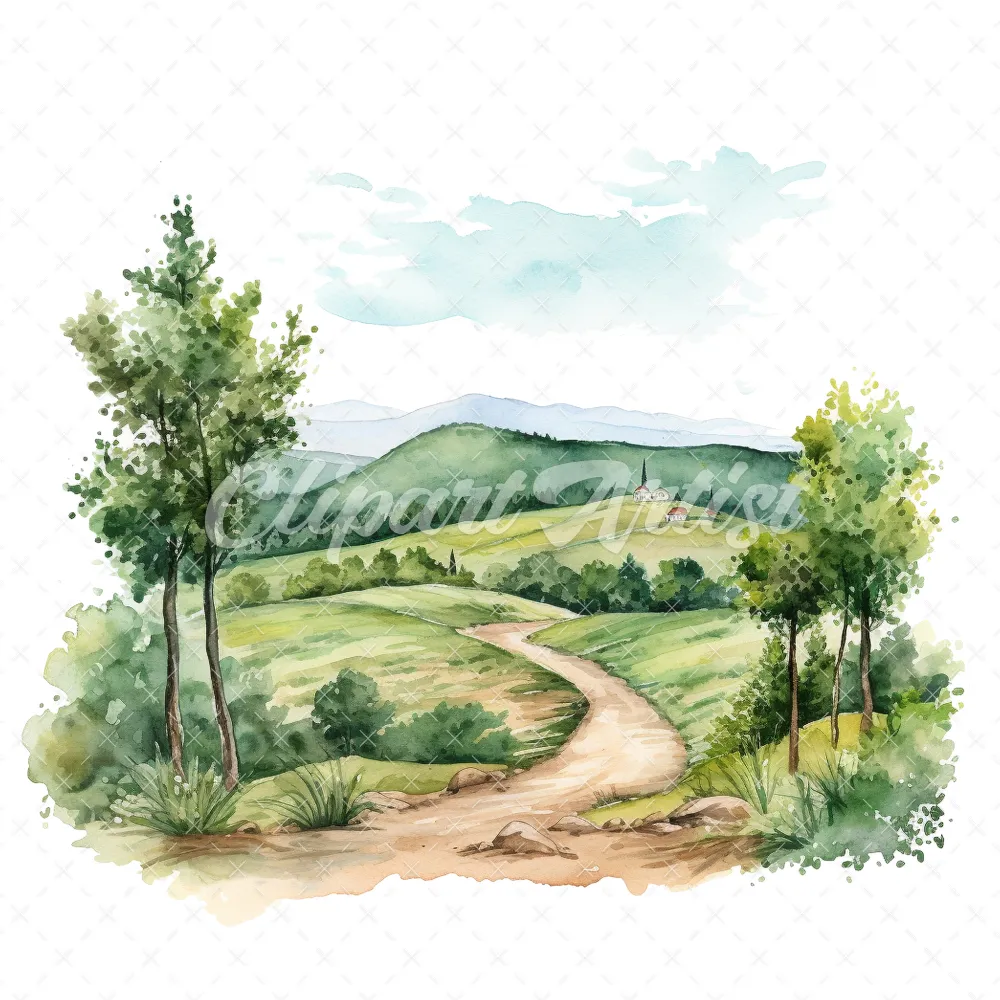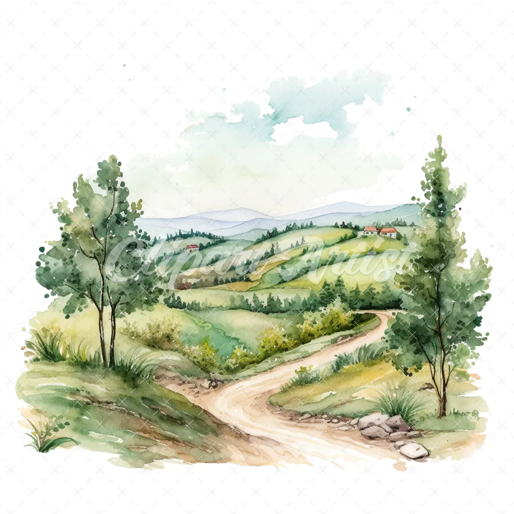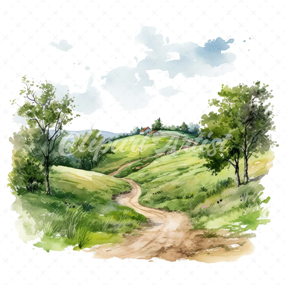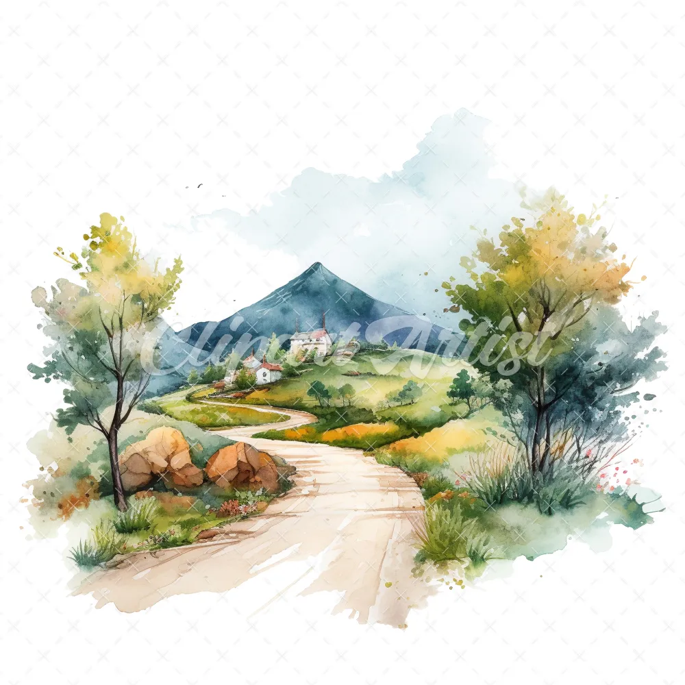 19 High-Quality Hill Road Clipart – Hill road digital watercolor JPG instant download for commercial use – Digital download