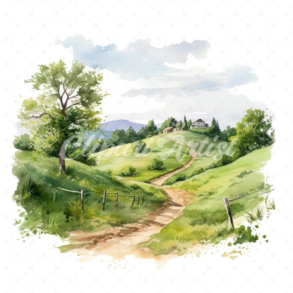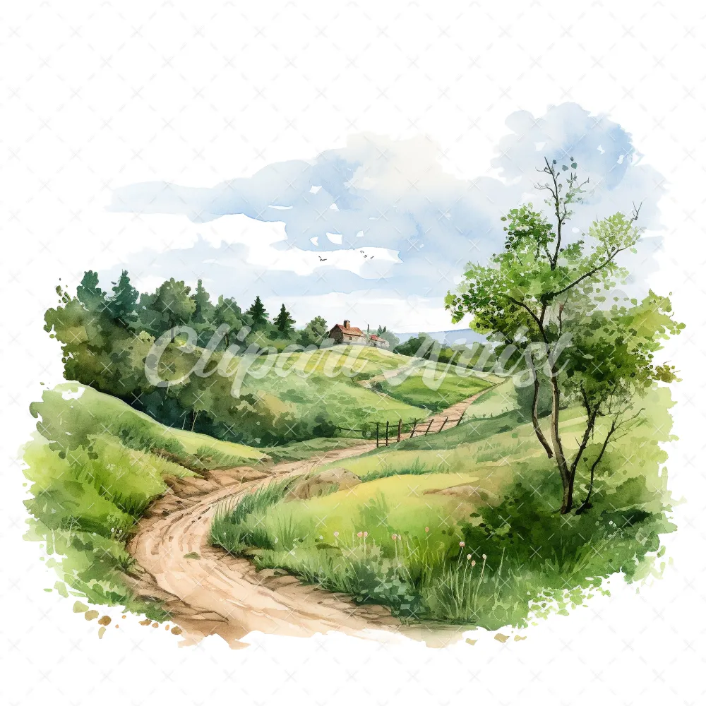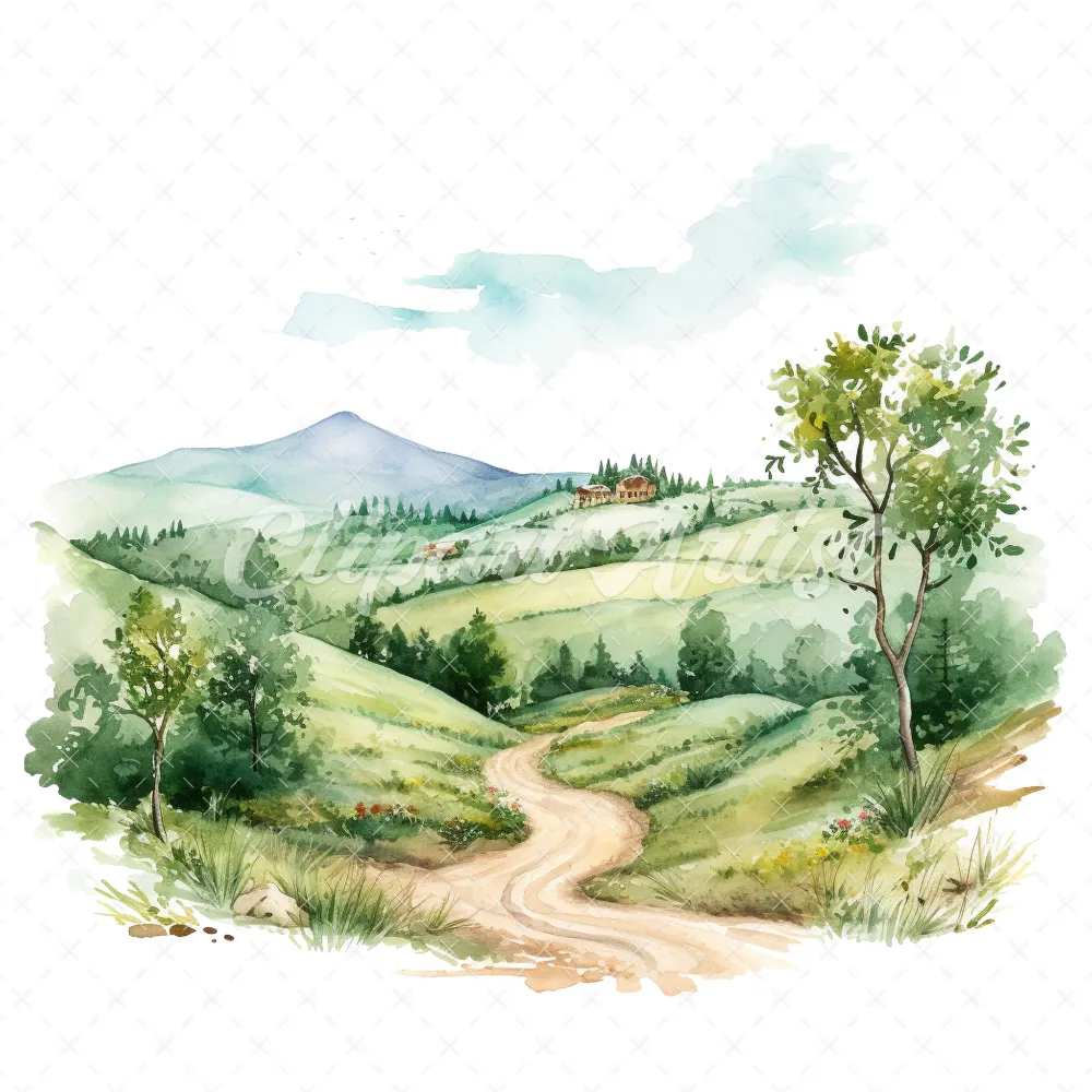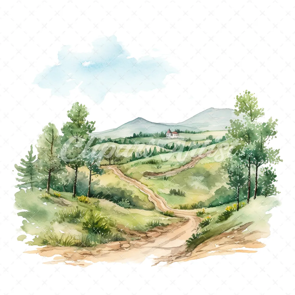 19 High-Quality Hill Road Clipart – Hill road digital watercolor JPG instant download for commercial use – Digital download