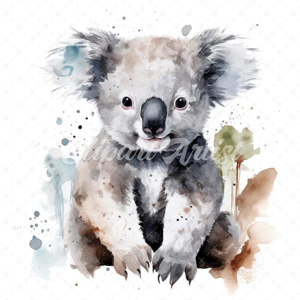 19 High-Quality Koala Portrait Clipart – Koala portrait digital watercolor JPG instant download for commercial use – Digital download