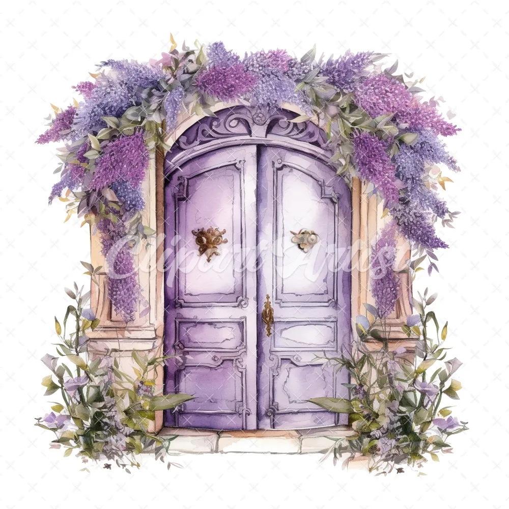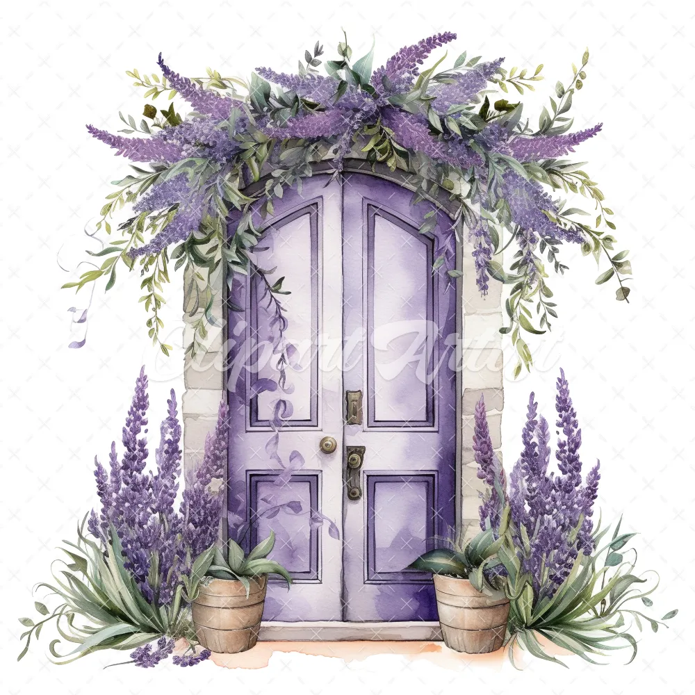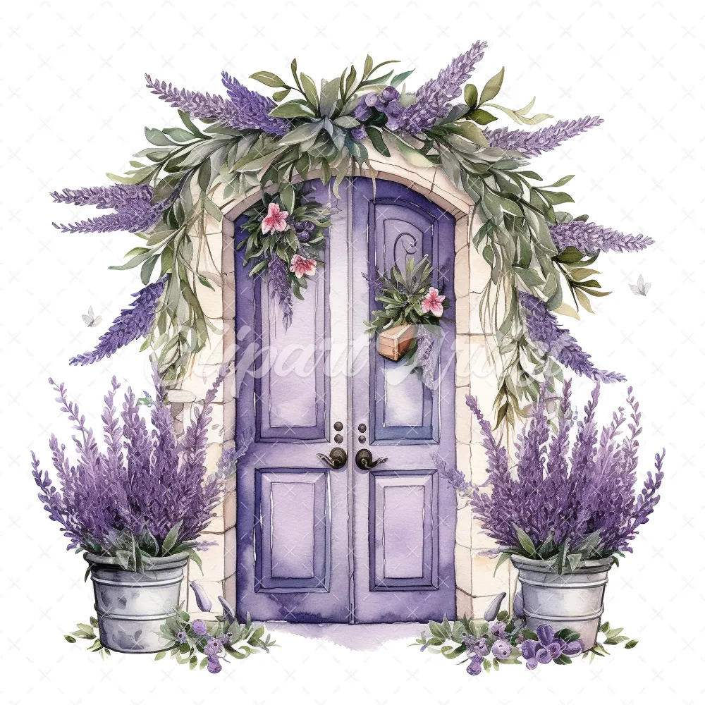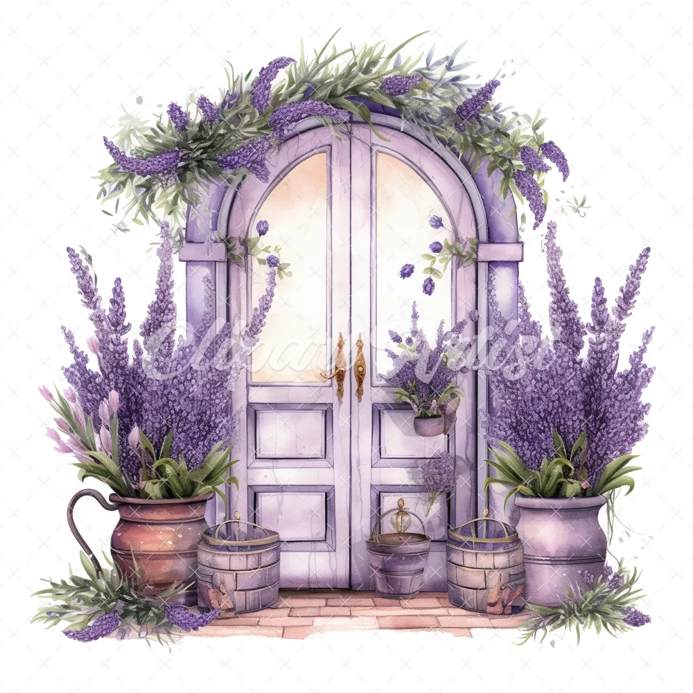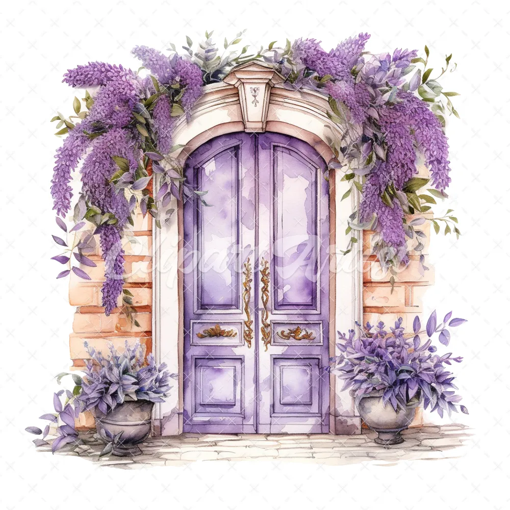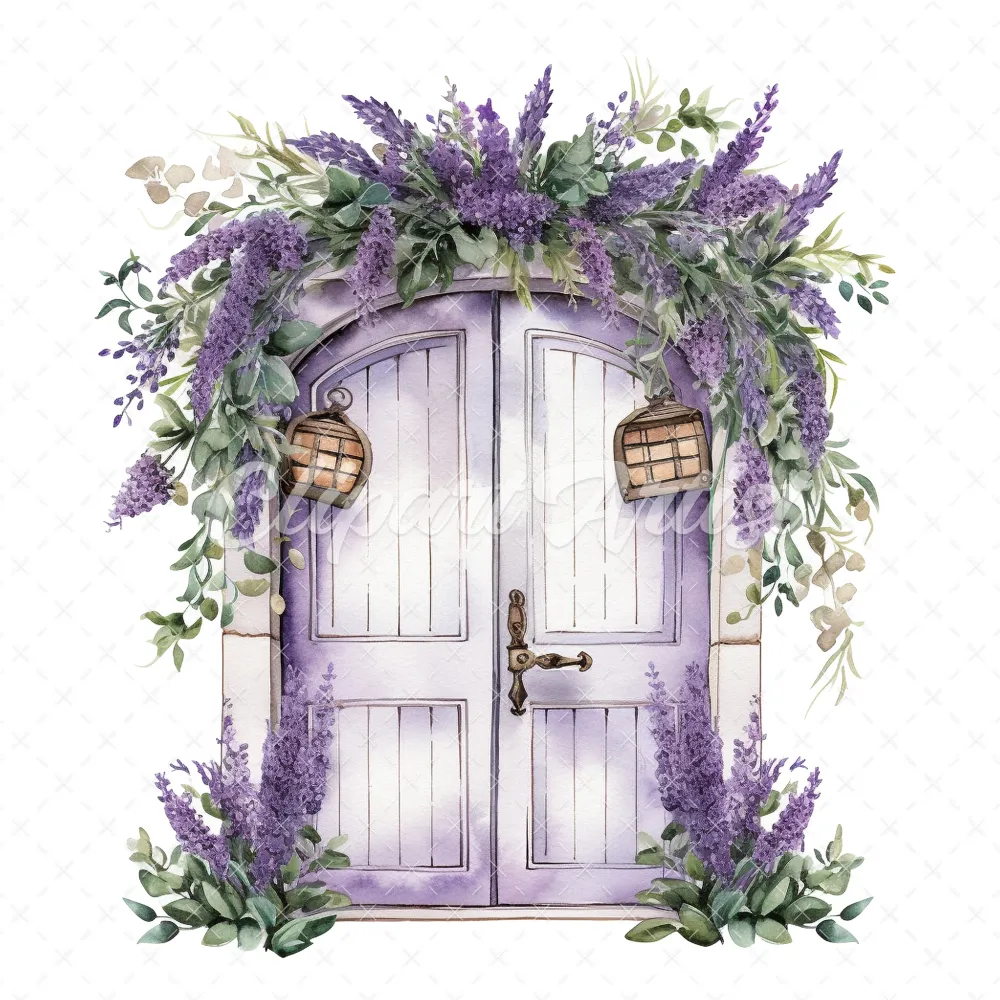 19 High-Quality Lavender Floral Doors Clipart – Lavender Doors digital watercolor JPG instant download for commercial use – Digital download