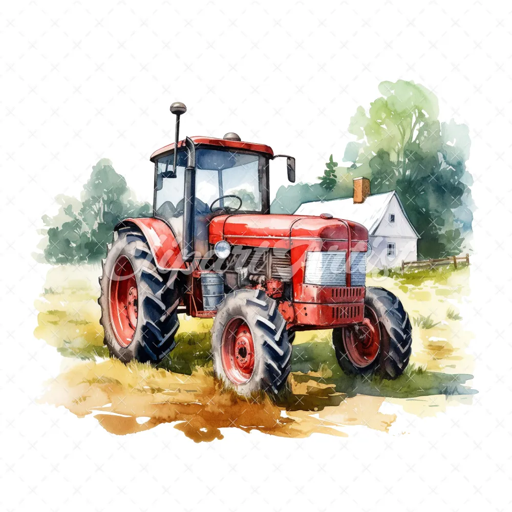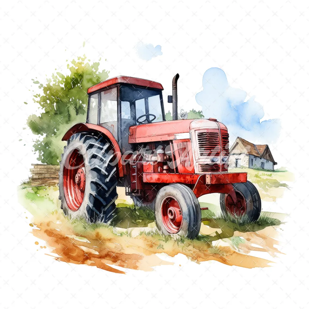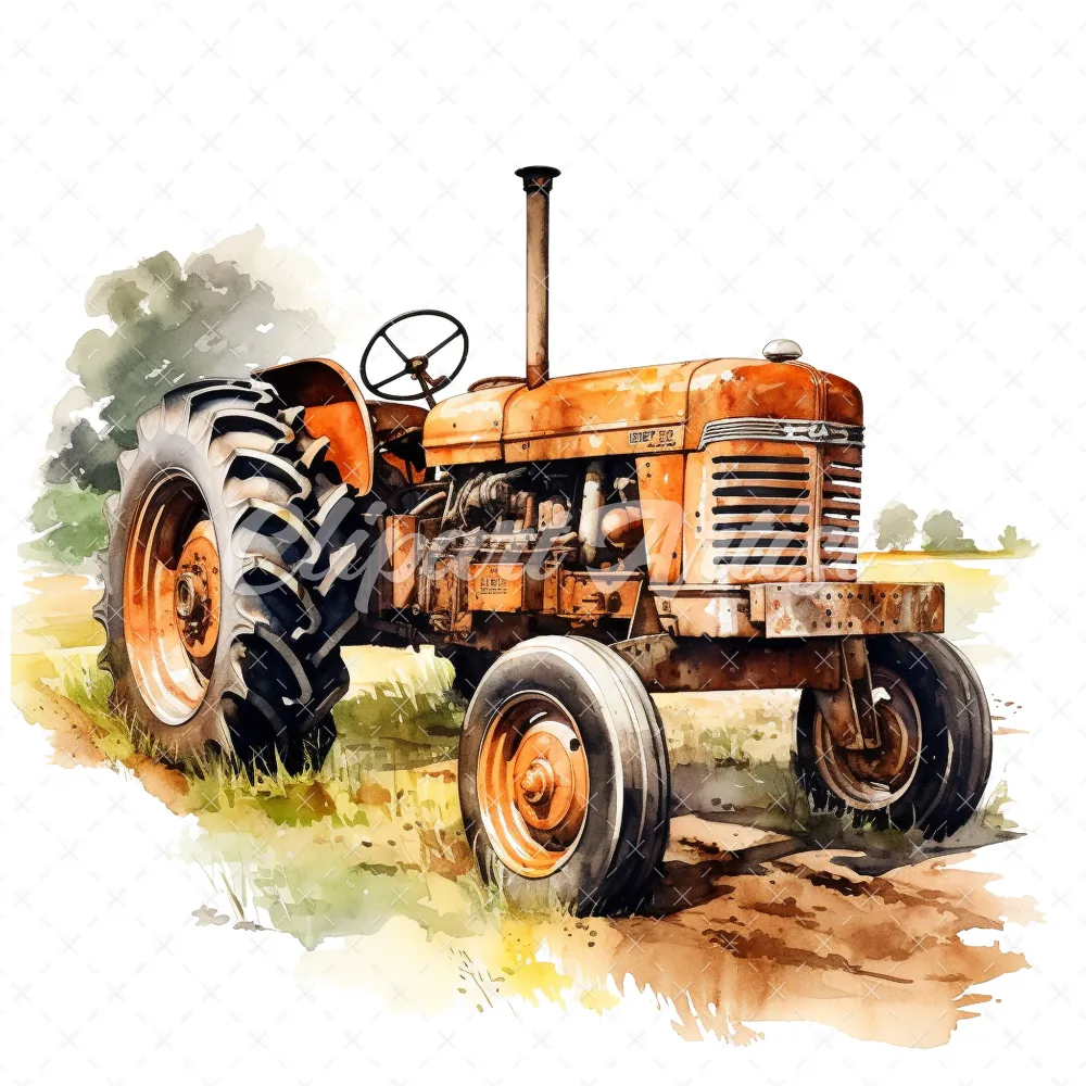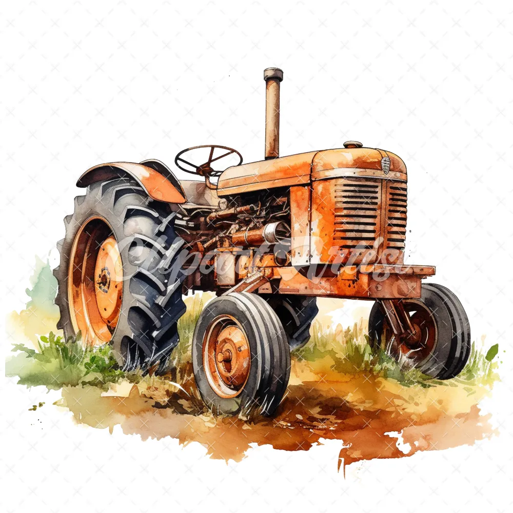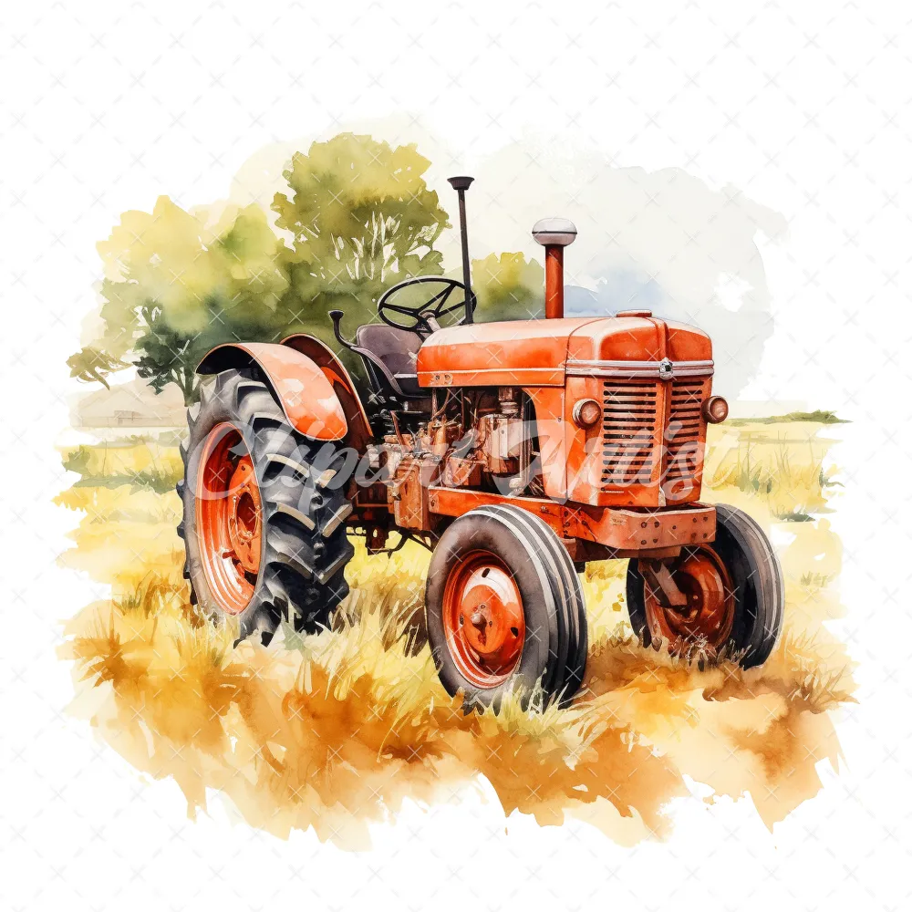 19 High-Quality Old Tractor Clipart – Old tractor digital watercolor JPG instant download for commercial use – Digital download