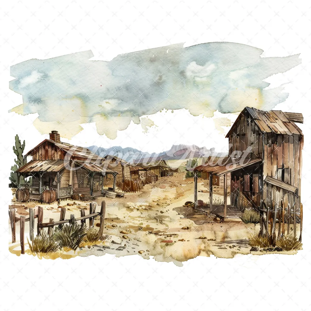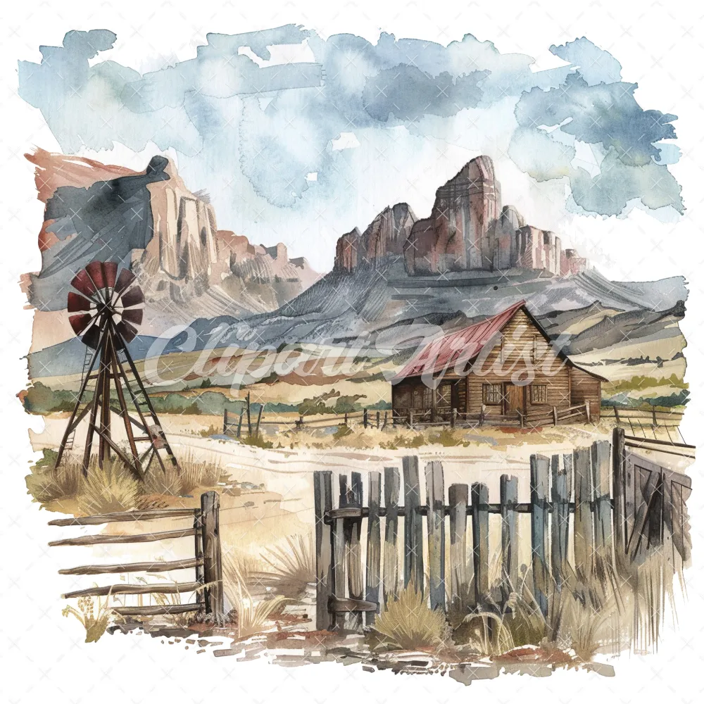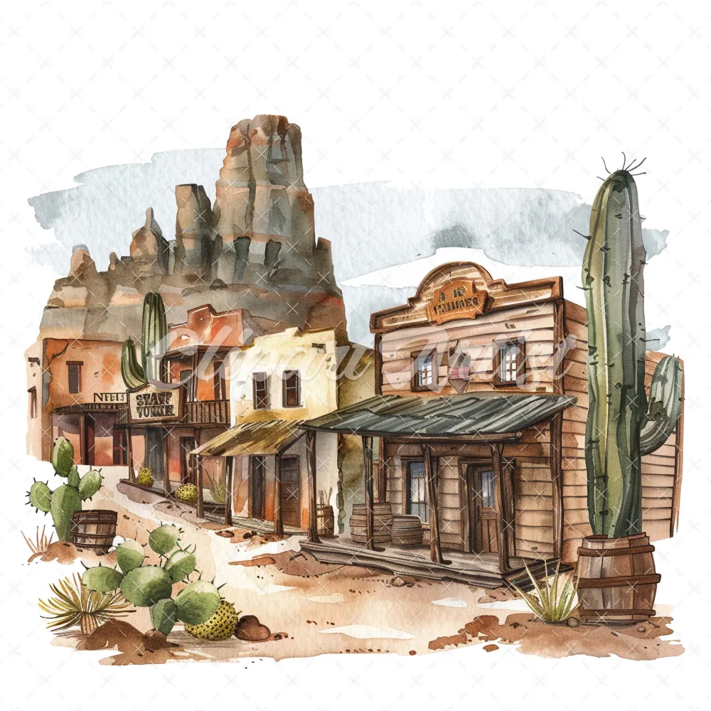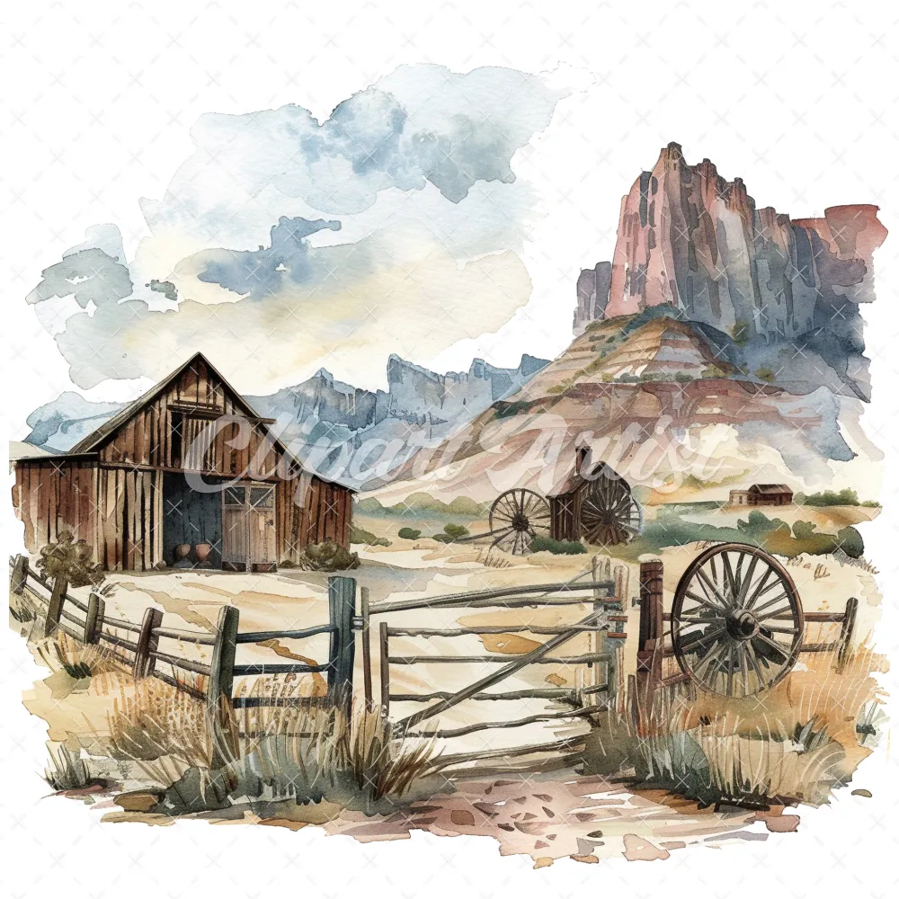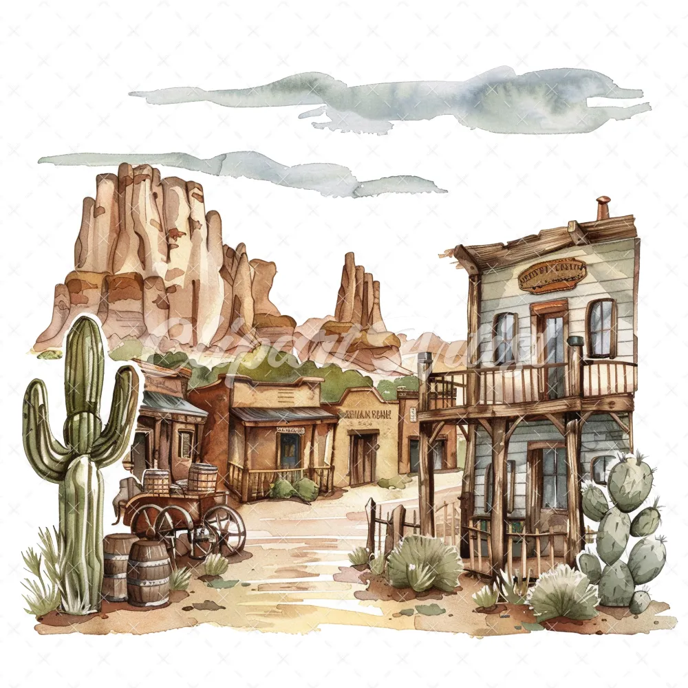 19 High-Quality Old West Clipart – Old west landscape digital watercolor JPG instant download for commercial use – Digital download