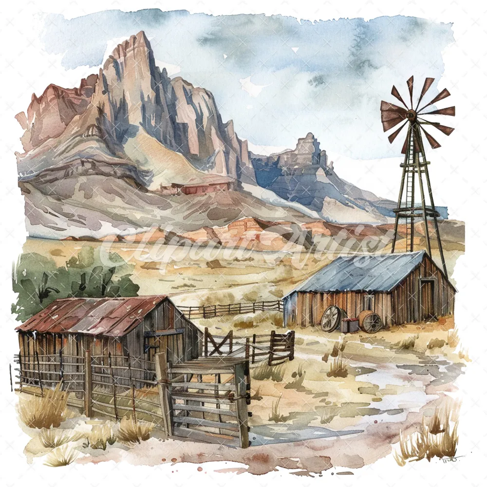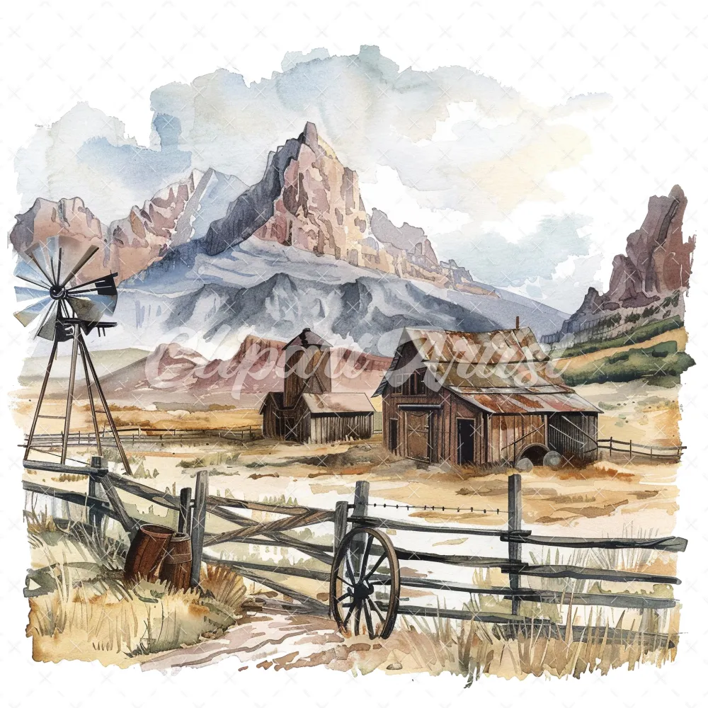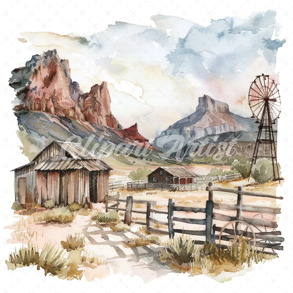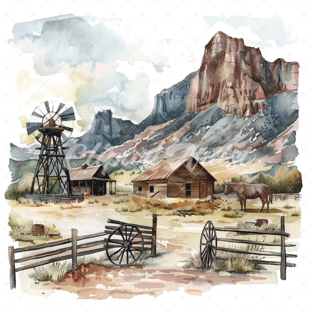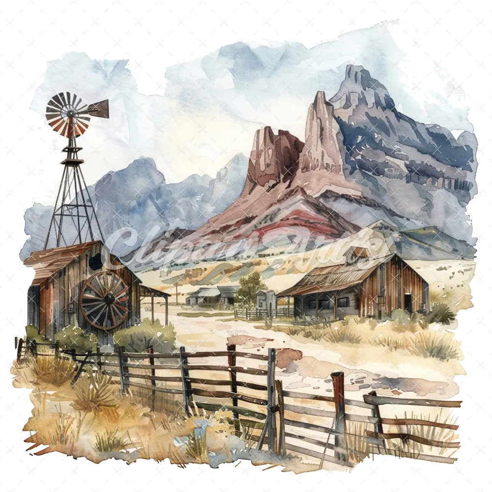 19 High-Quality Old West Clipart – Old west landscape digital watercolor JPG instant download for commercial use – Digital download