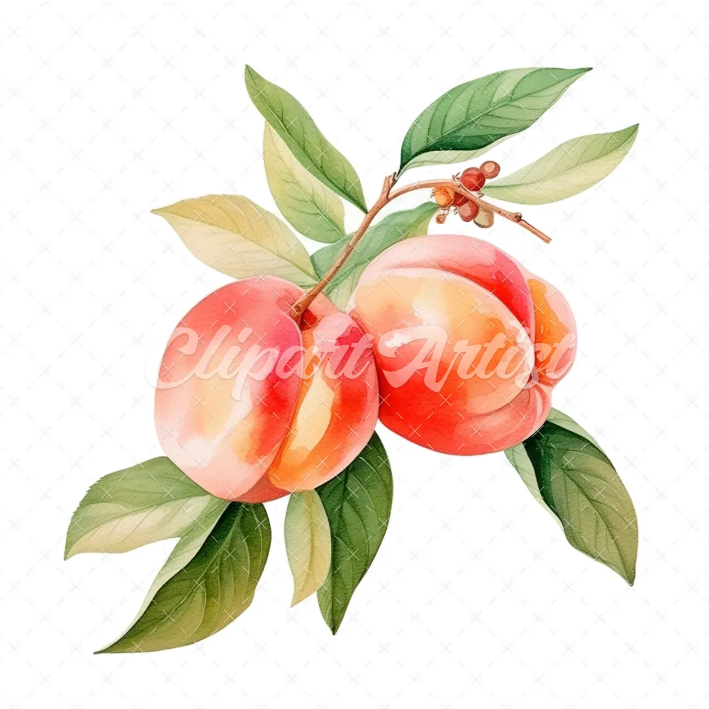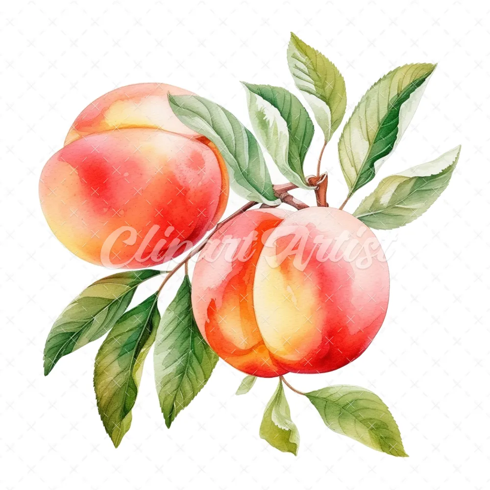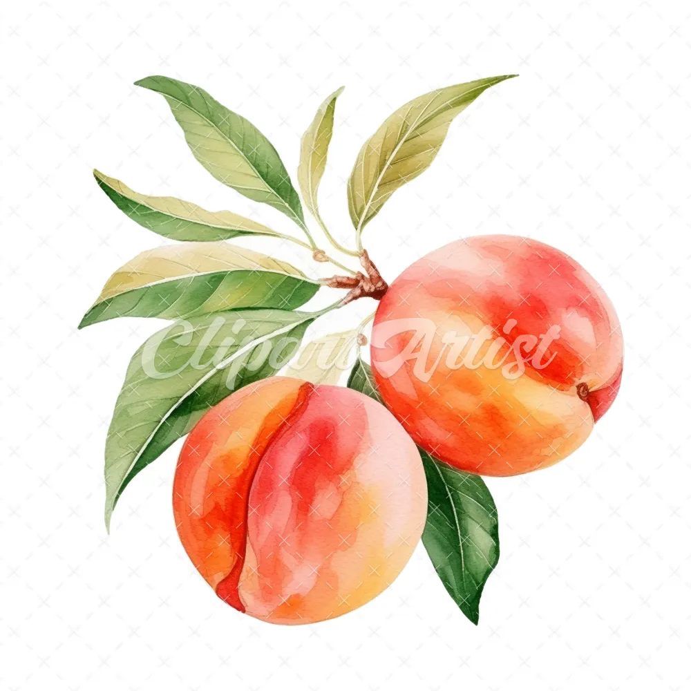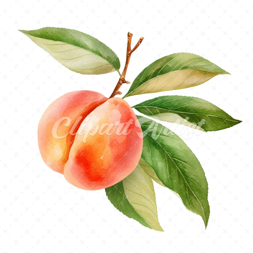 19 High-Quality Peach Clipart – Peach digital watercolor JPG instant download for commercial use – Digital download
