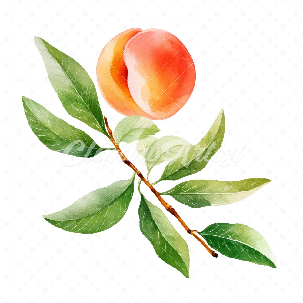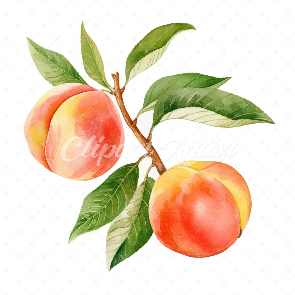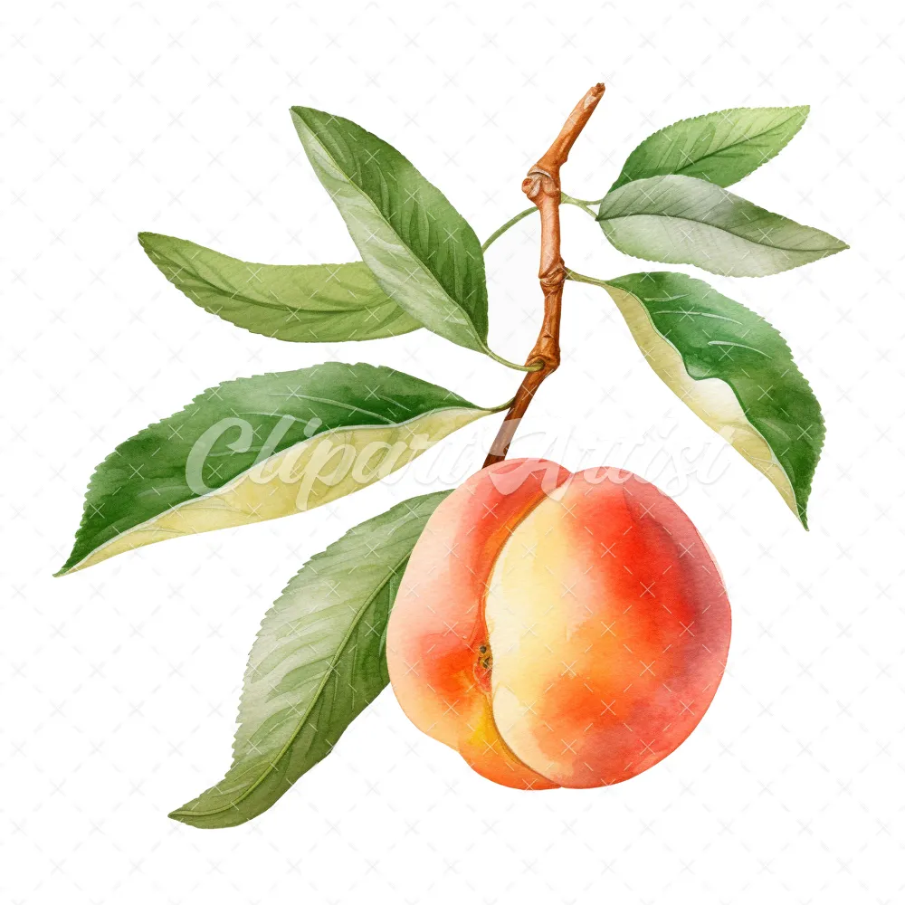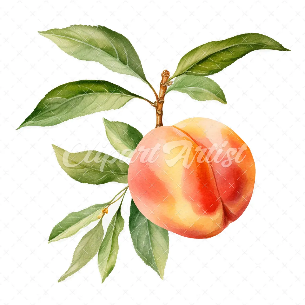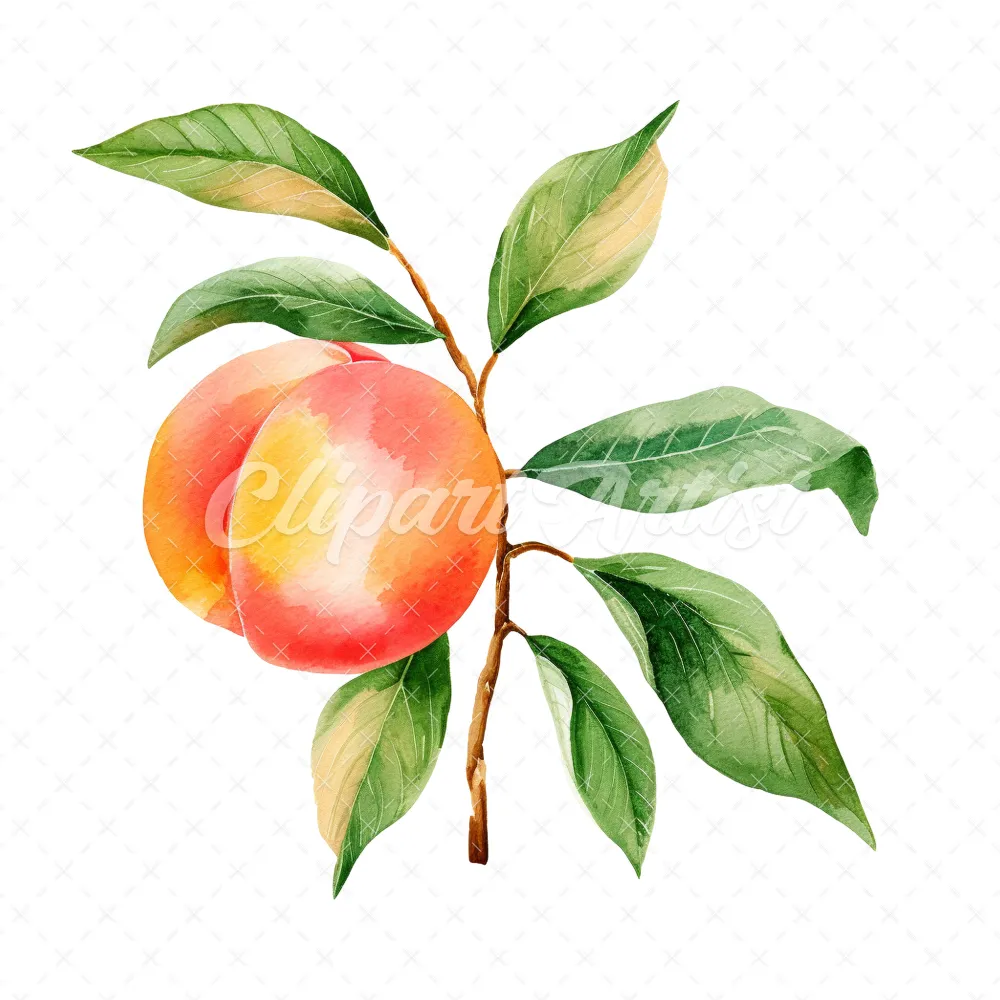 19 High-Quality Peach Clipart – Peach digital watercolor JPG instant download for commercial use – Digital download