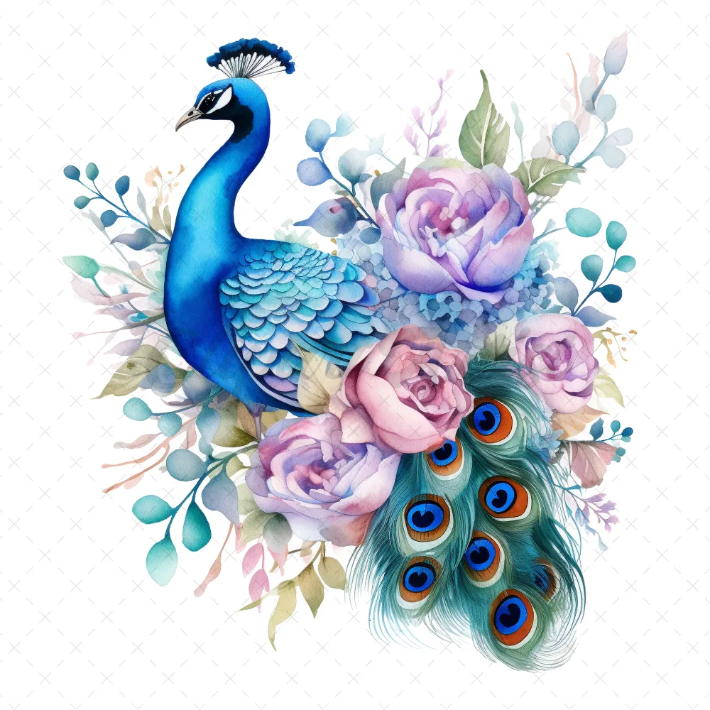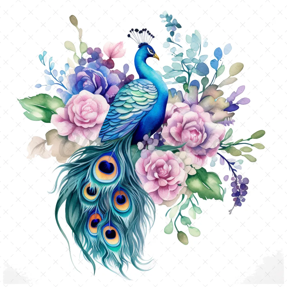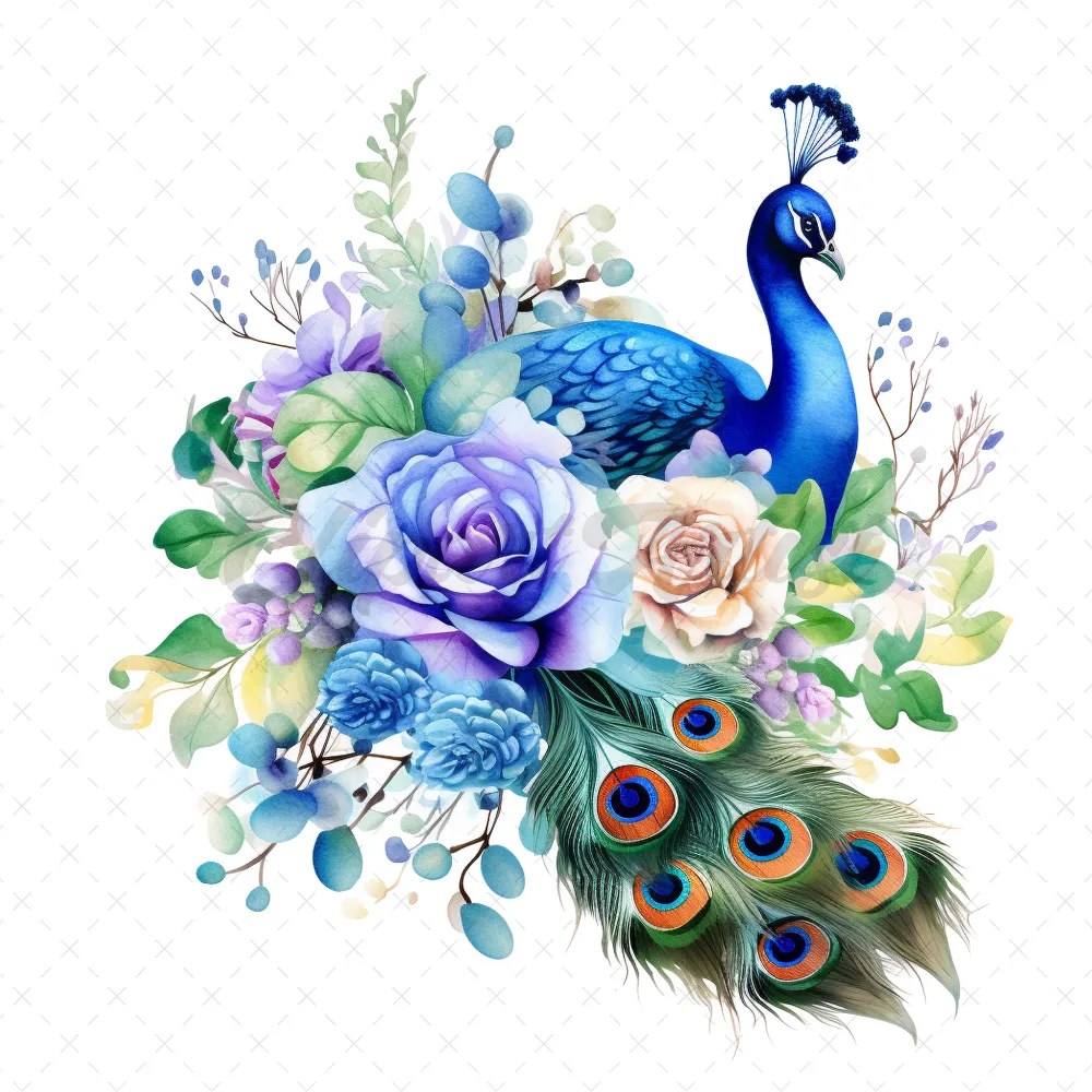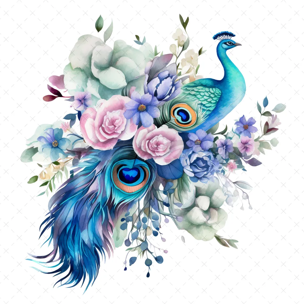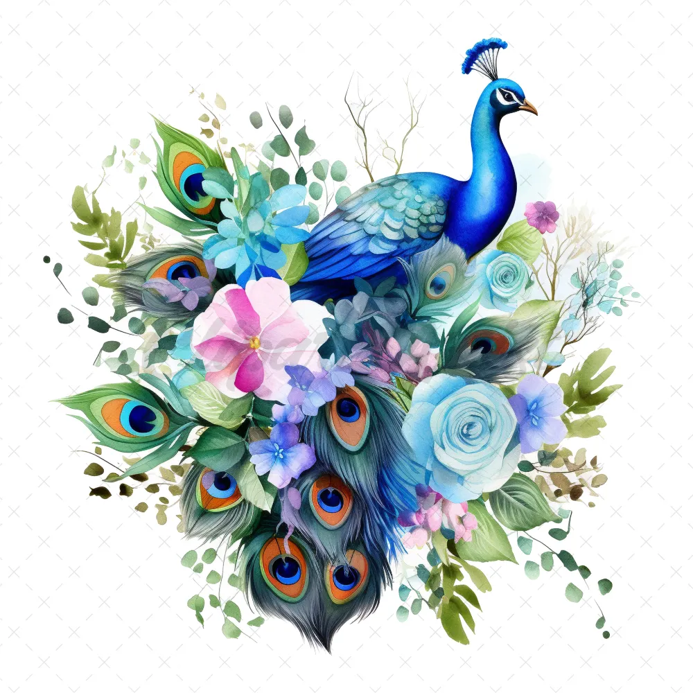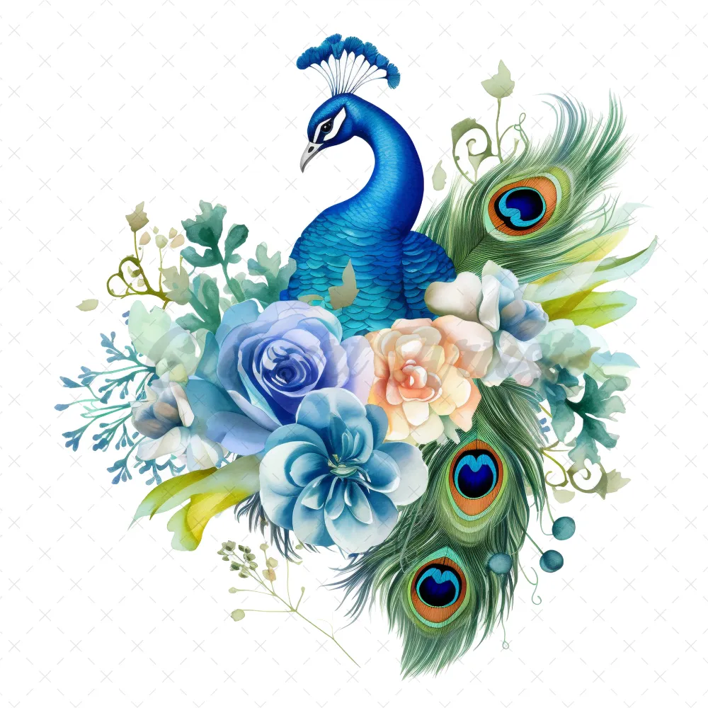 19 High-Quality Peacock Bouquets Clipart – Peacock Bouquets digital watercolor JPG instant download for commercial use – Digital download