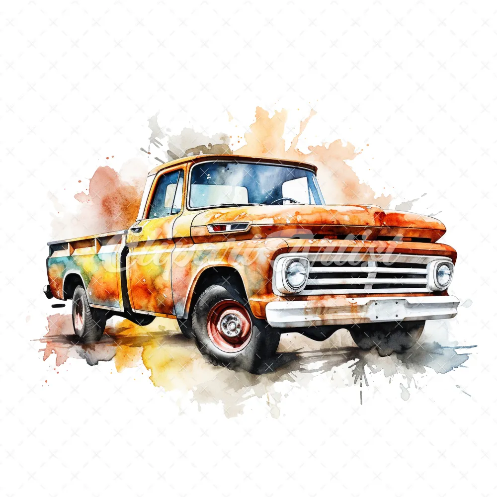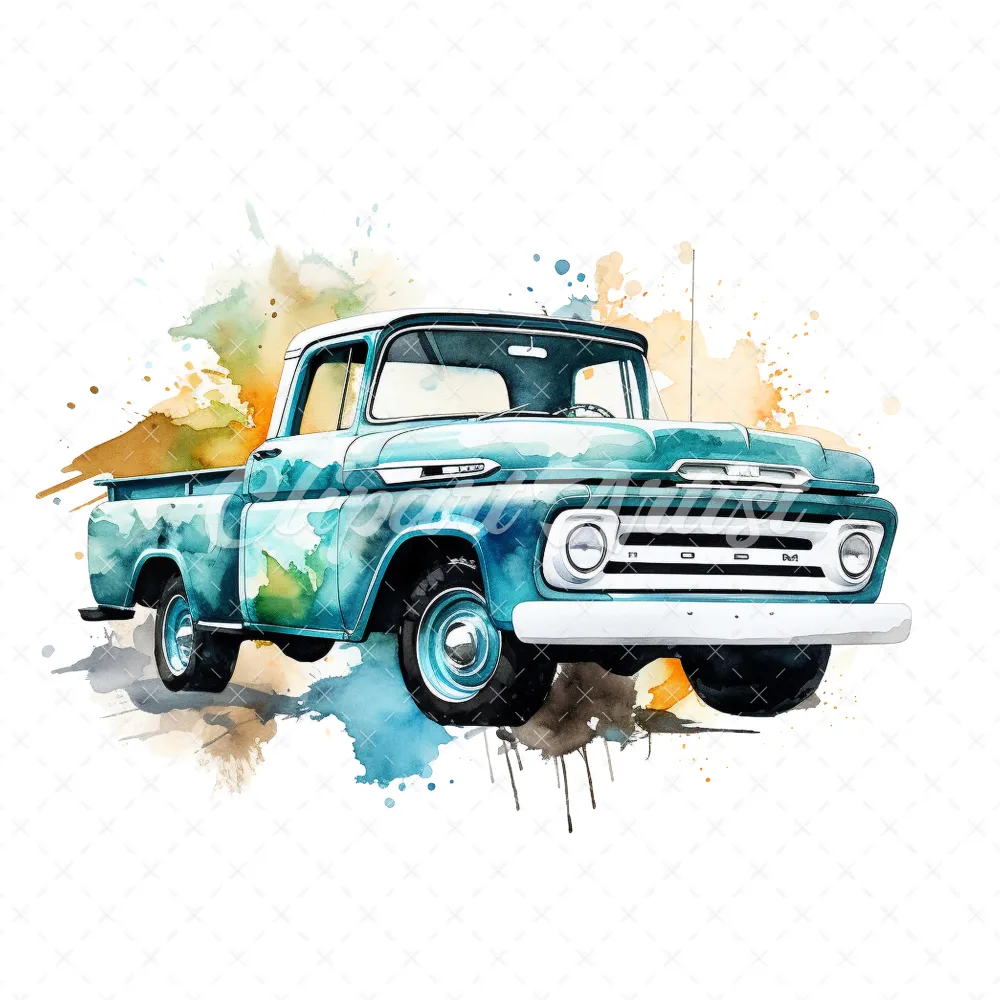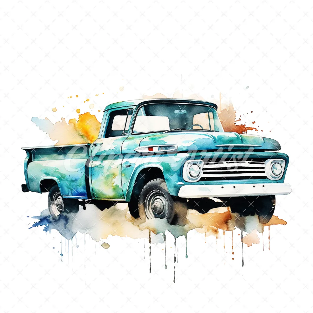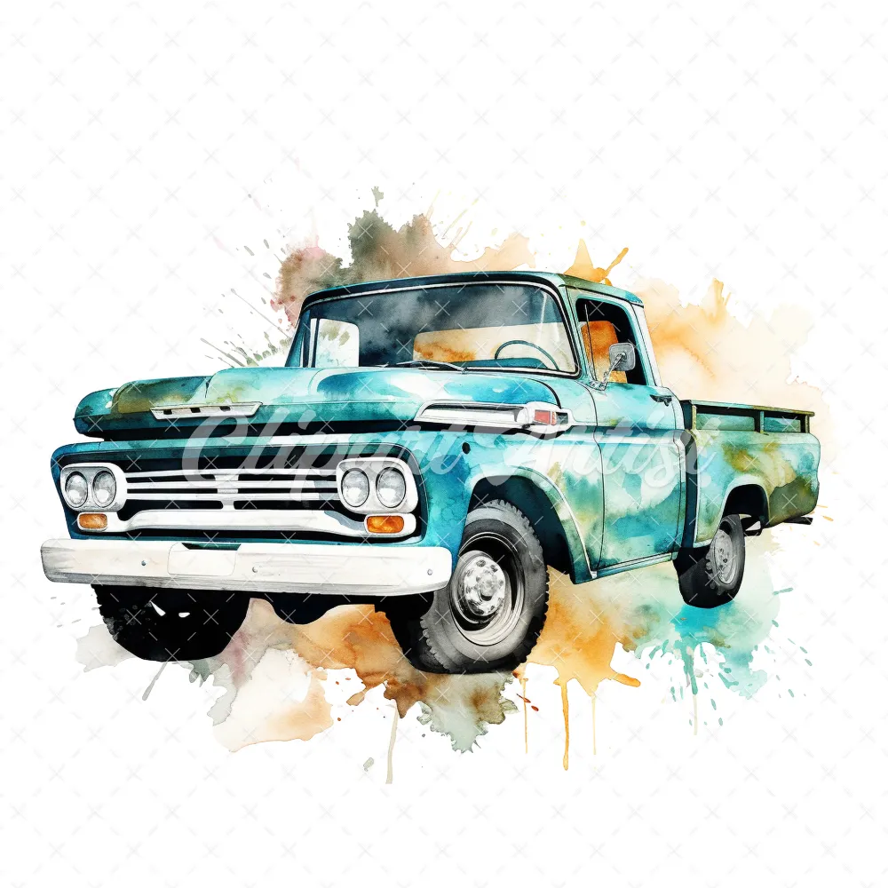 19 High-Quality Pickup Truck Clipart – Pickup truck digital watercolor JPG instant download for commercial use – Digital download
