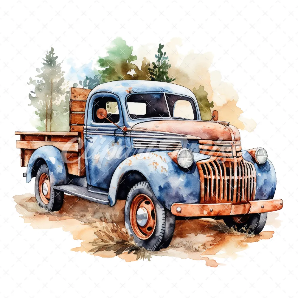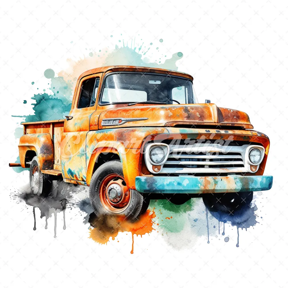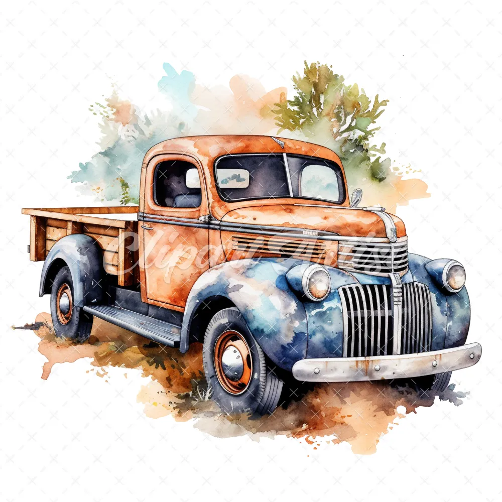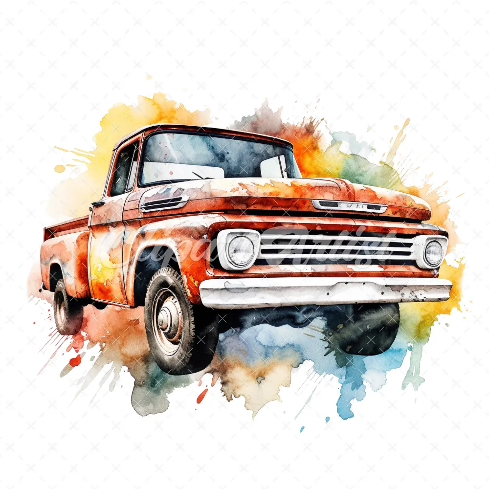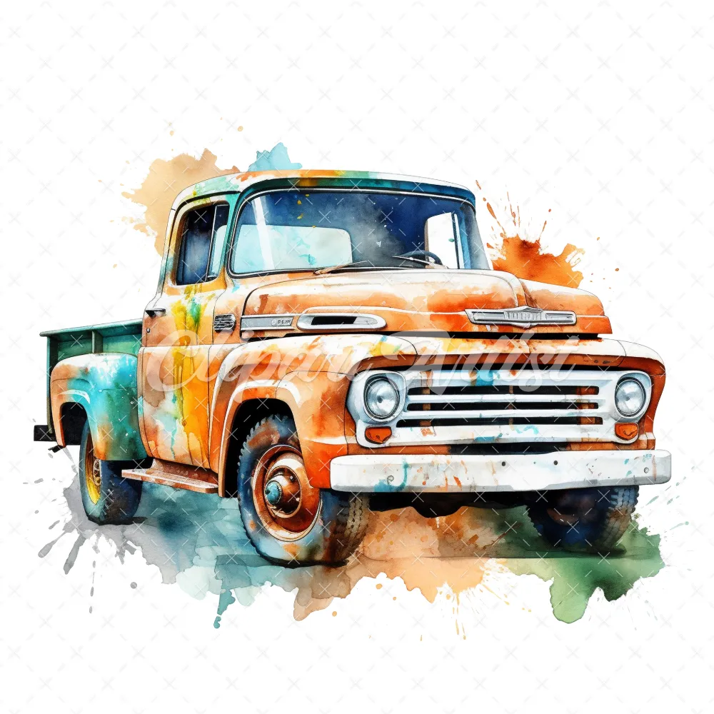 19 High-Quality Pickup Truck Clipart – Pickup truck digital watercolor JPG instant download for commercial use – Digital download
