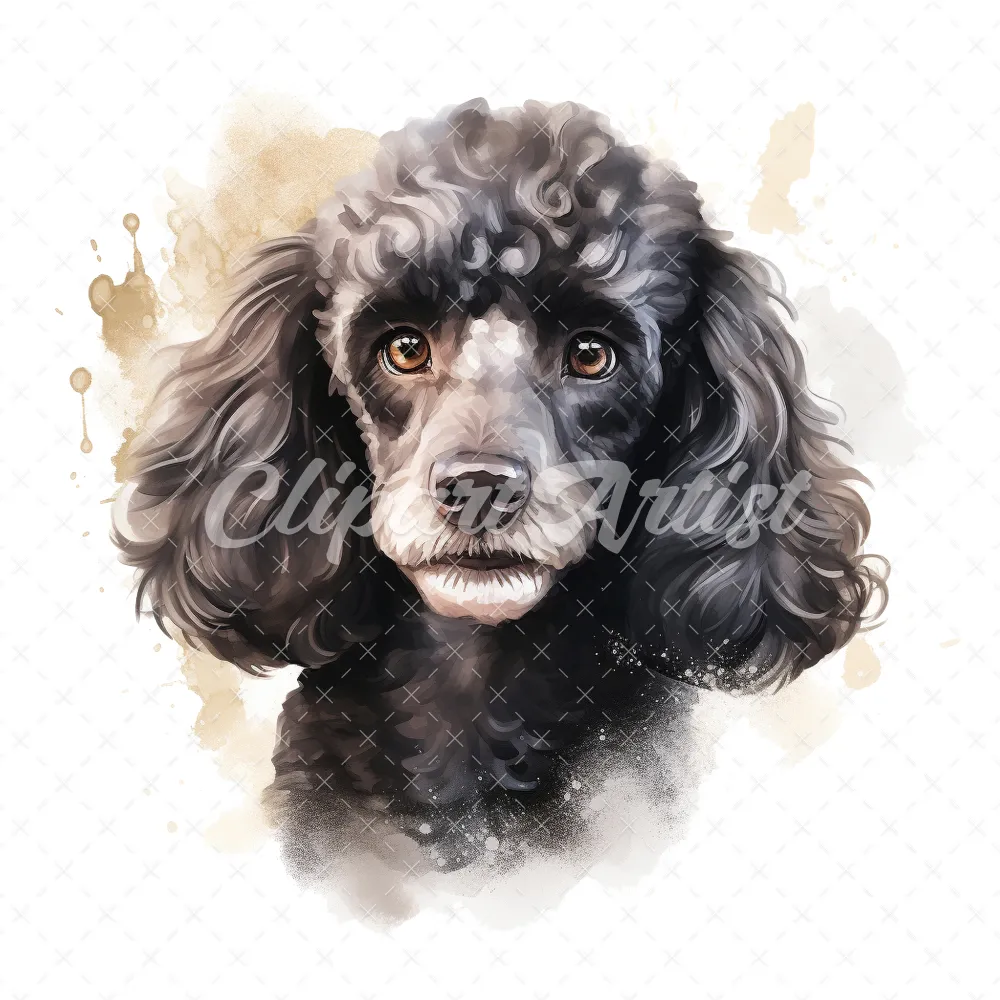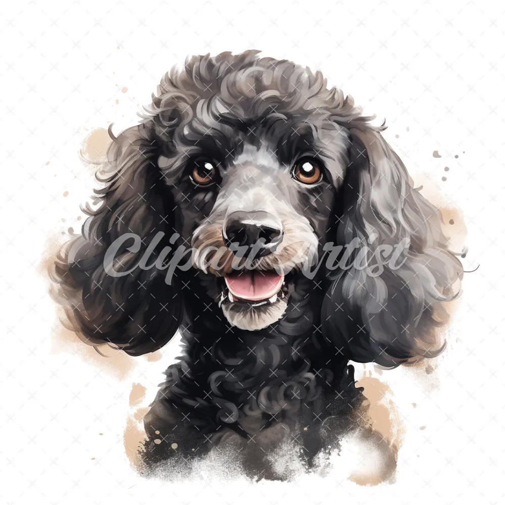 19 High-Quality Poodle Portrait Clipart – Poodle portrait digital watercolor JPG instant download for commercial use – Digital download