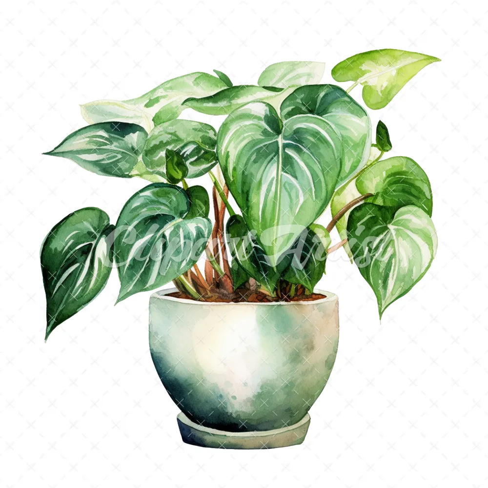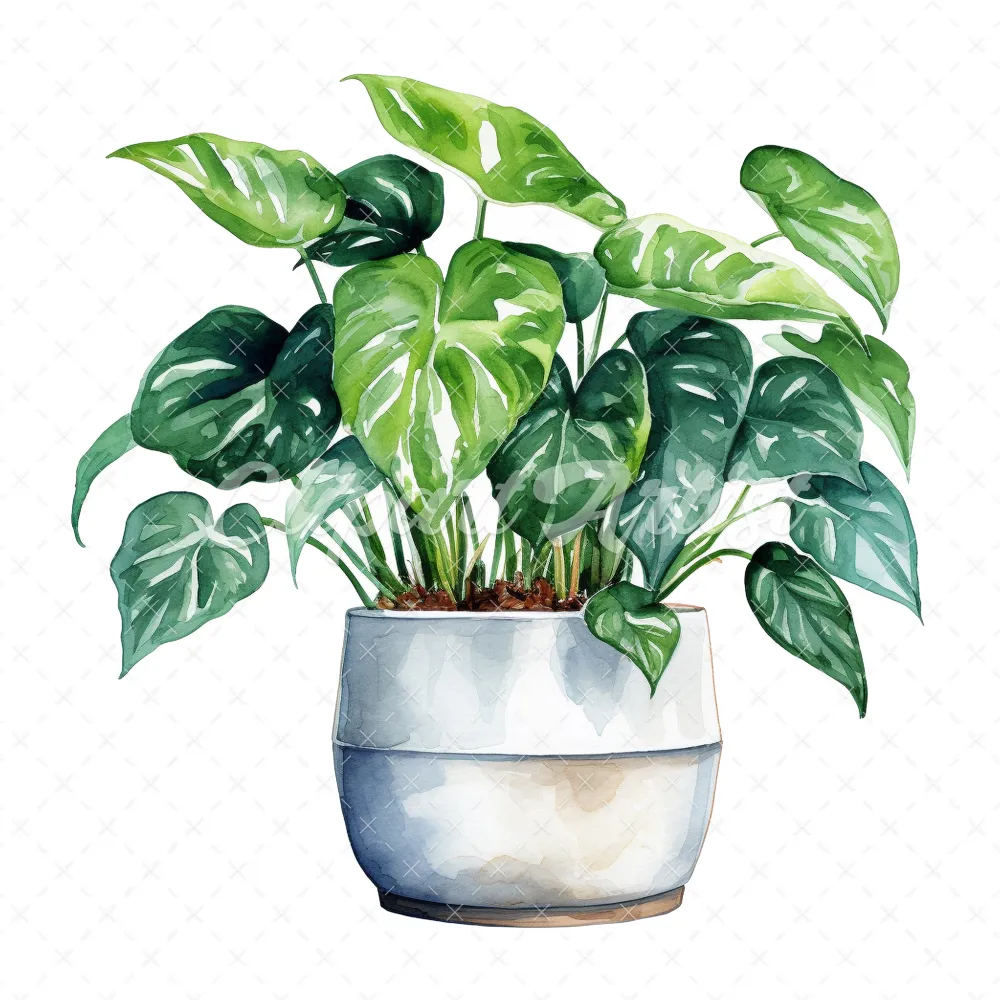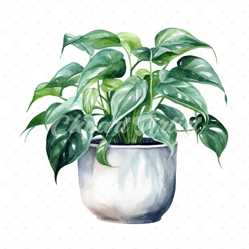 19 High-Quality Pot of Philodendron Clipart – Philodendron digital watercolor JPG instant download for commercial use – Digital download