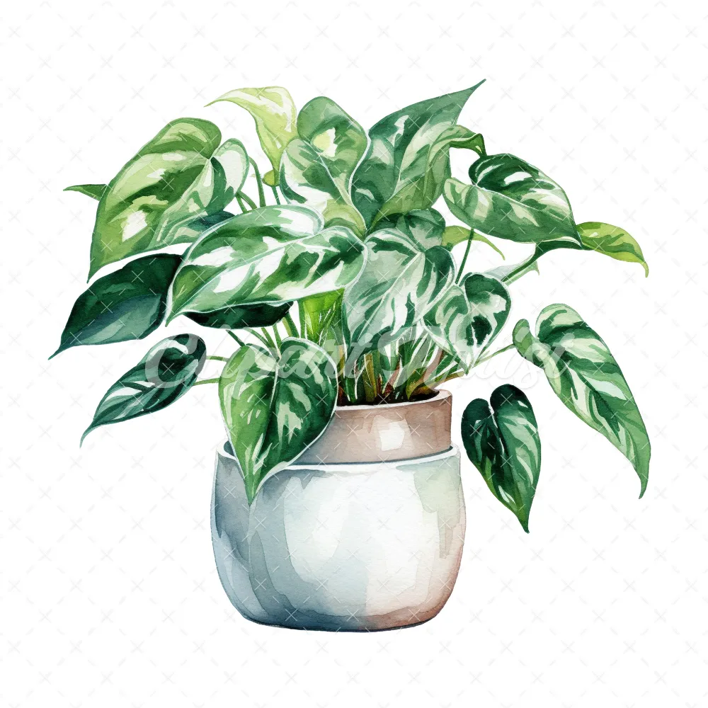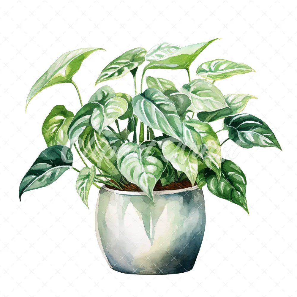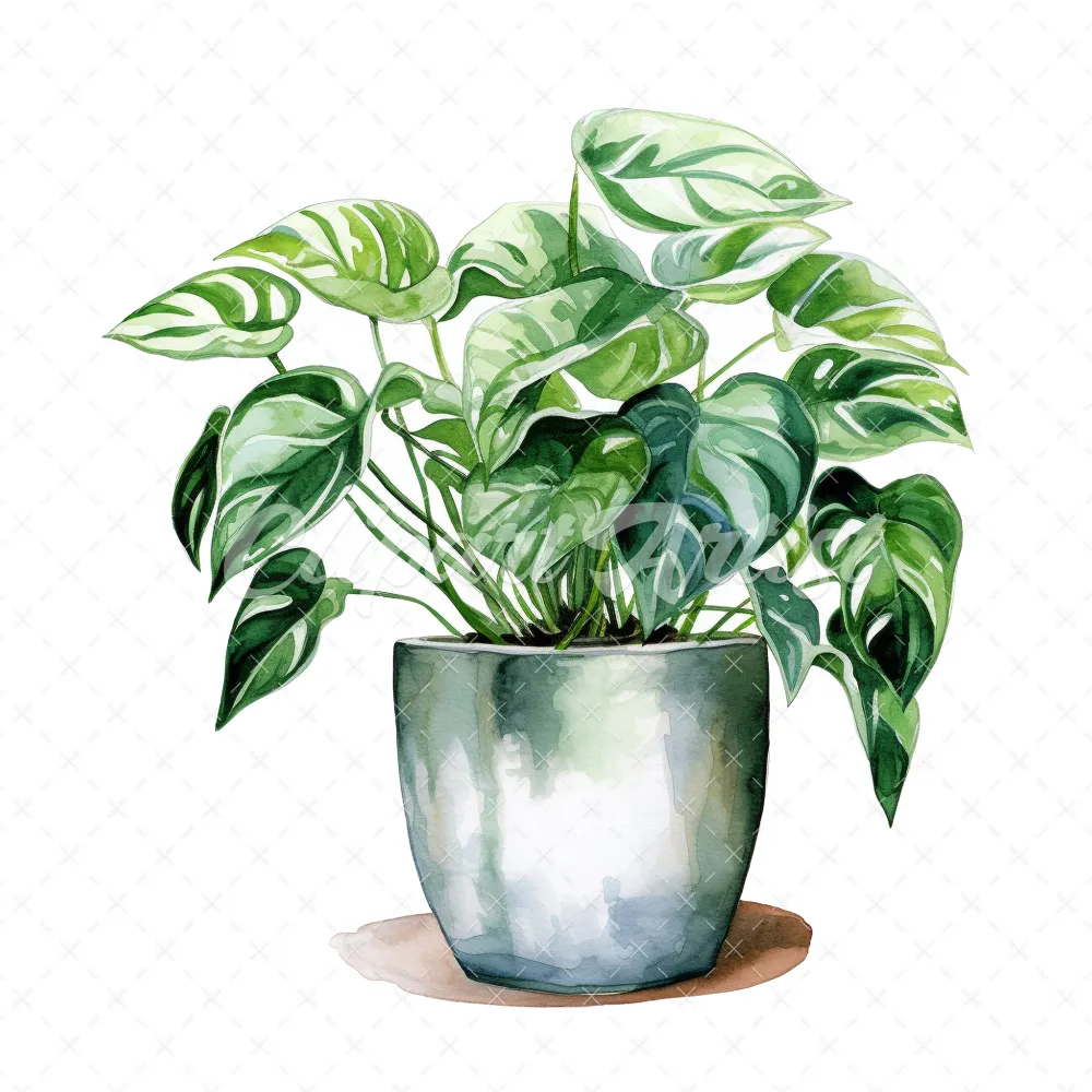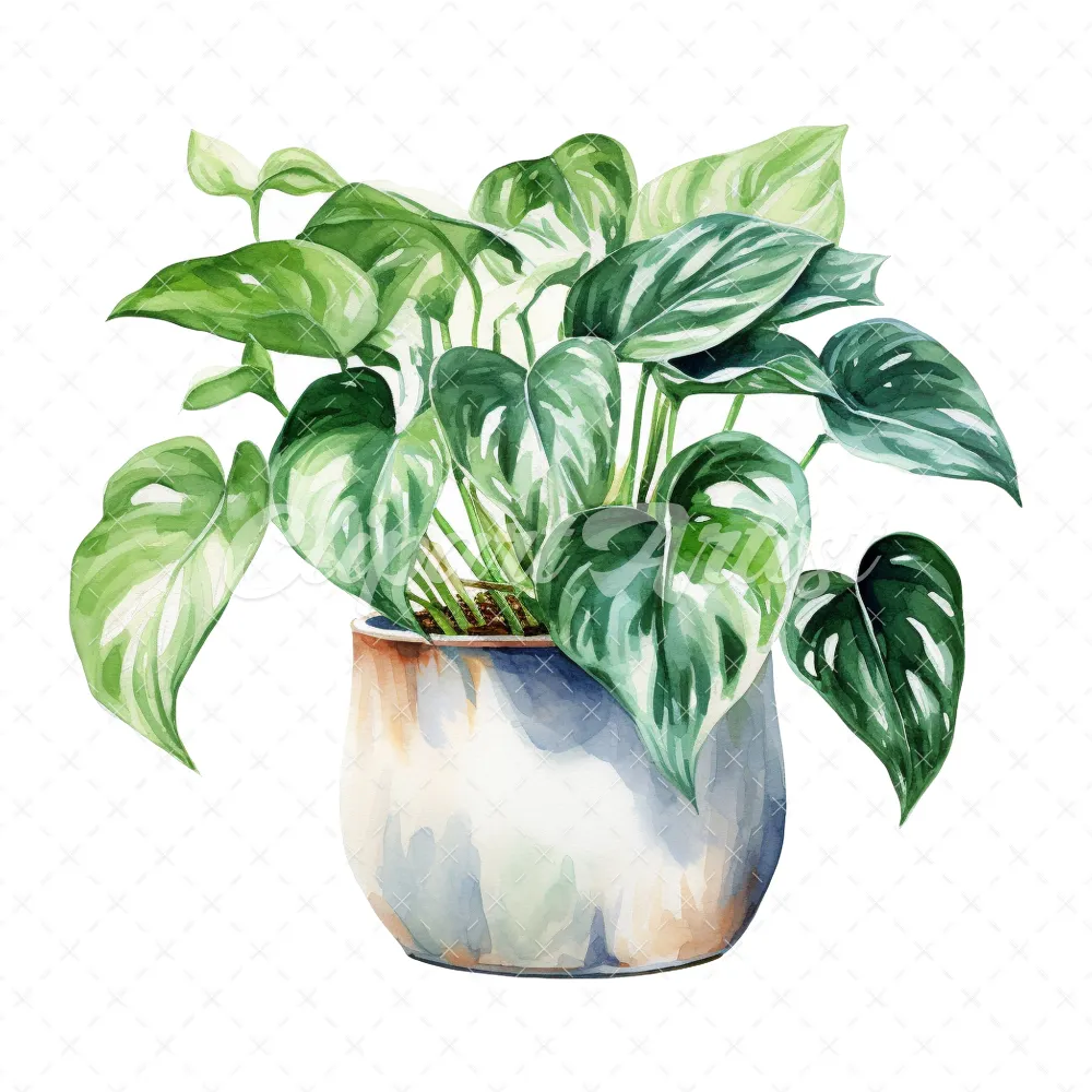 19 High-Quality Pot of Philodendron Clipart – Philodendron digital watercolor JPG instant download for commercial use – Digital download