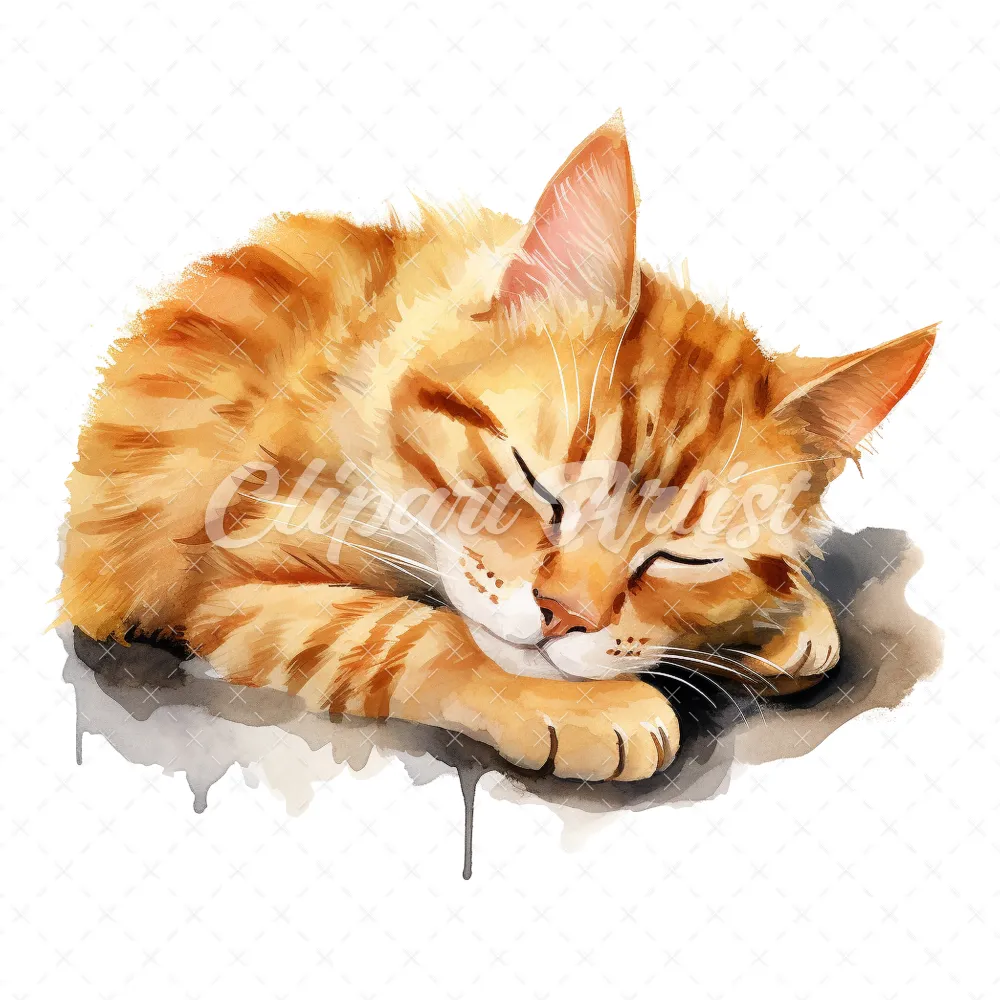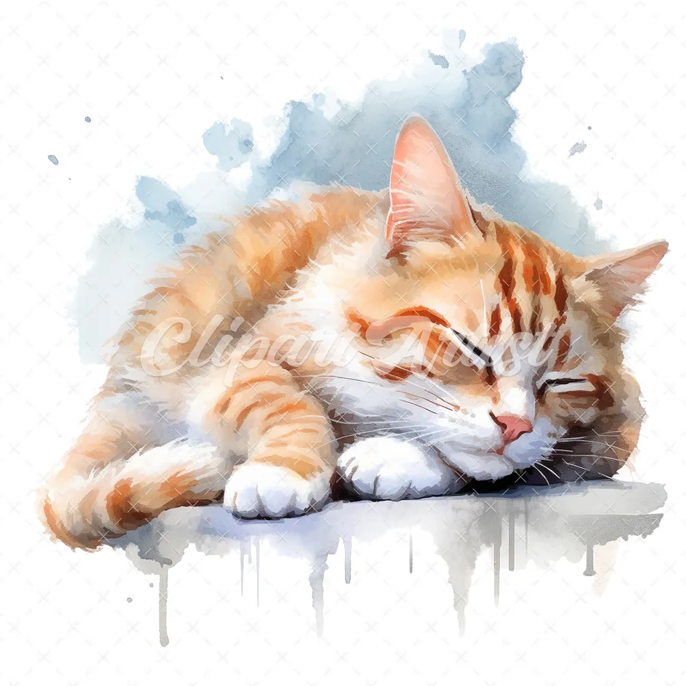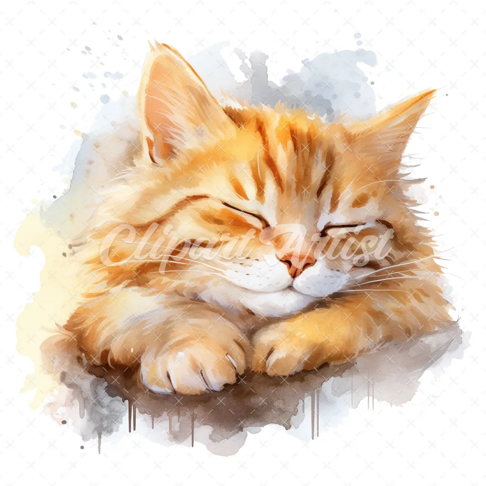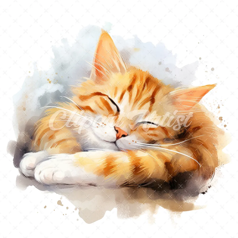 19 High-Quality Sleeping Cat Clipart – Sleeping cat digital watercolor JPG instant download for commercial use – Digital download