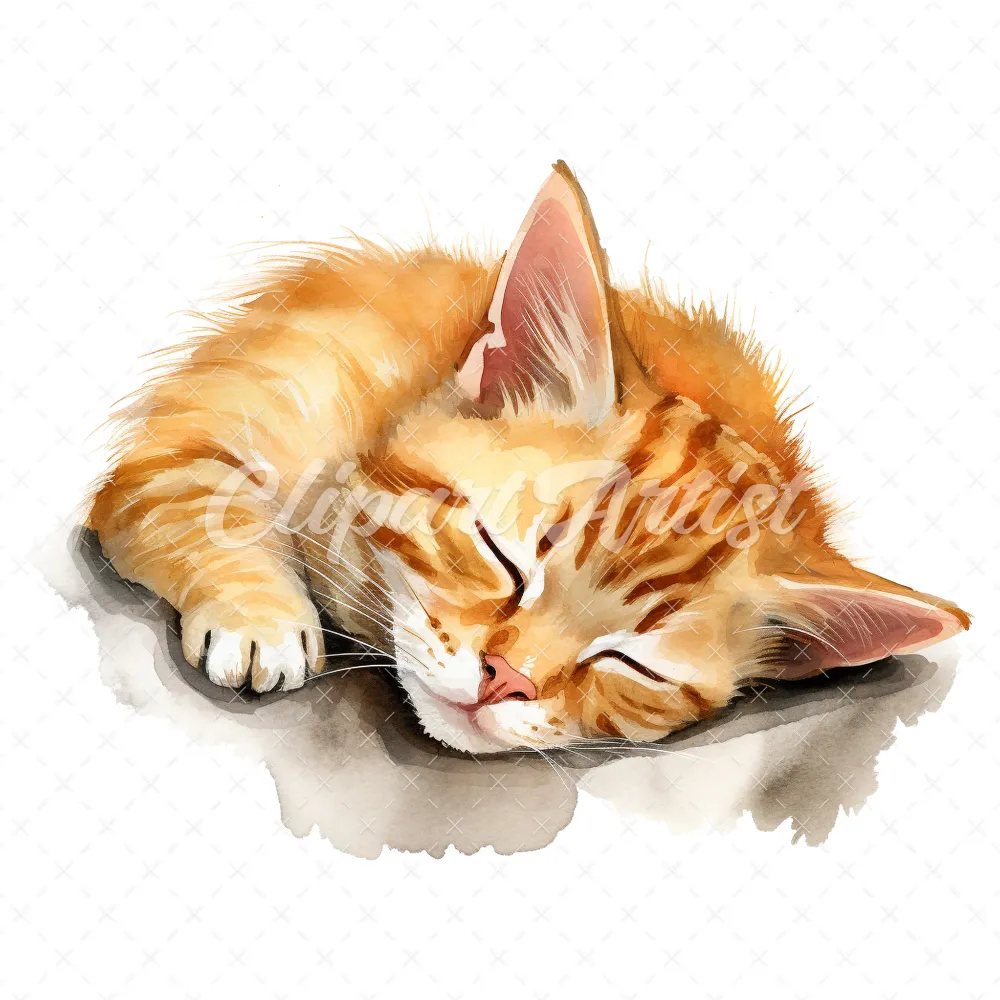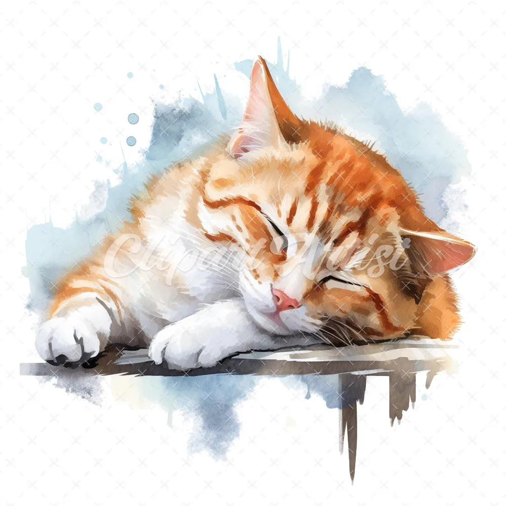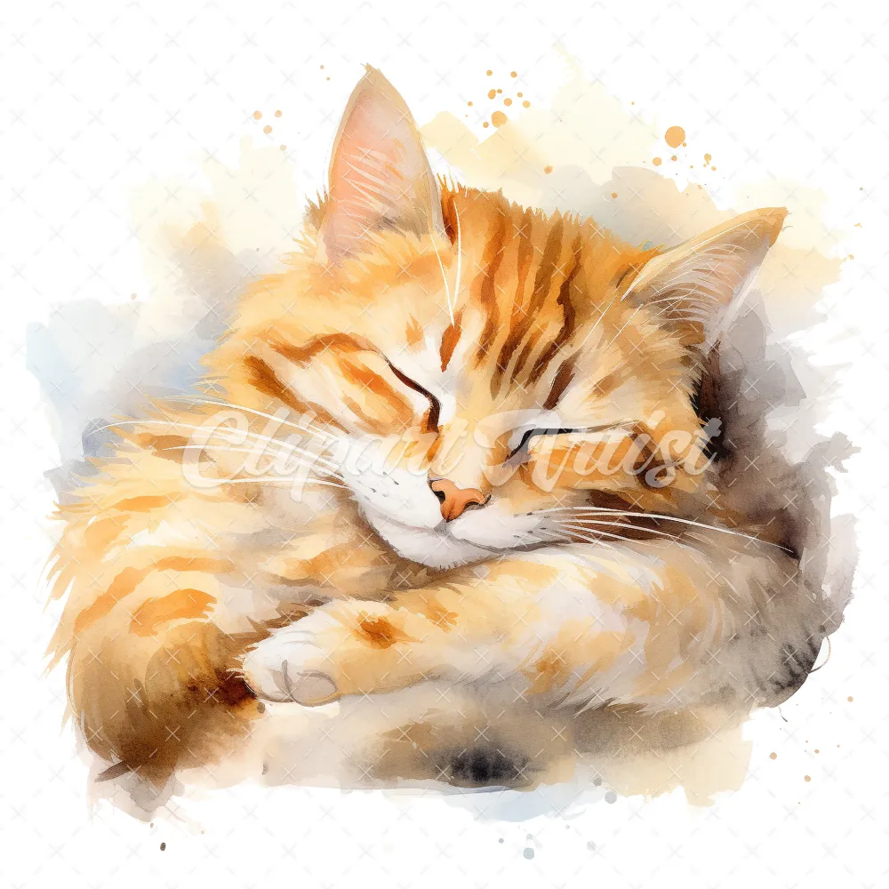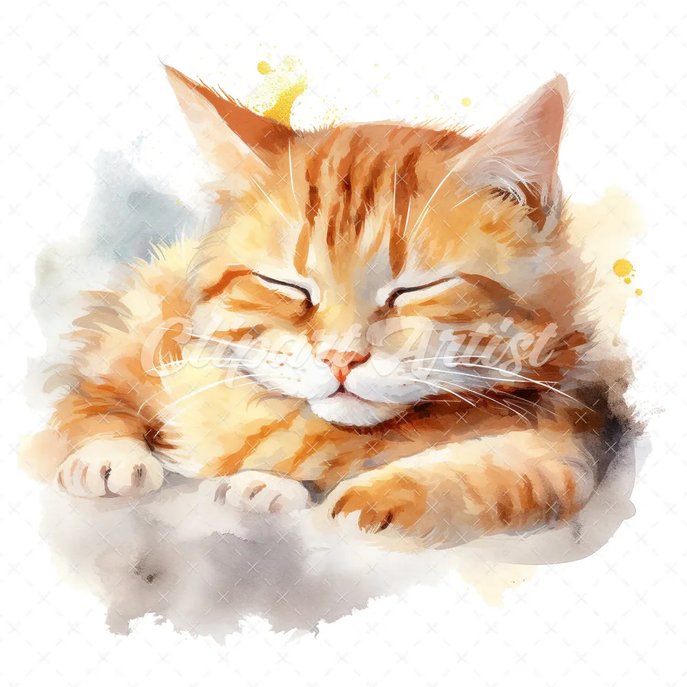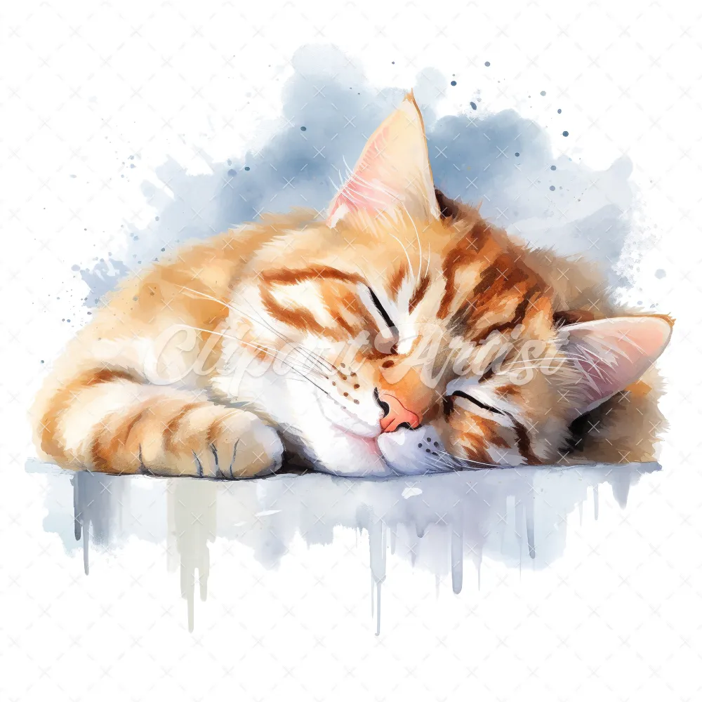 19 High-Quality Sleeping Cat Clipart – Sleeping cat digital watercolor JPG instant download for commercial use – Digital download