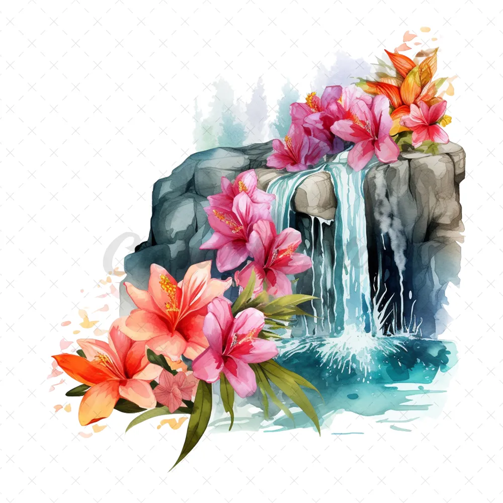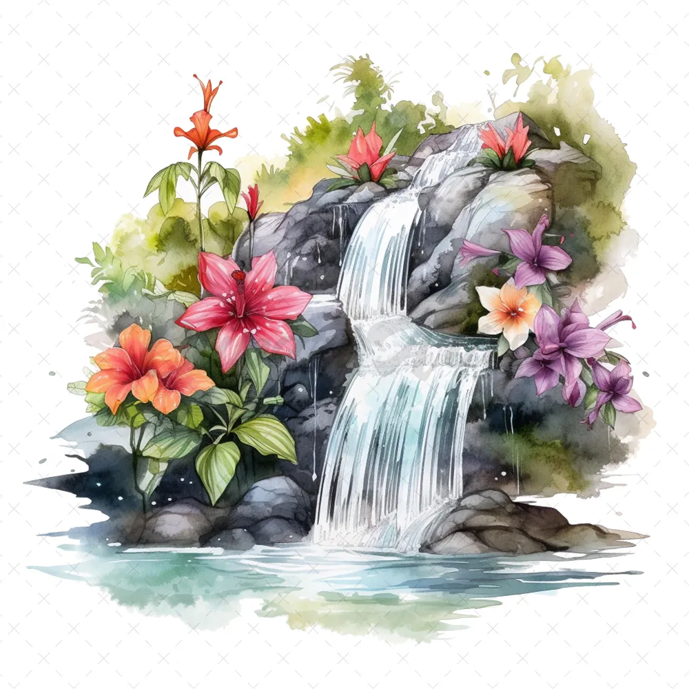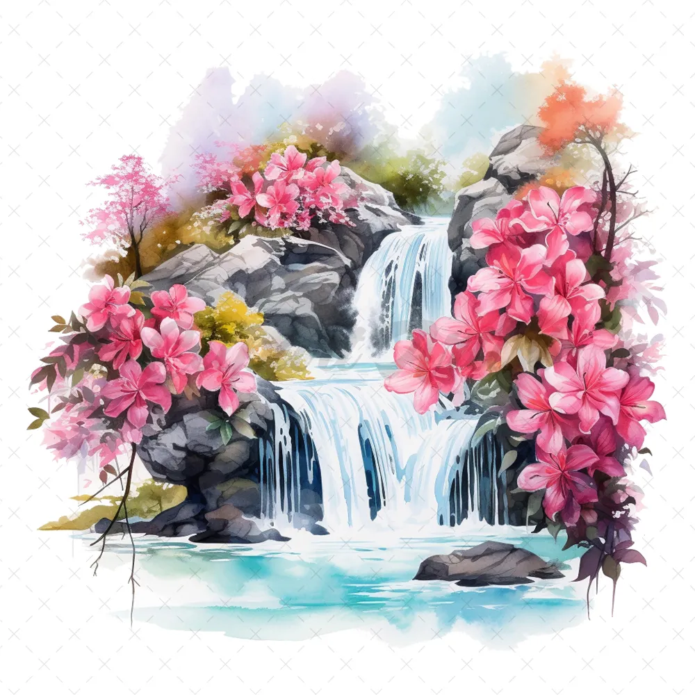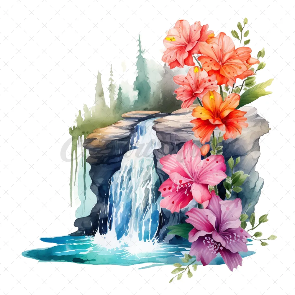 19 High-Quality Spring Waterfalls Clipart – Spring colorful waterfall digital JPG instant download for commercial use – Digital download