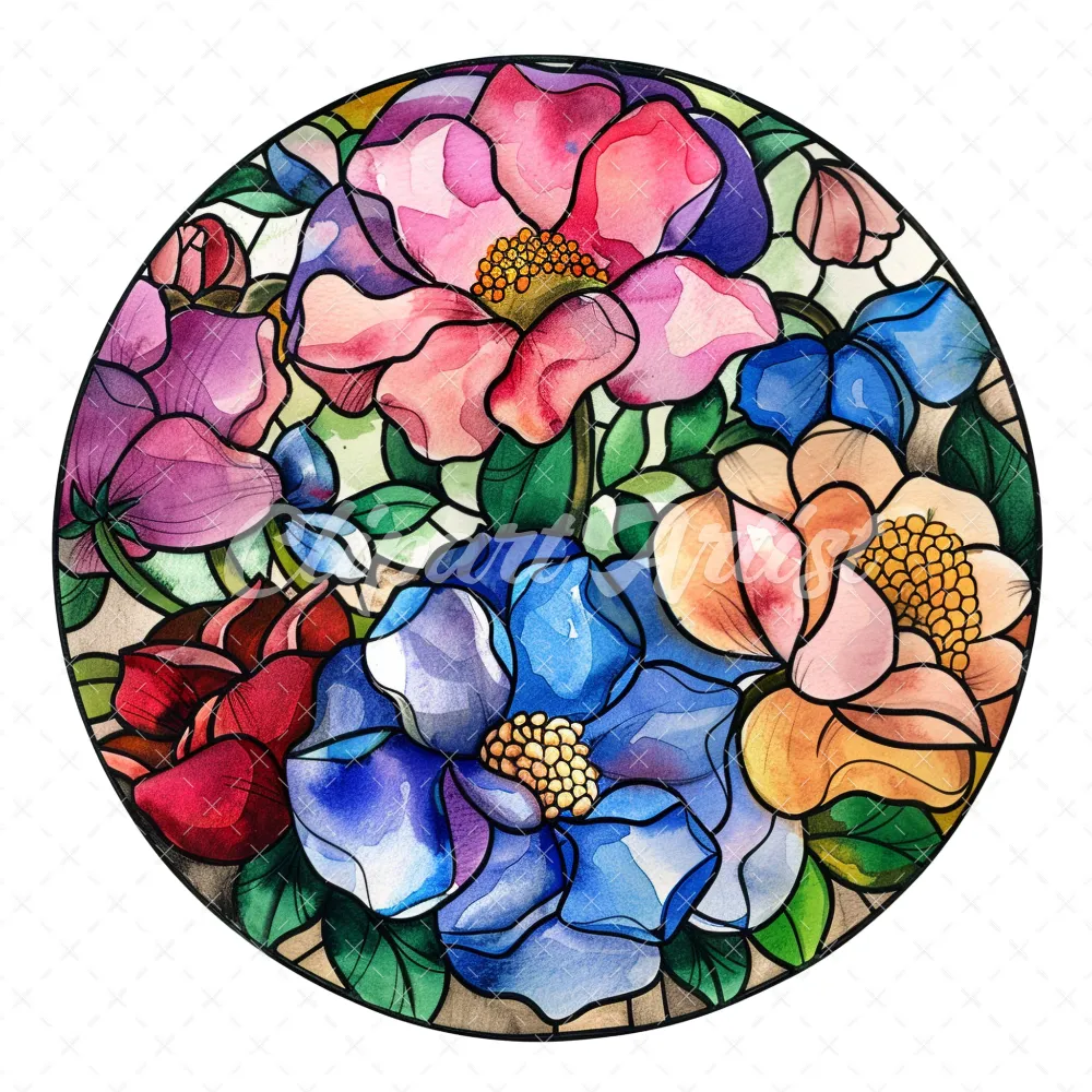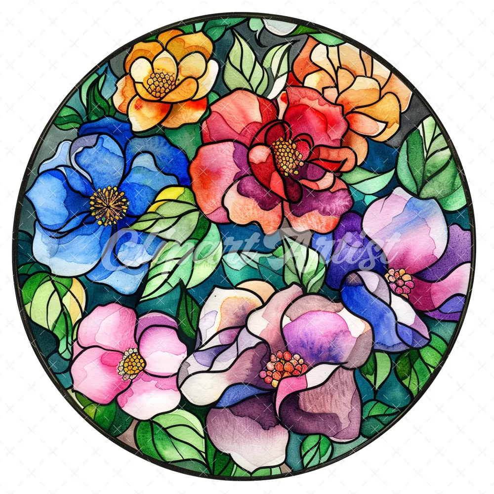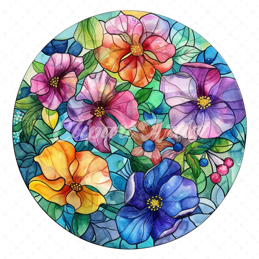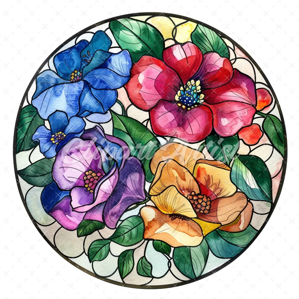 19 High-Quality Stained Glass Flowers Clipart – Stained glass digital watercolor JPG instant download for commercial use – Digital download
