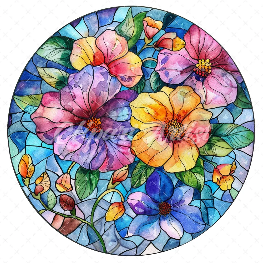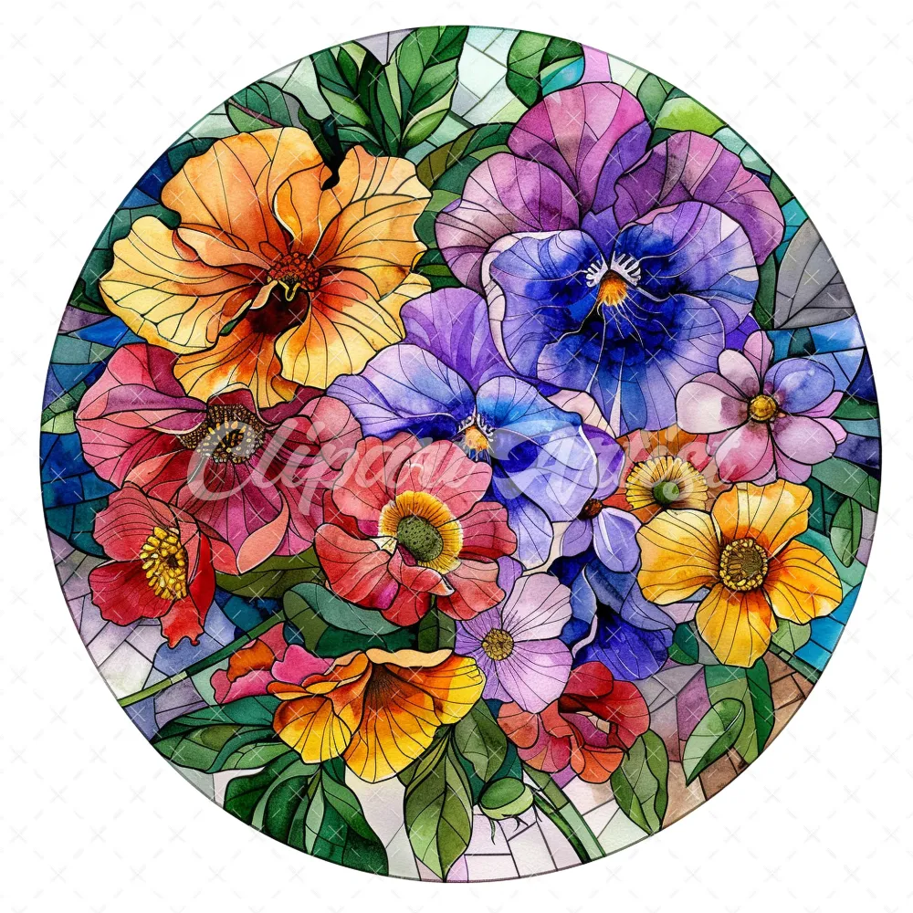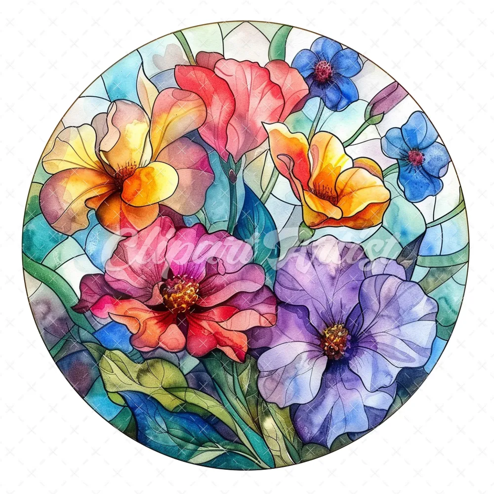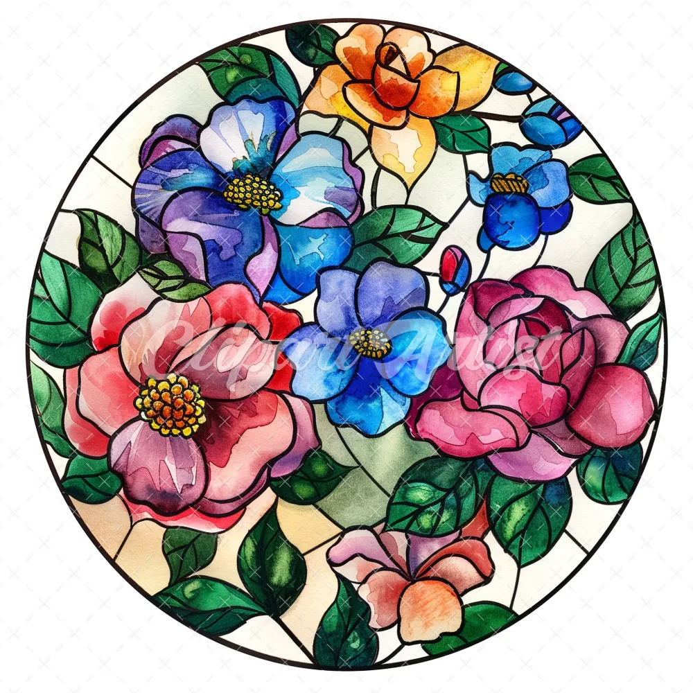 19 High-Quality Stained Glass Flowers Clipart – Stained glass digital watercolor JPG instant download for commercial use – Digital download