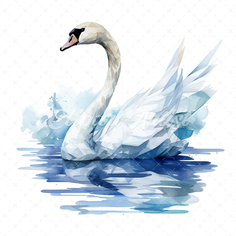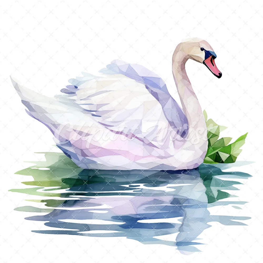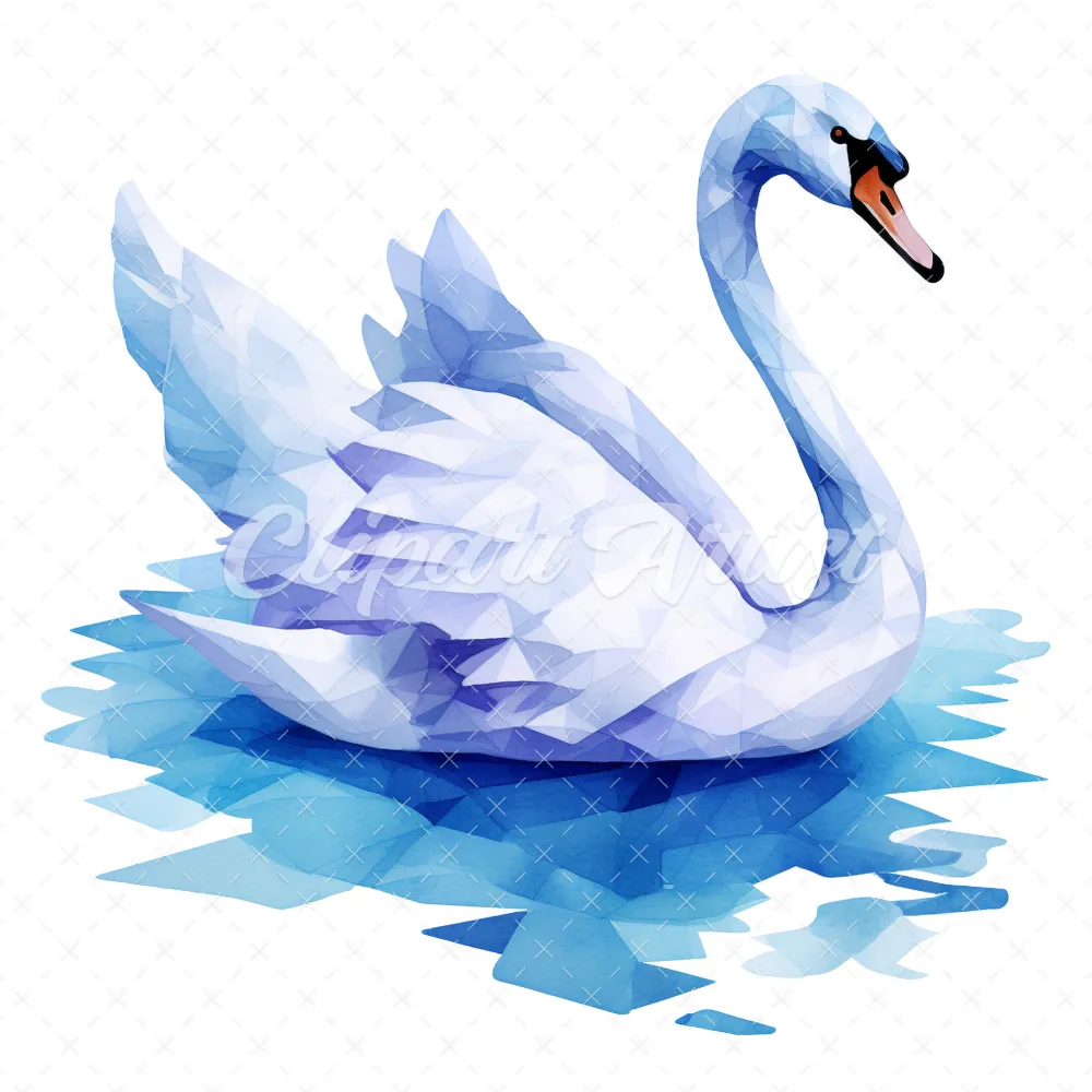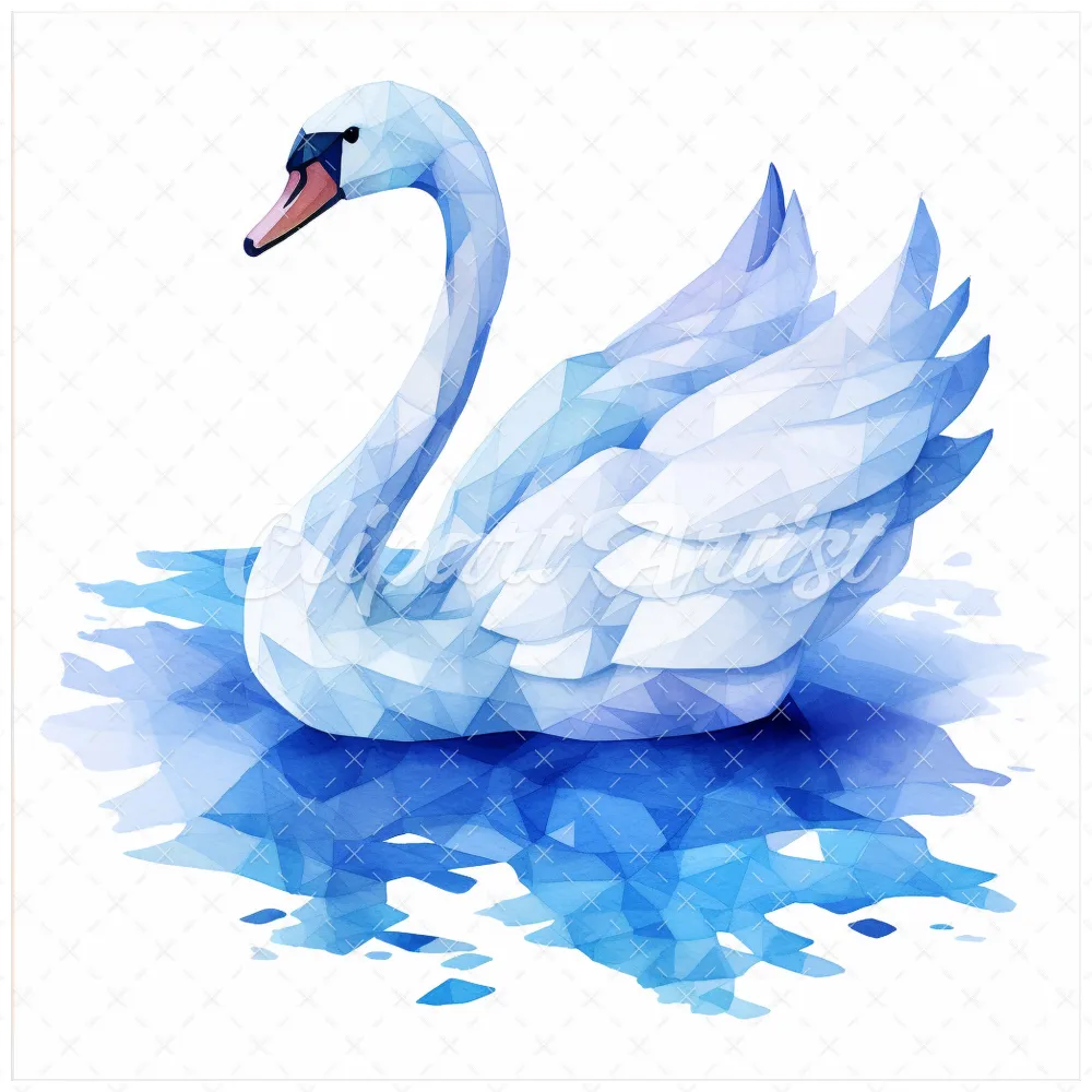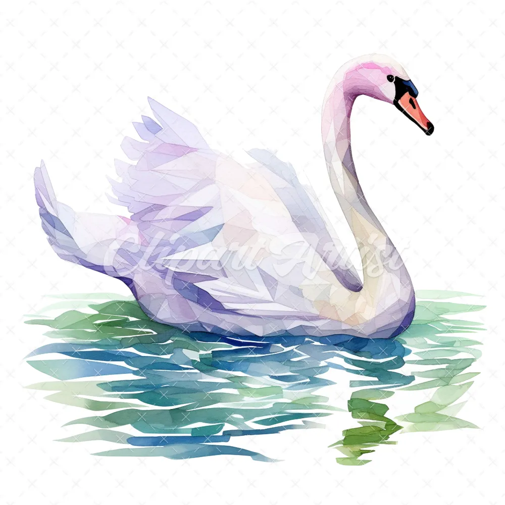 19 High-Quality Swan Origami Clipart – Swan origami digital watercolor JPG instant download for commercial use – Digital download
