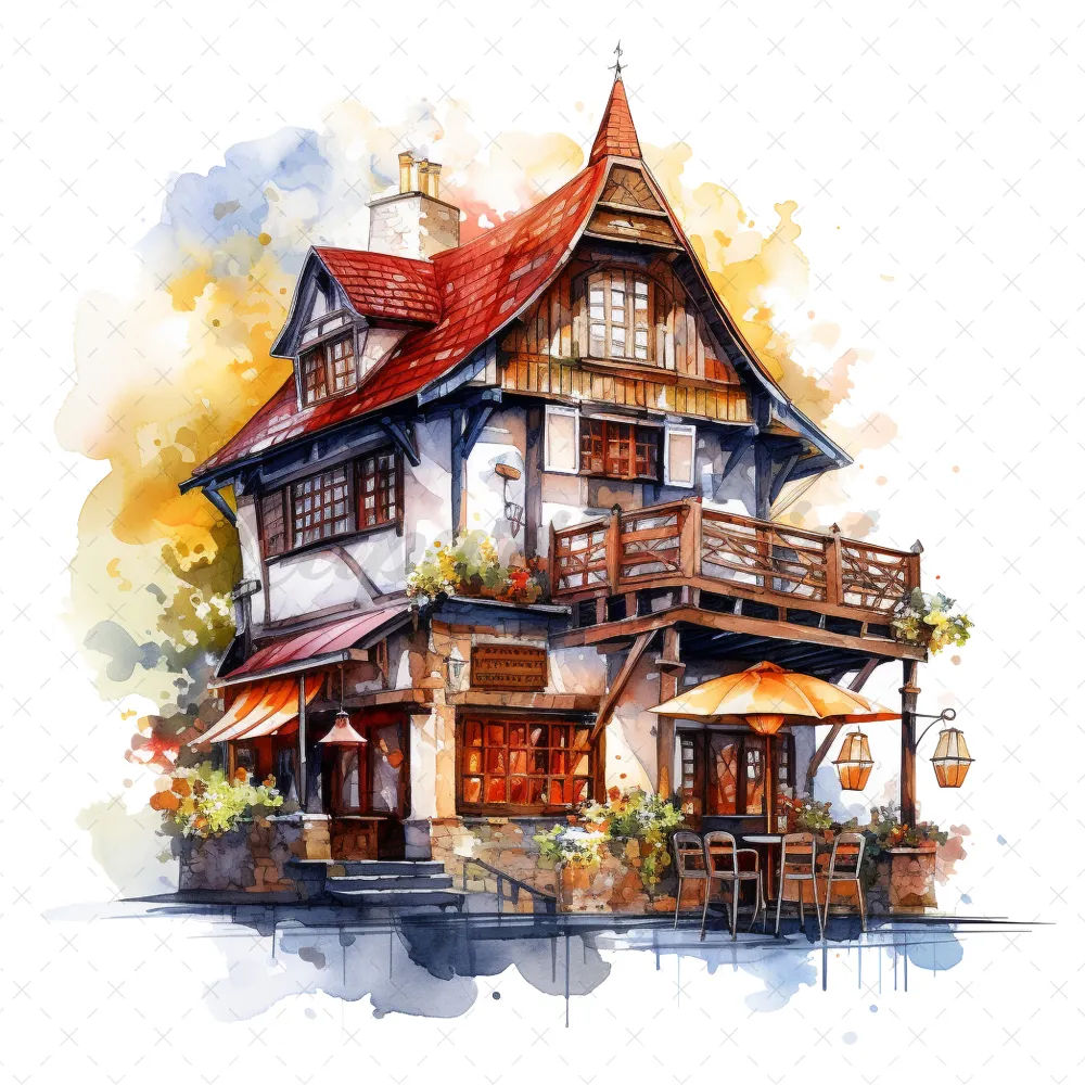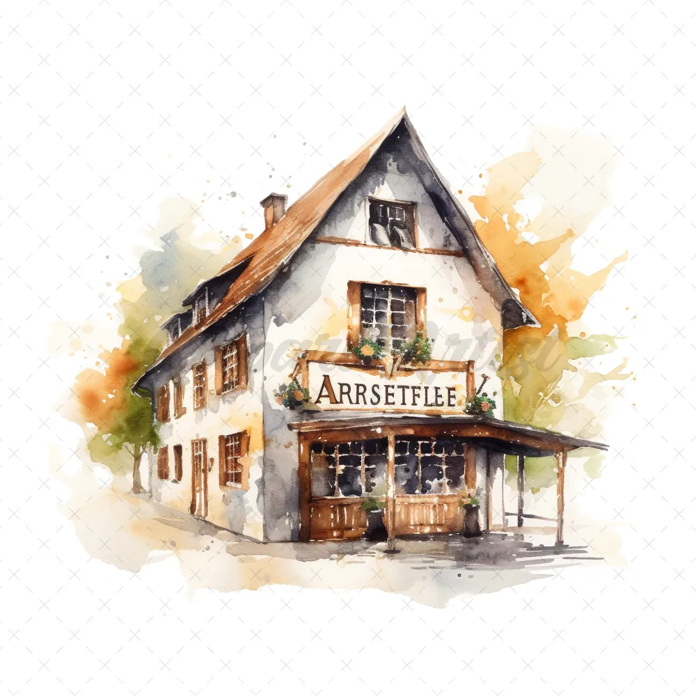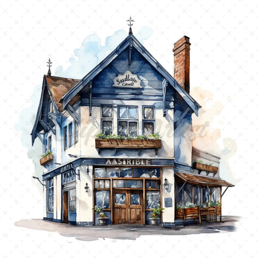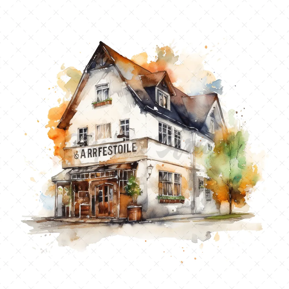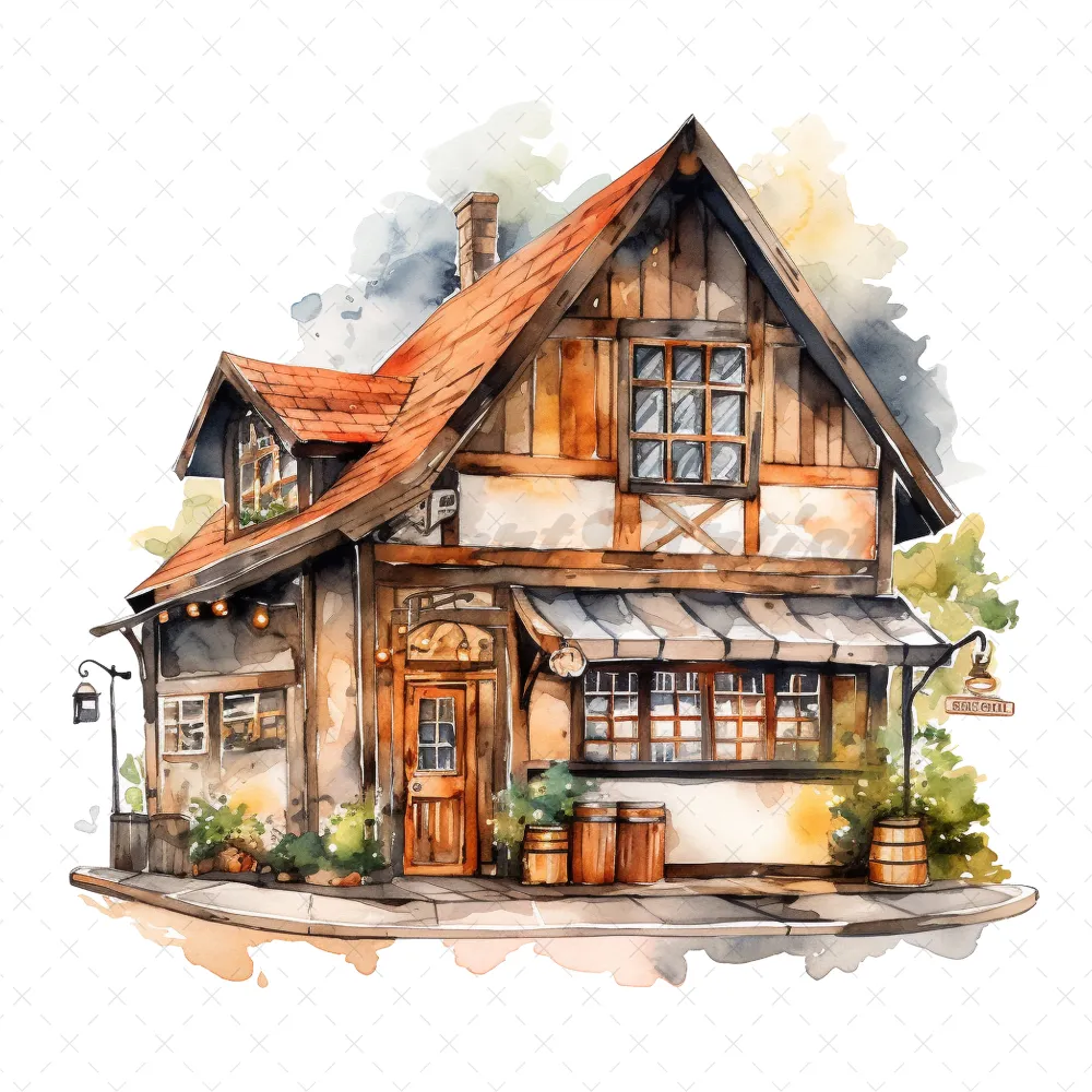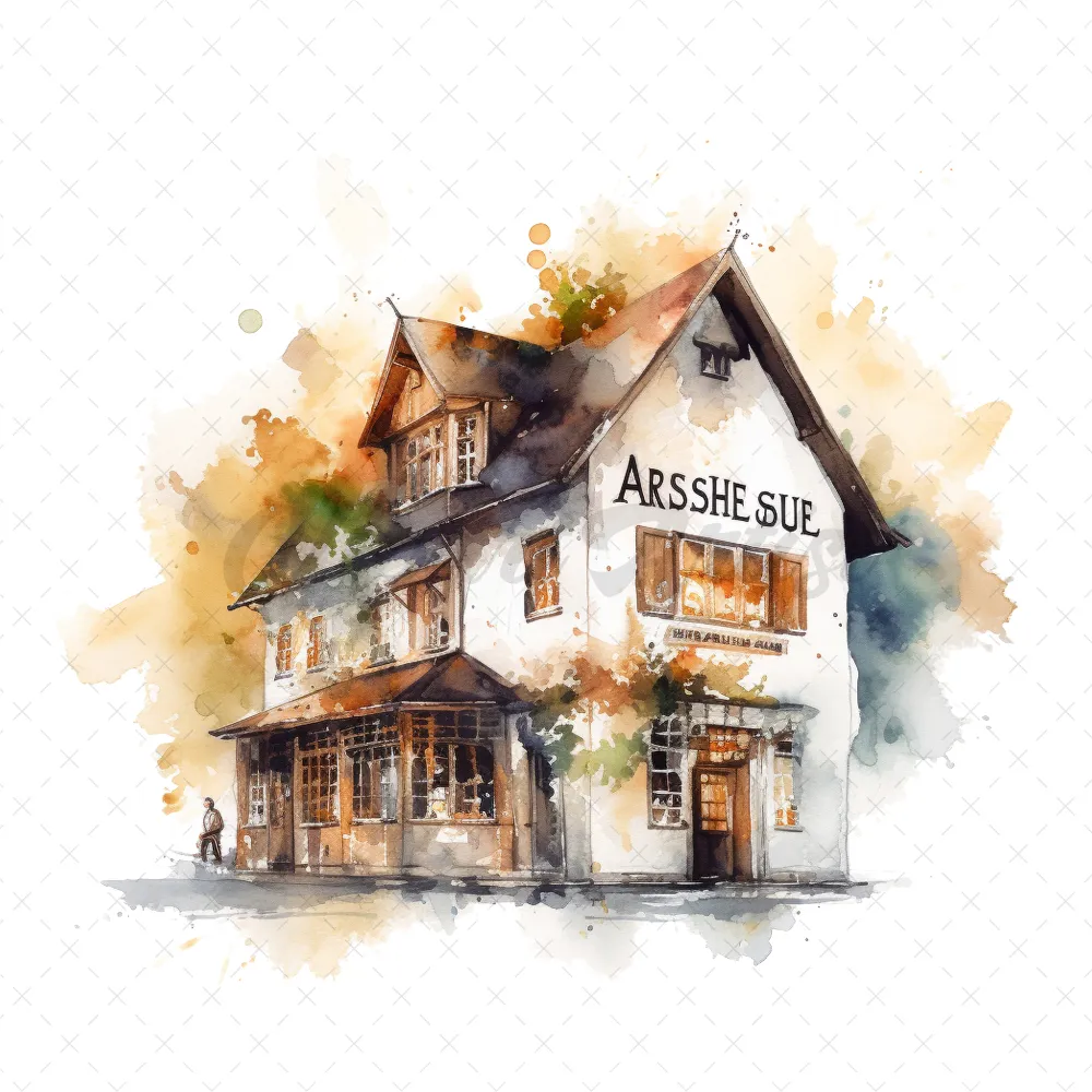 20 High-Quality Alehouse Clipart – Alehouse digital watercolor JPG instant download for commercial use – Digital download