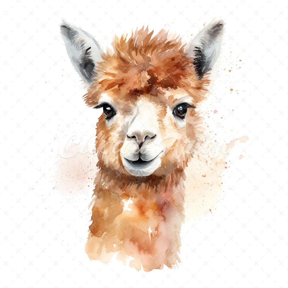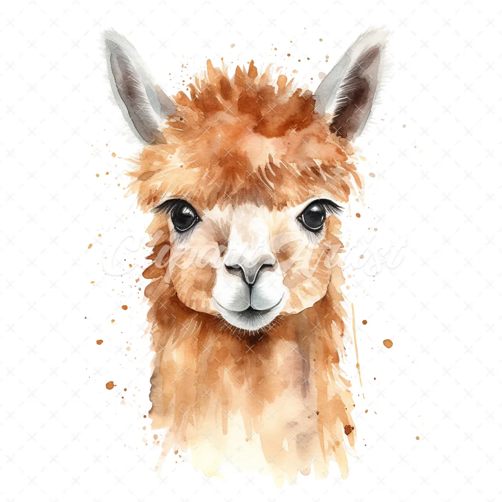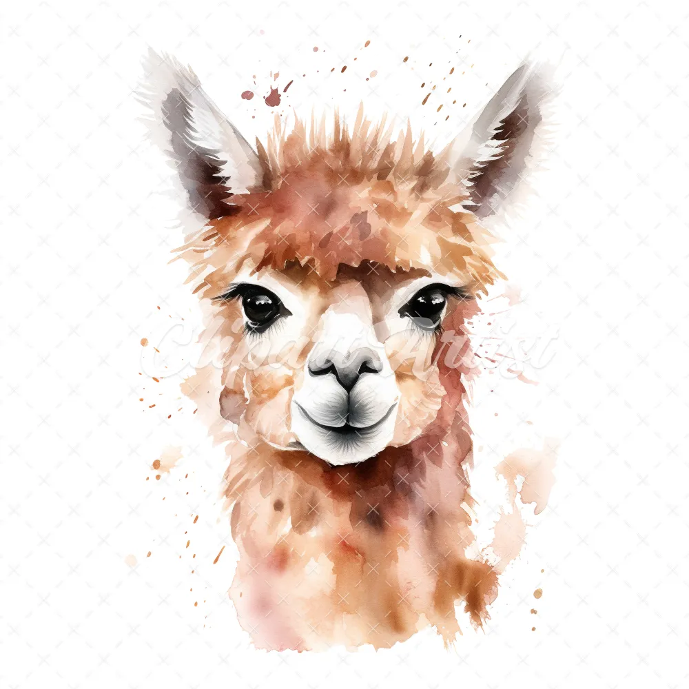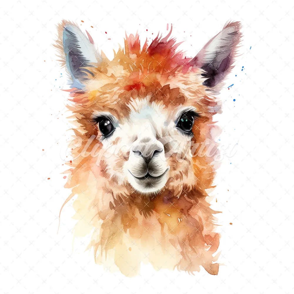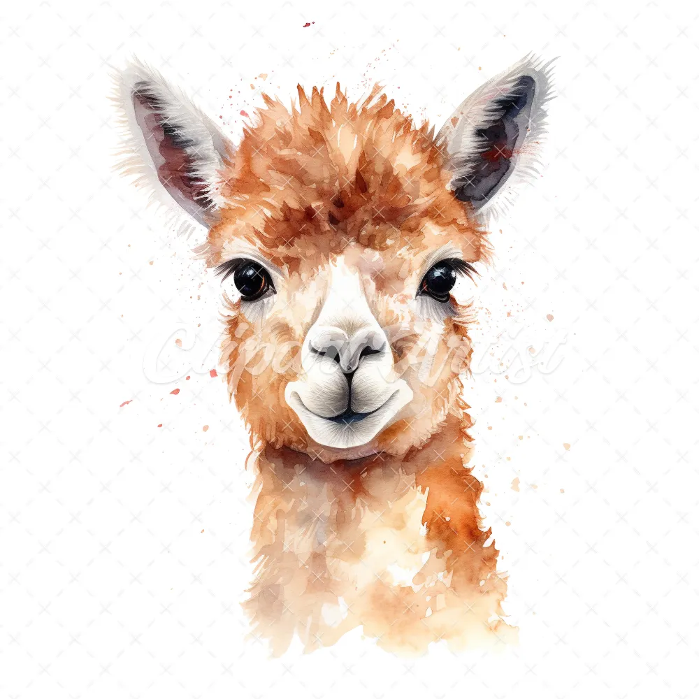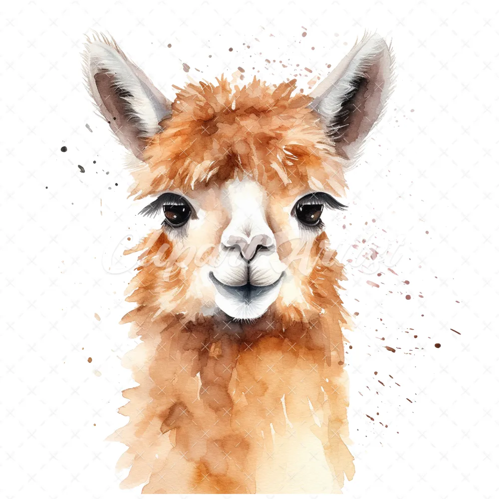 20 High-Quality Alpaca Portrait Clipart – Alpaca digital watercolor JPG instant download for commercial use – Digital download