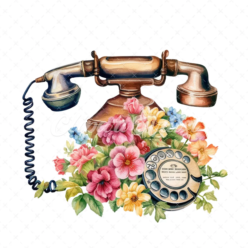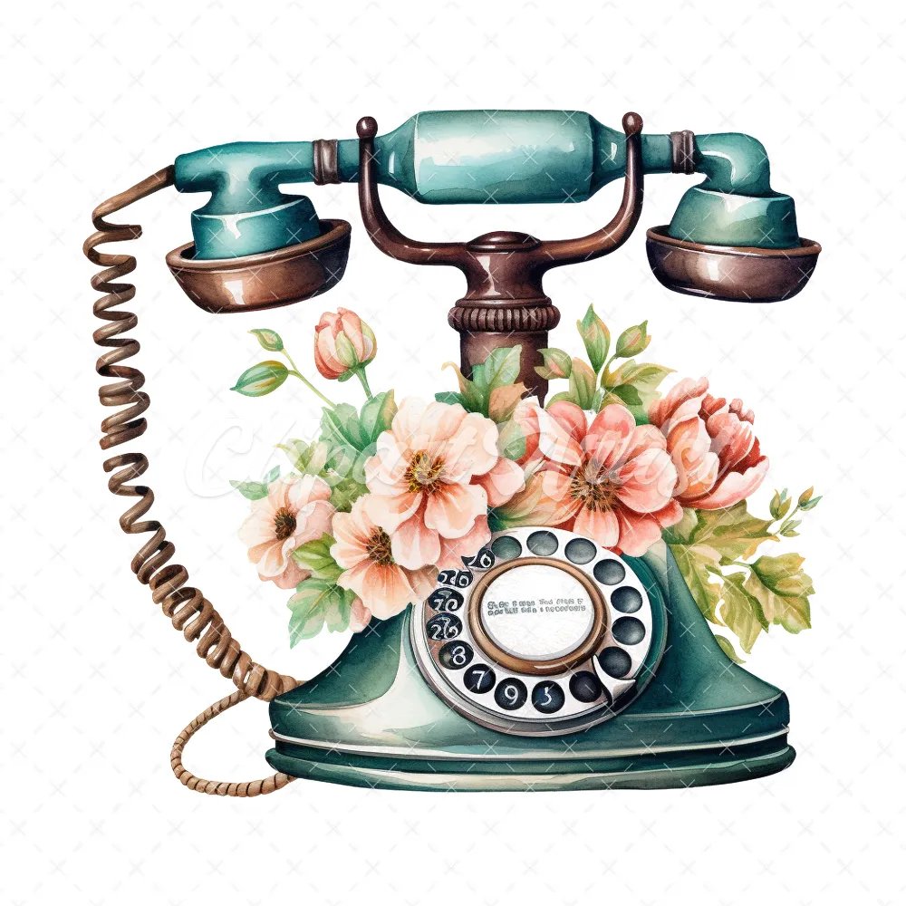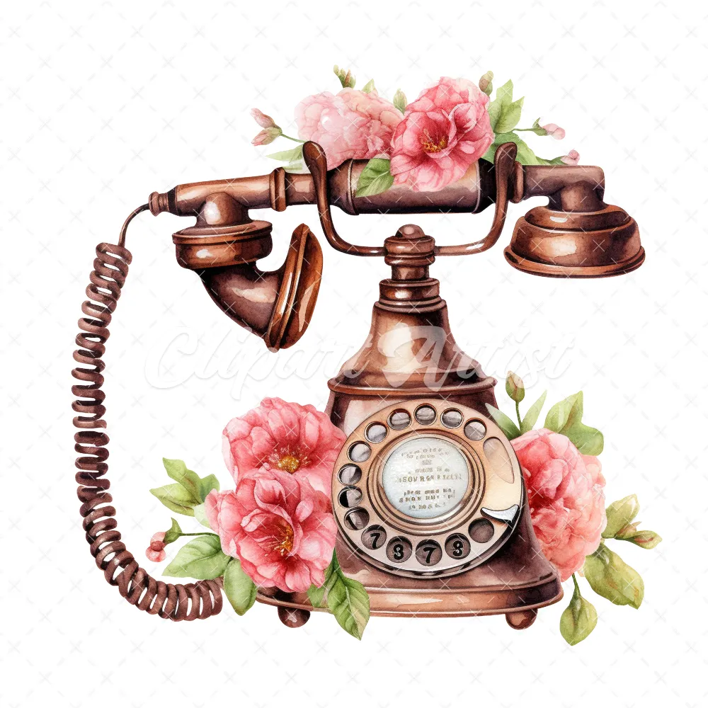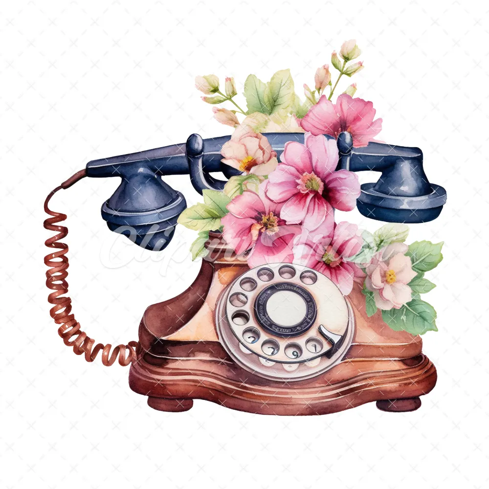 20 High-Quality Antique Floral Telephones Clipart – Telephone digital watercolor JPG instant download for commercial use – Digital download