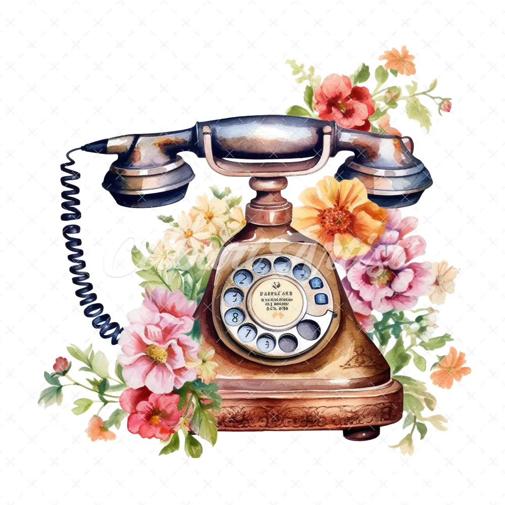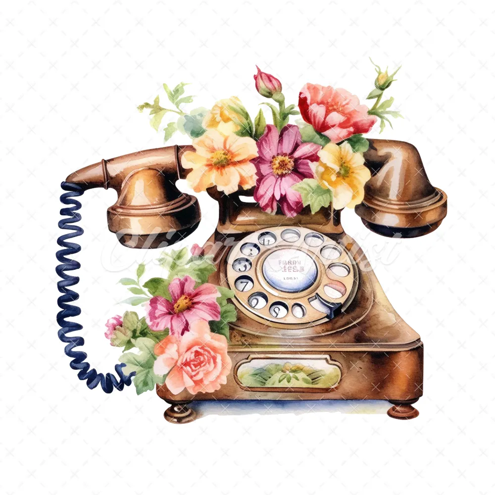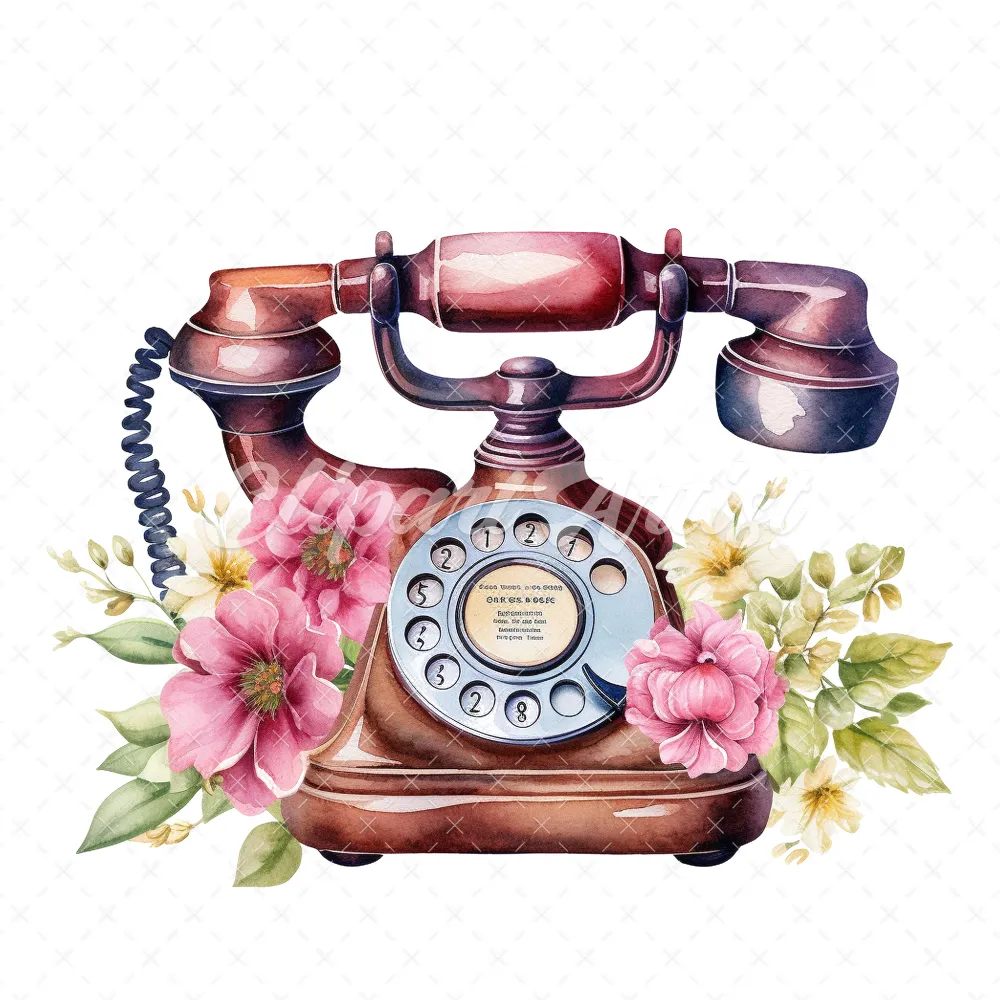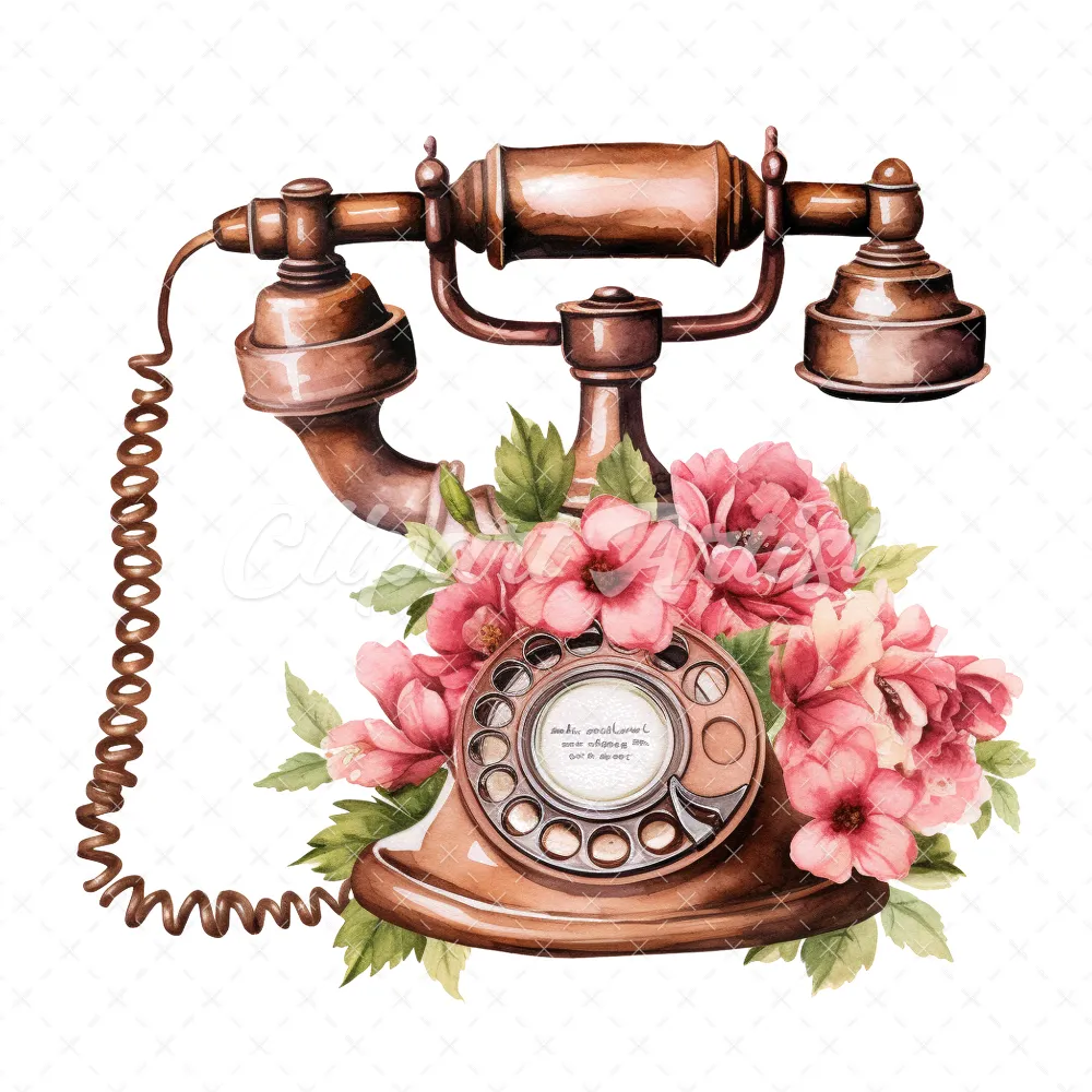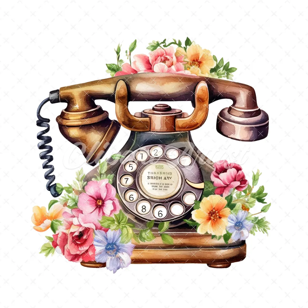 20 High-Quality Antique Floral Telephones Clipart – Telephone digital watercolor JPG instant download for commercial use – Digital download