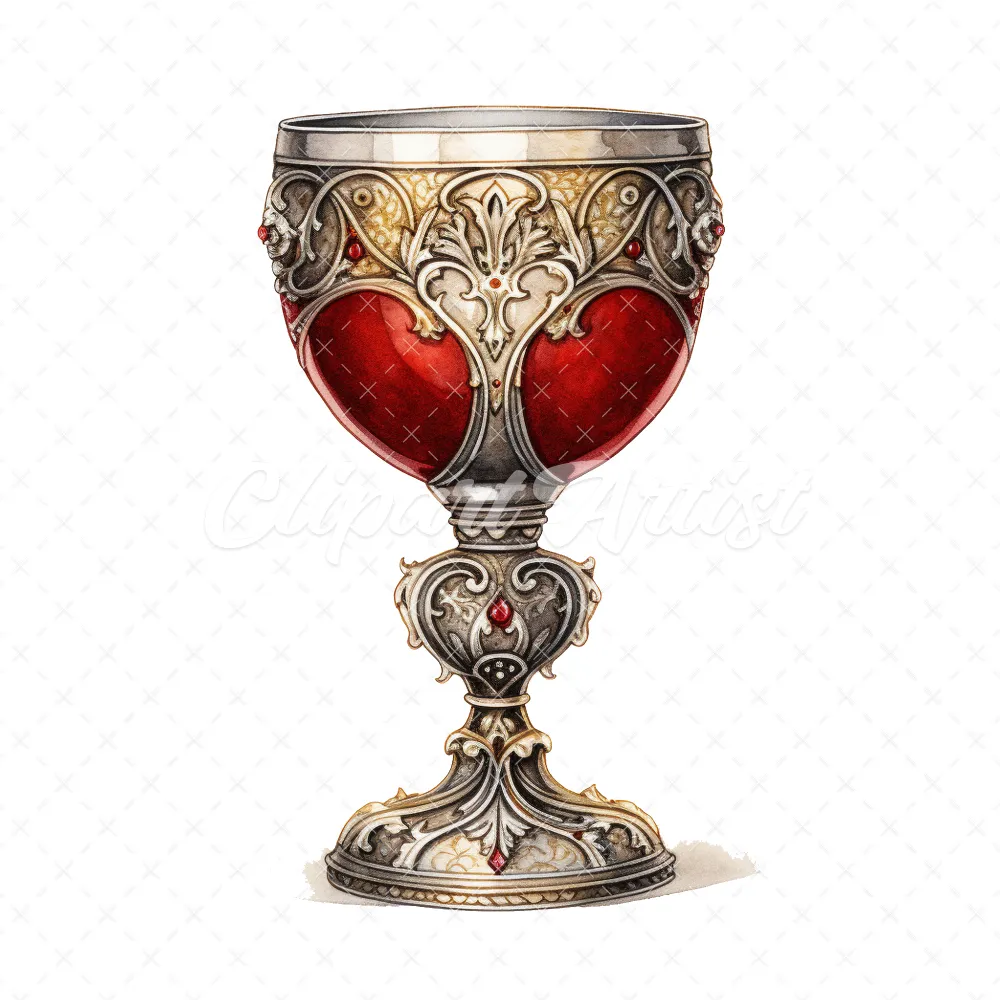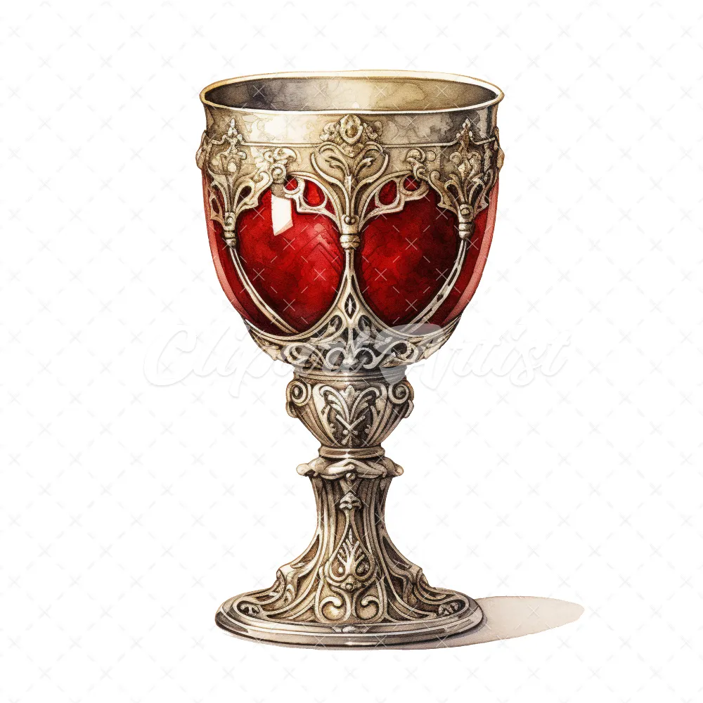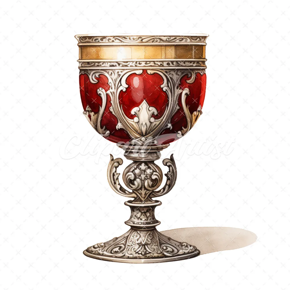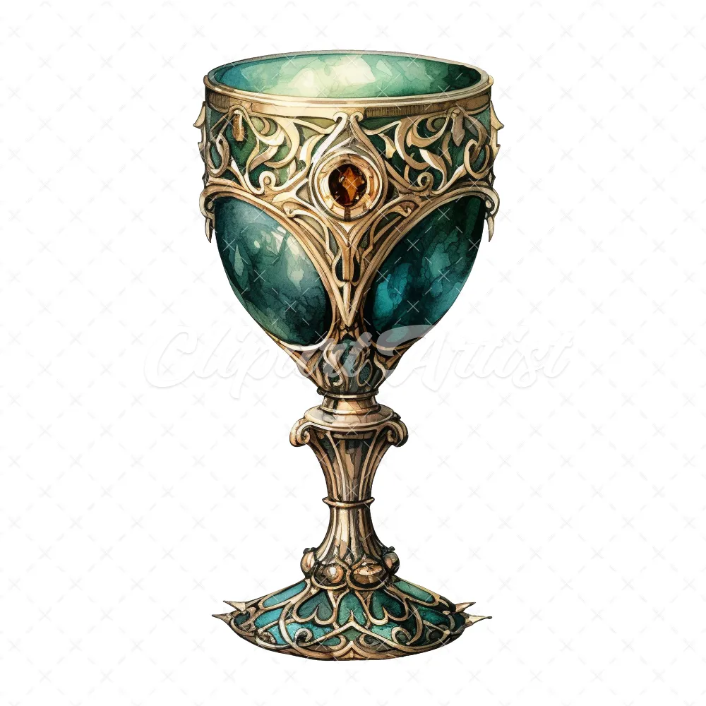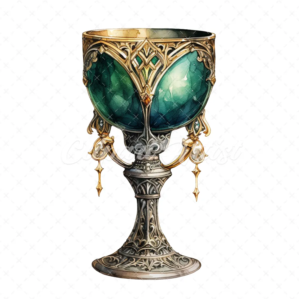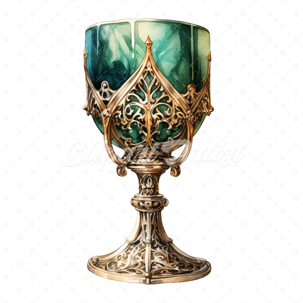 20 High-Quality Antique Goblet Clipart – Antique goblet digital watercolor JPG instant download for commercial use – Digital download