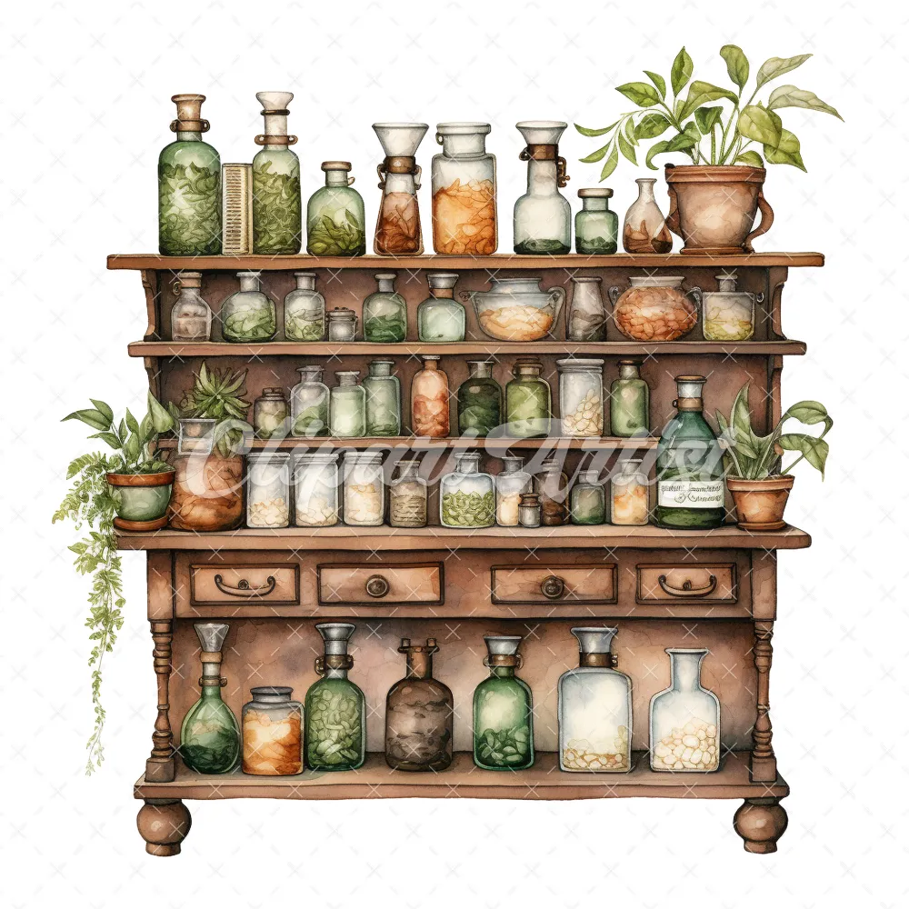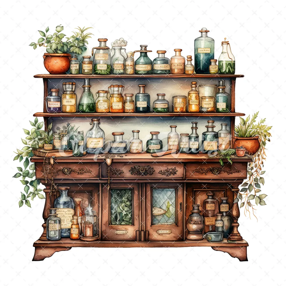 20 High-Quality Apothecary Cabinets Clipart – Apothecary digital watercolor JPG instant download for commercial use – Digital download
