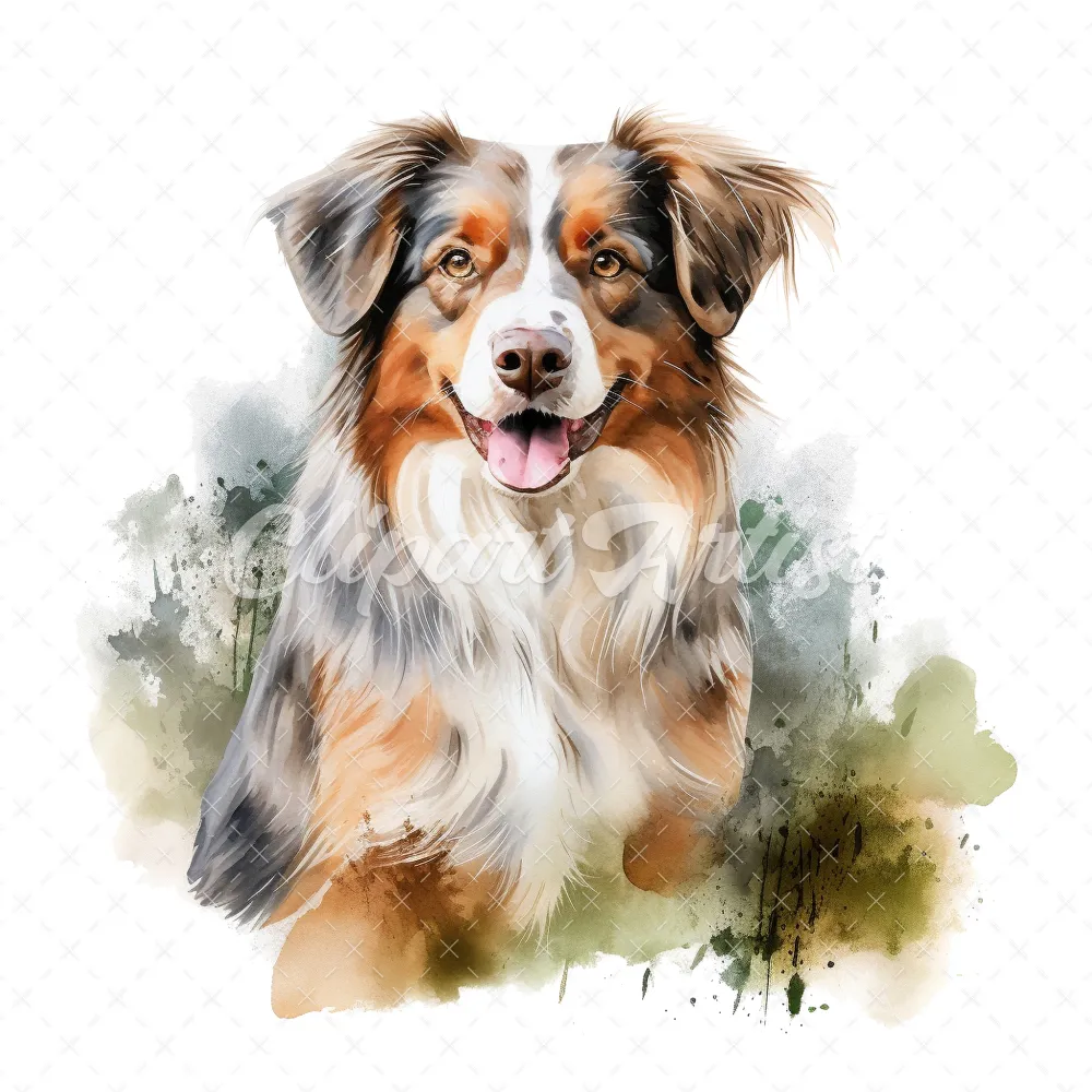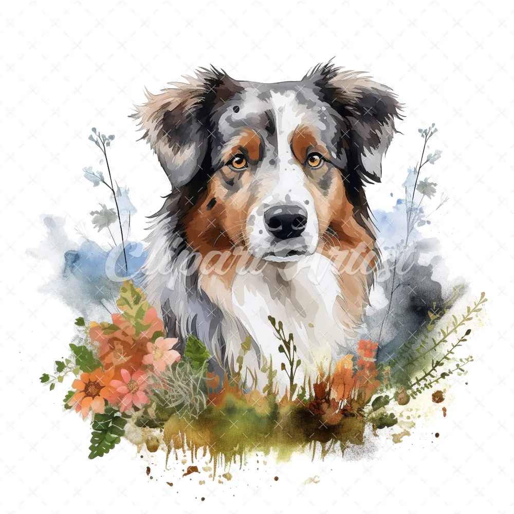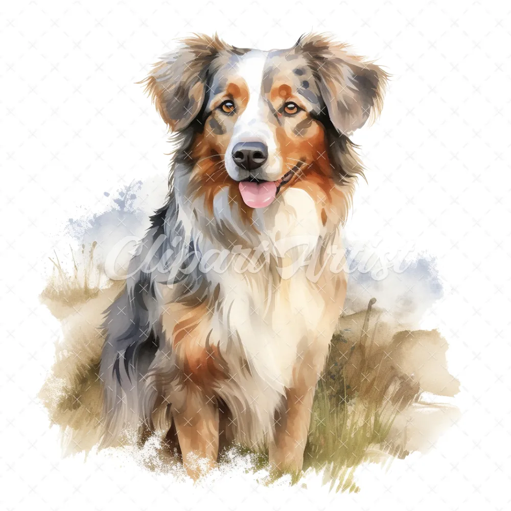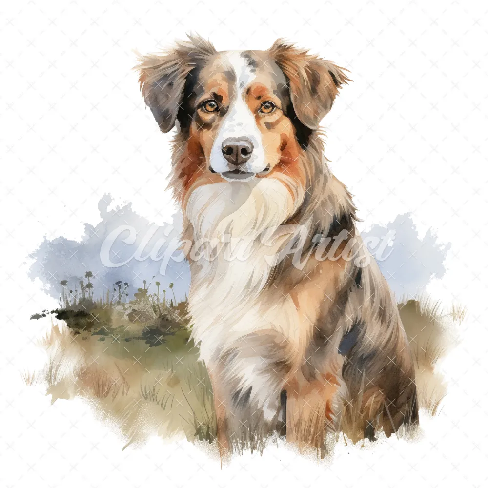 20 High-Quality Australian Shepherd Clipart – Shepherd dog digital watercolor JPG instant download for commercial use – Digital download