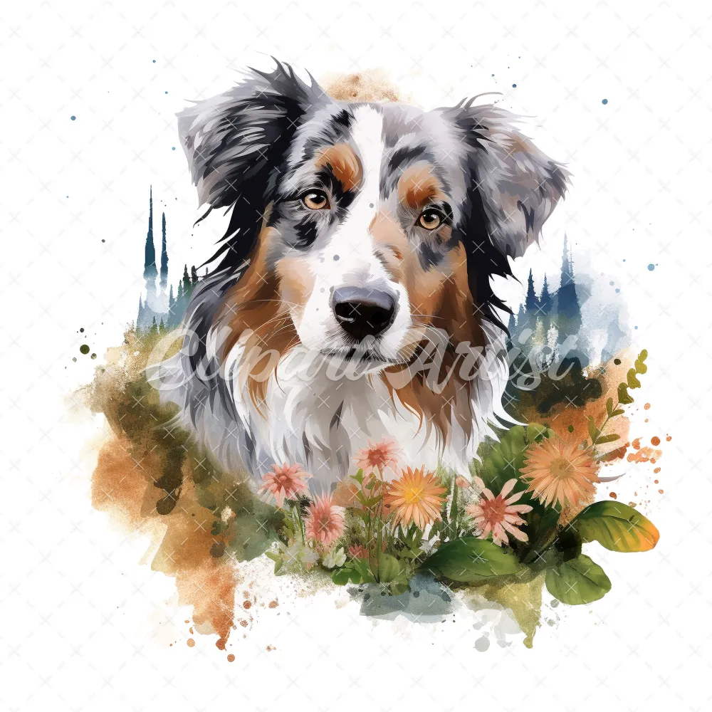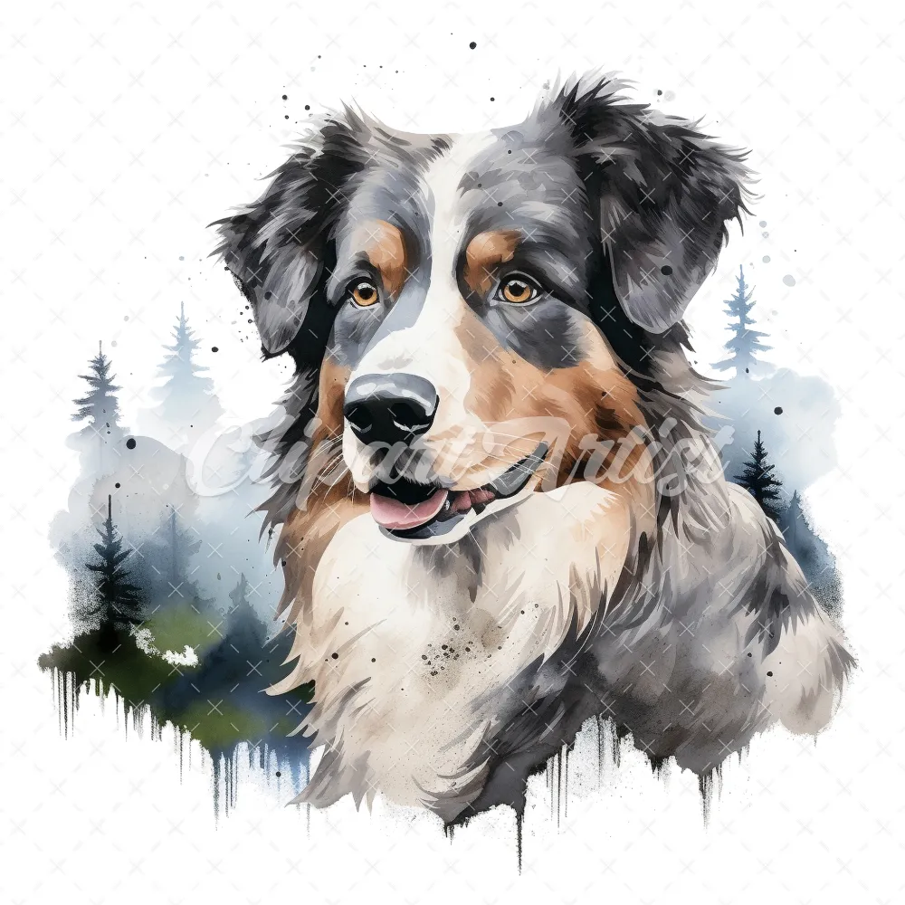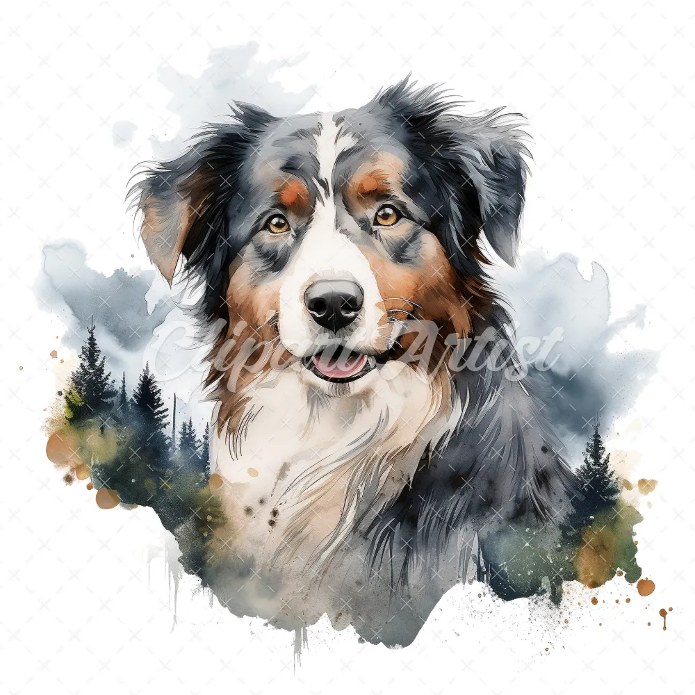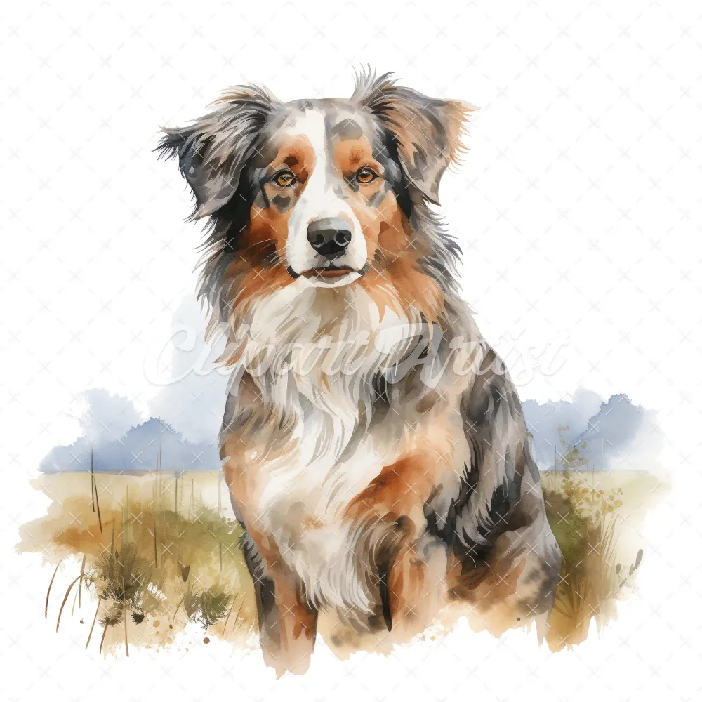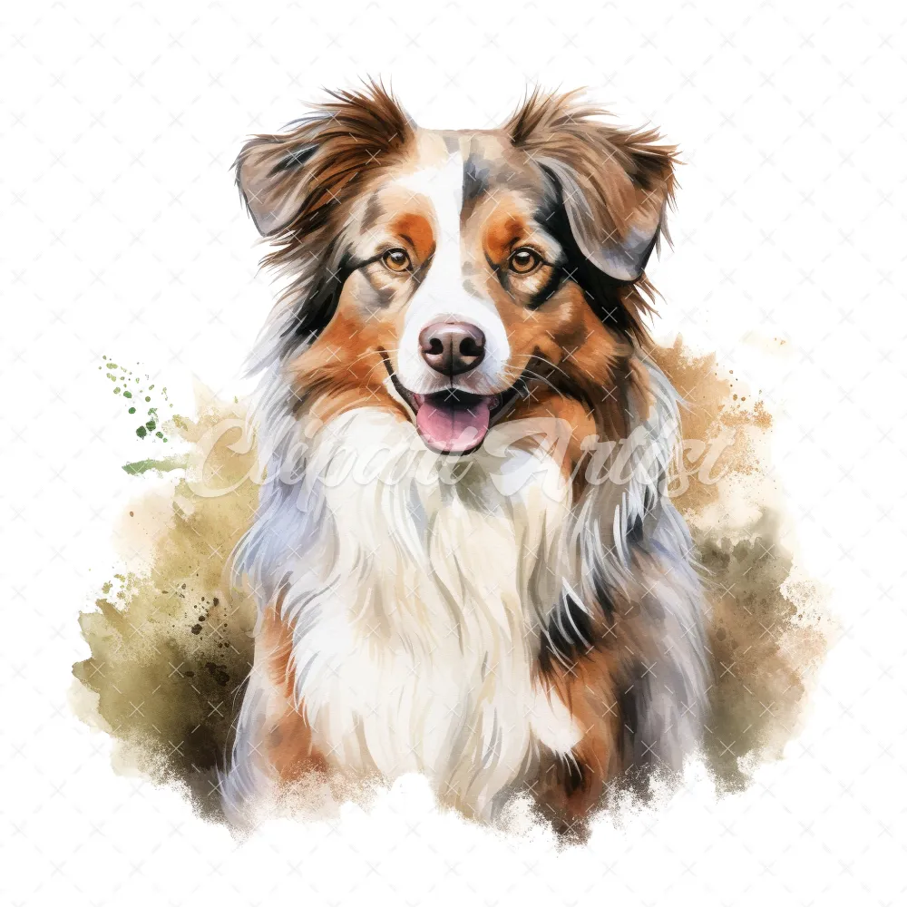 20 High-Quality Australian Shepherd Clipart – Shepherd dog digital watercolor JPG instant download for commercial use – Digital download